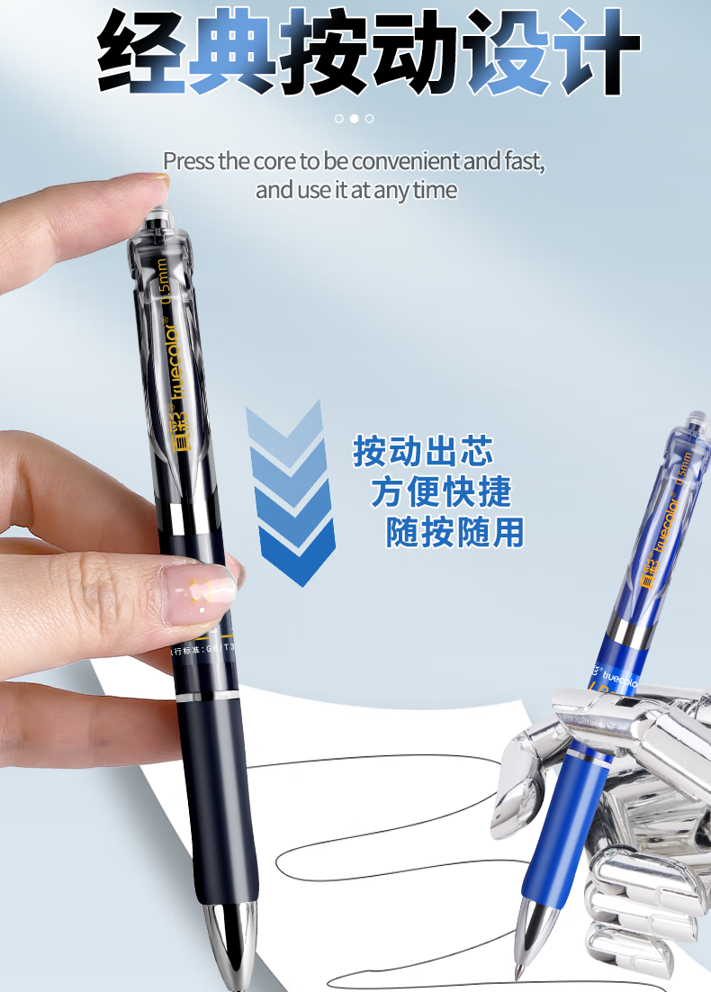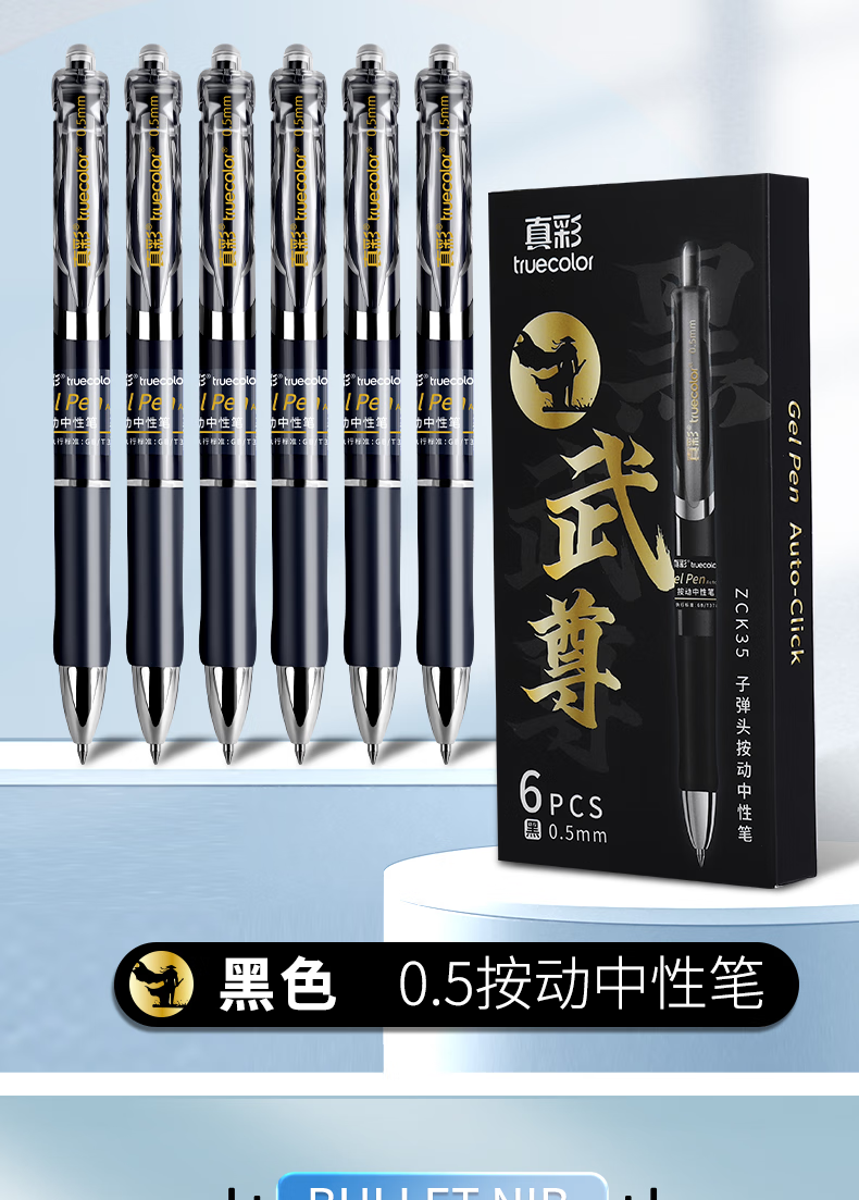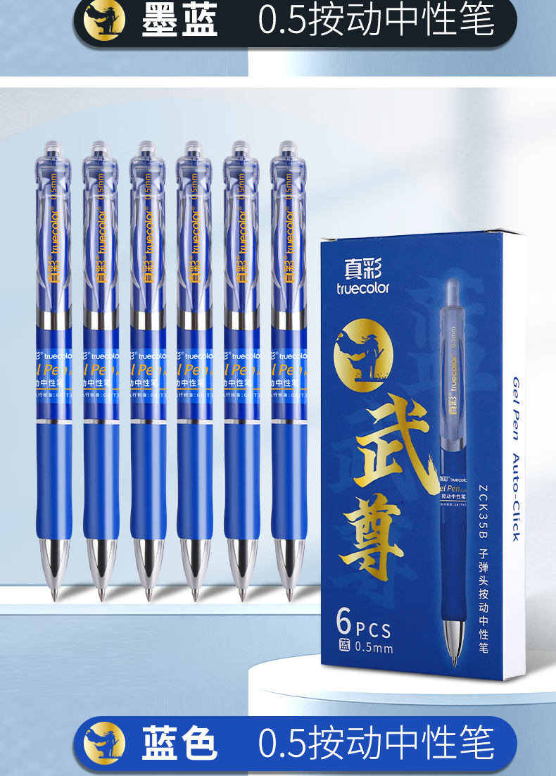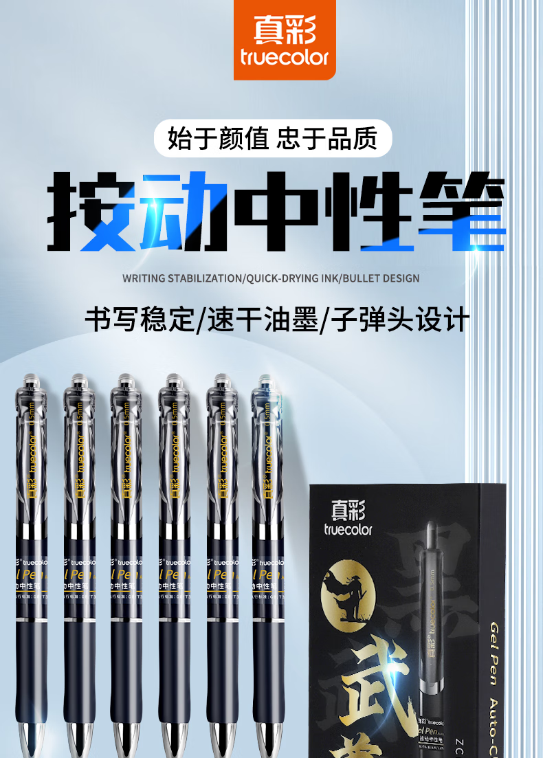 真彩(TRUECOLOR)速干按动中性笔0.5mm蓝色子弹头商务办公专用签字笔小学生刷题笔中碳素笔水笔办公文具用品ZCK35