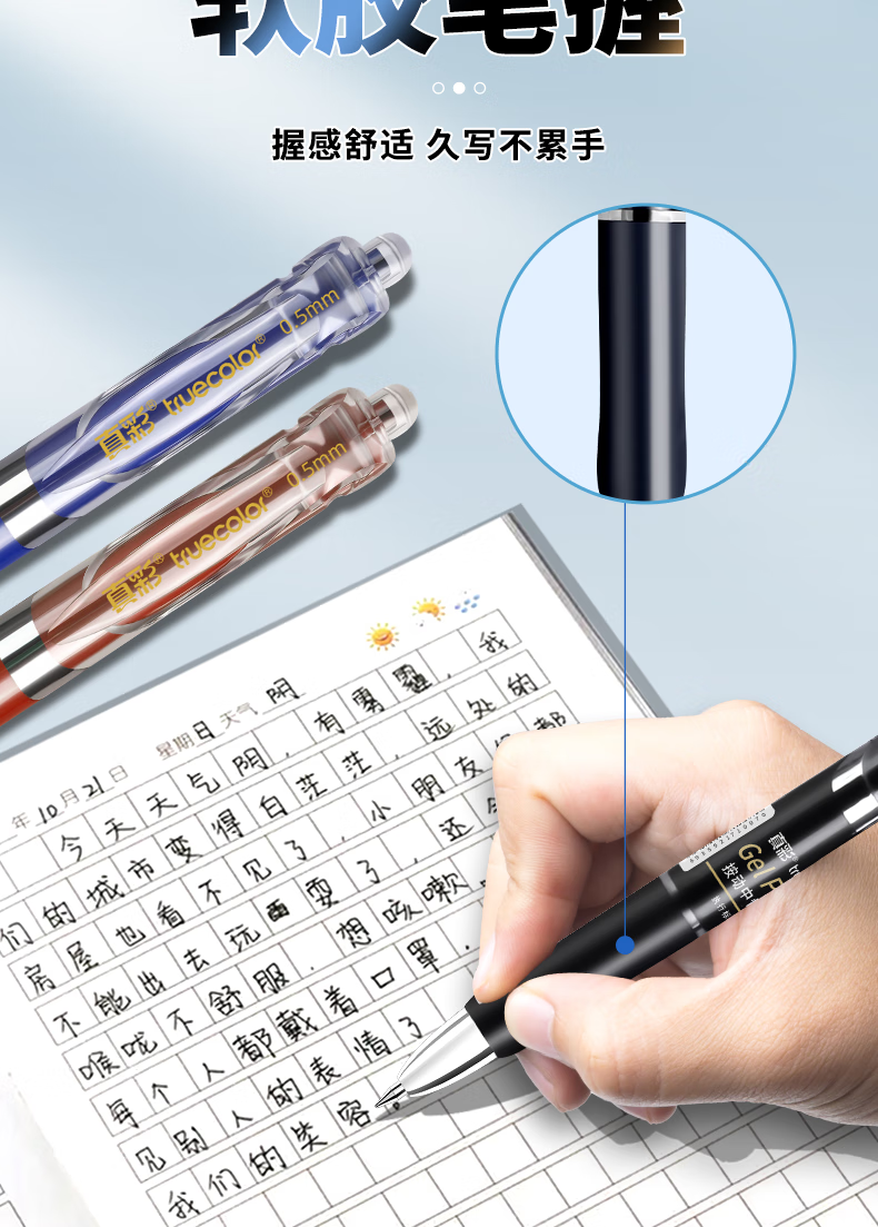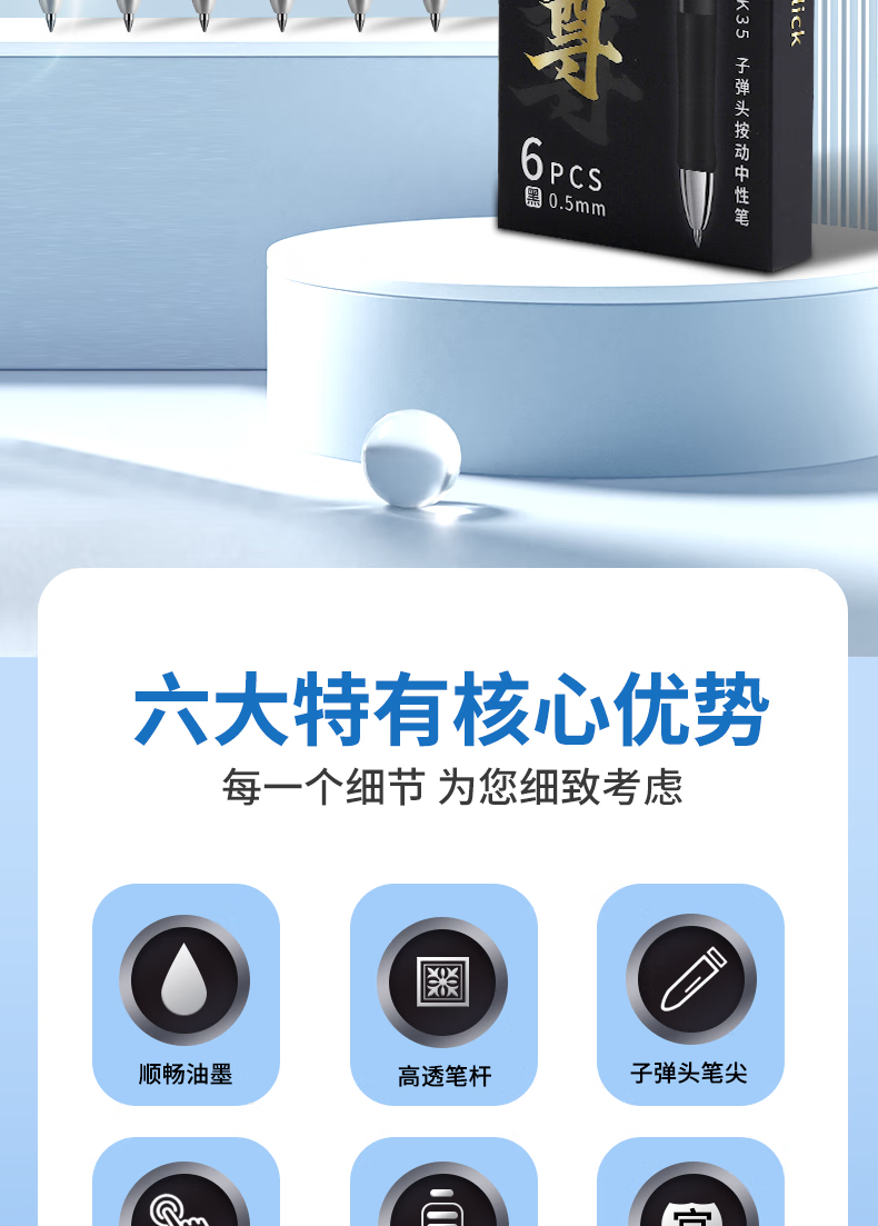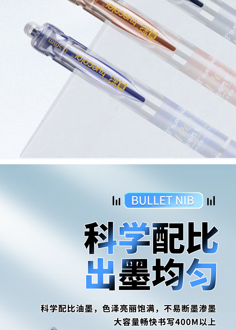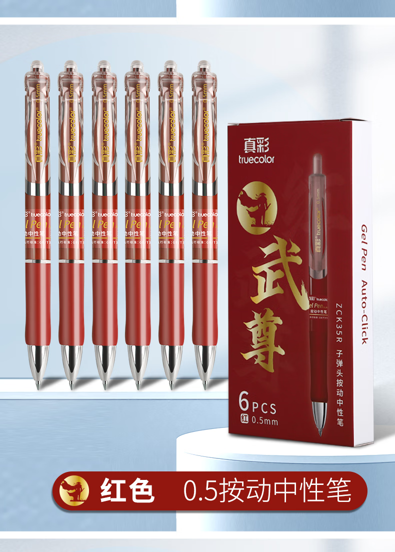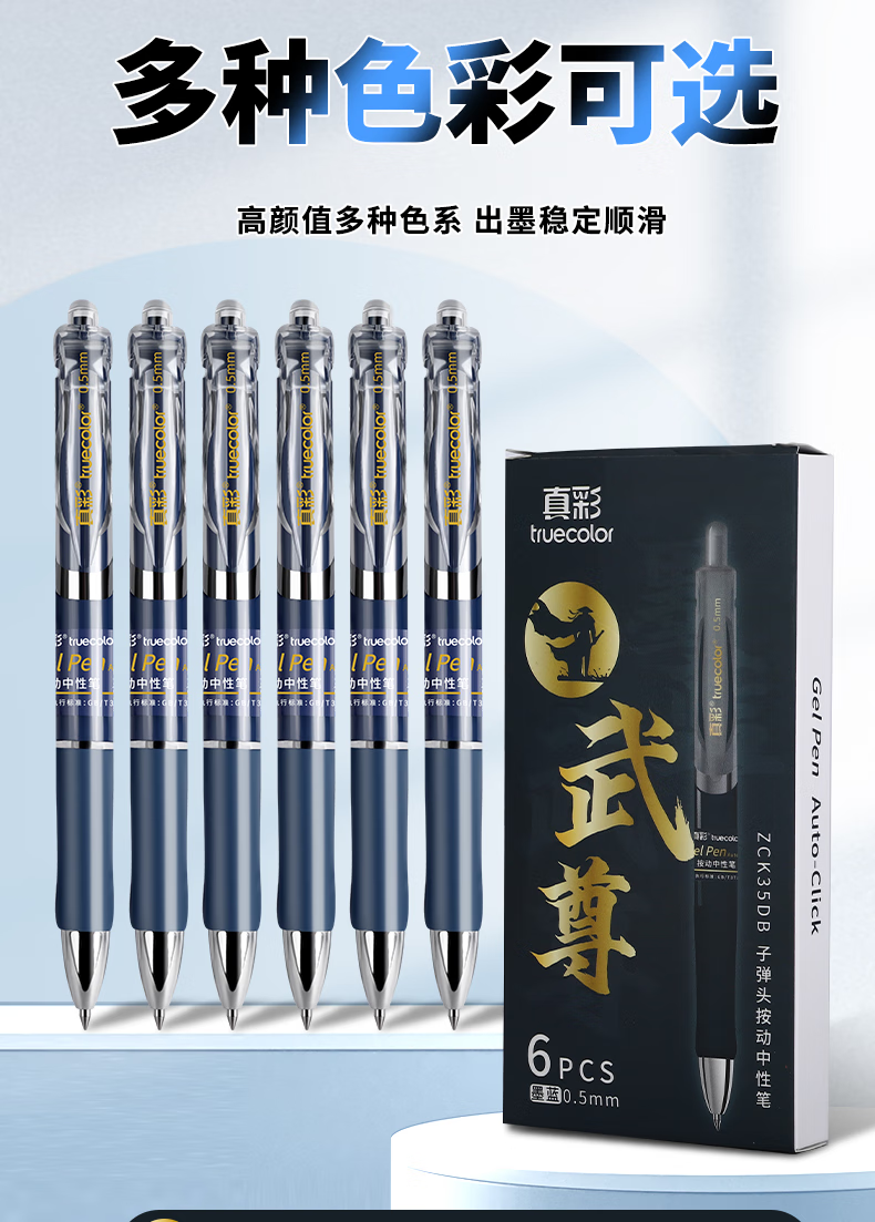 真彩(TRUECOLOR)速干按动中性笔0.5mm蓝色子弹头商务办公专用签字笔小学生刷题笔中碳素笔水笔办公文具用品ZCK35