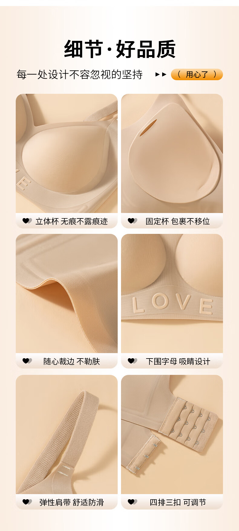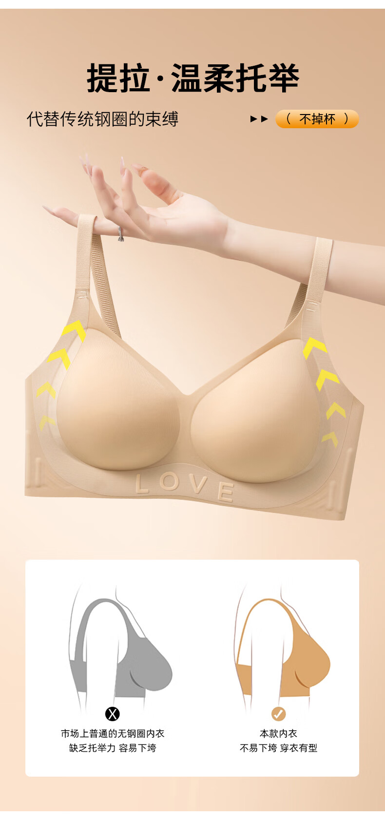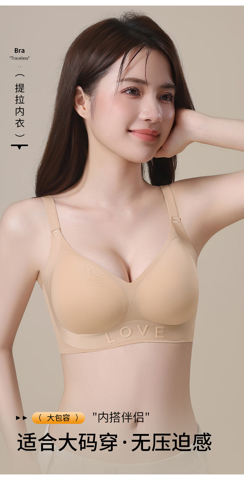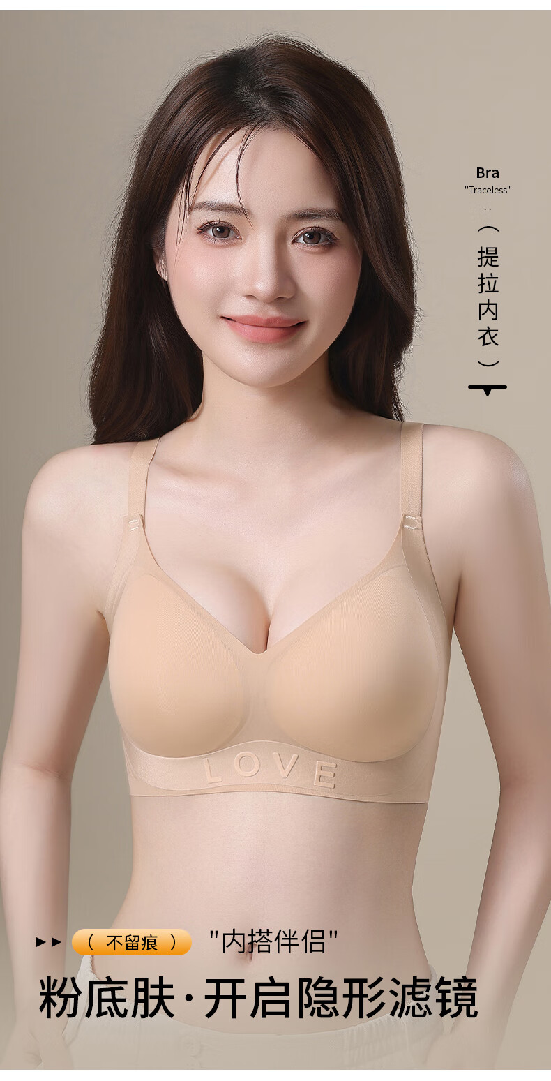都市丽人小胸显大聚拢上托文胸女士软支撑无痕内衣薄款防下垂胸 粉底肤+香槟白 M 【建议体重95-110斤】