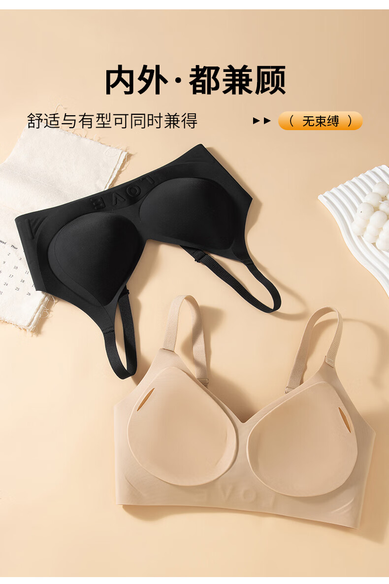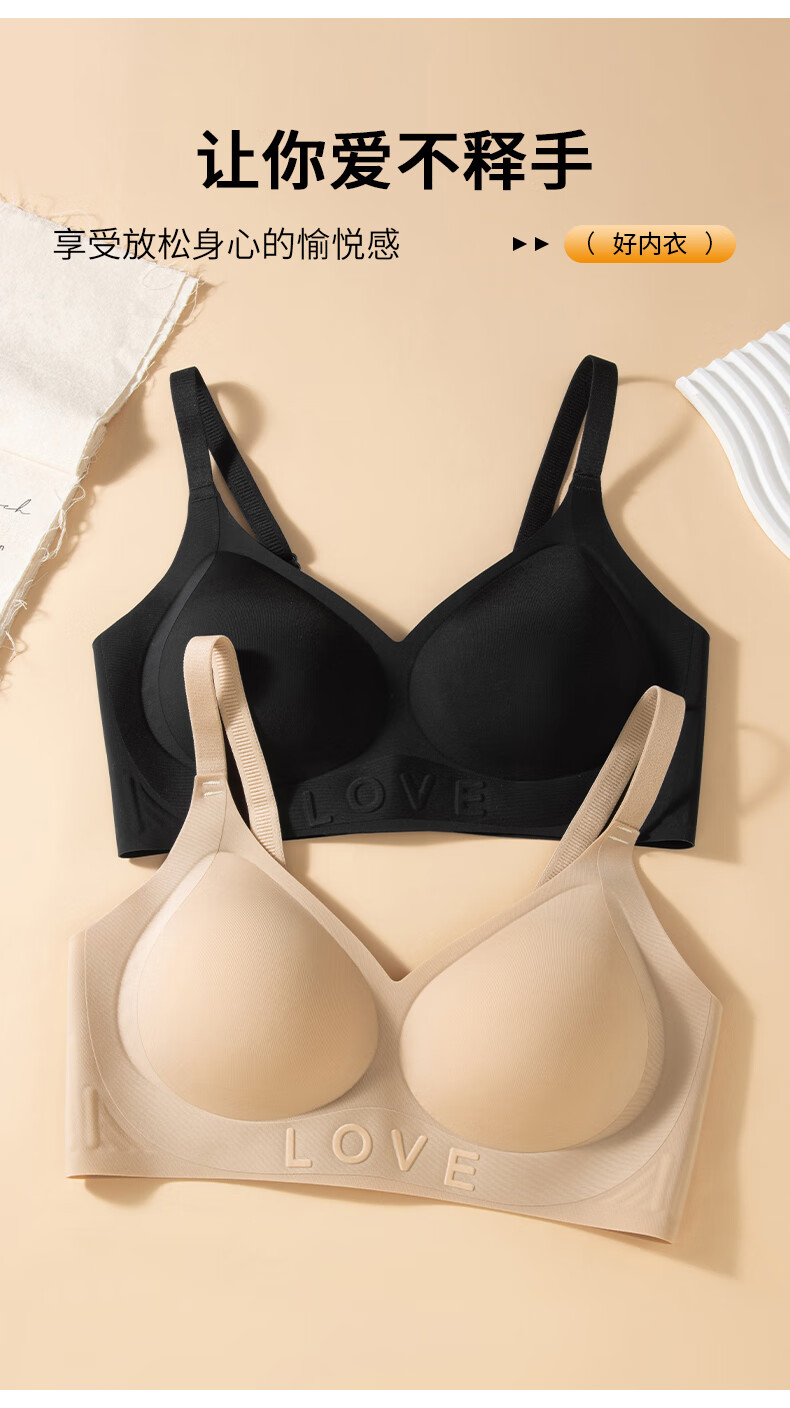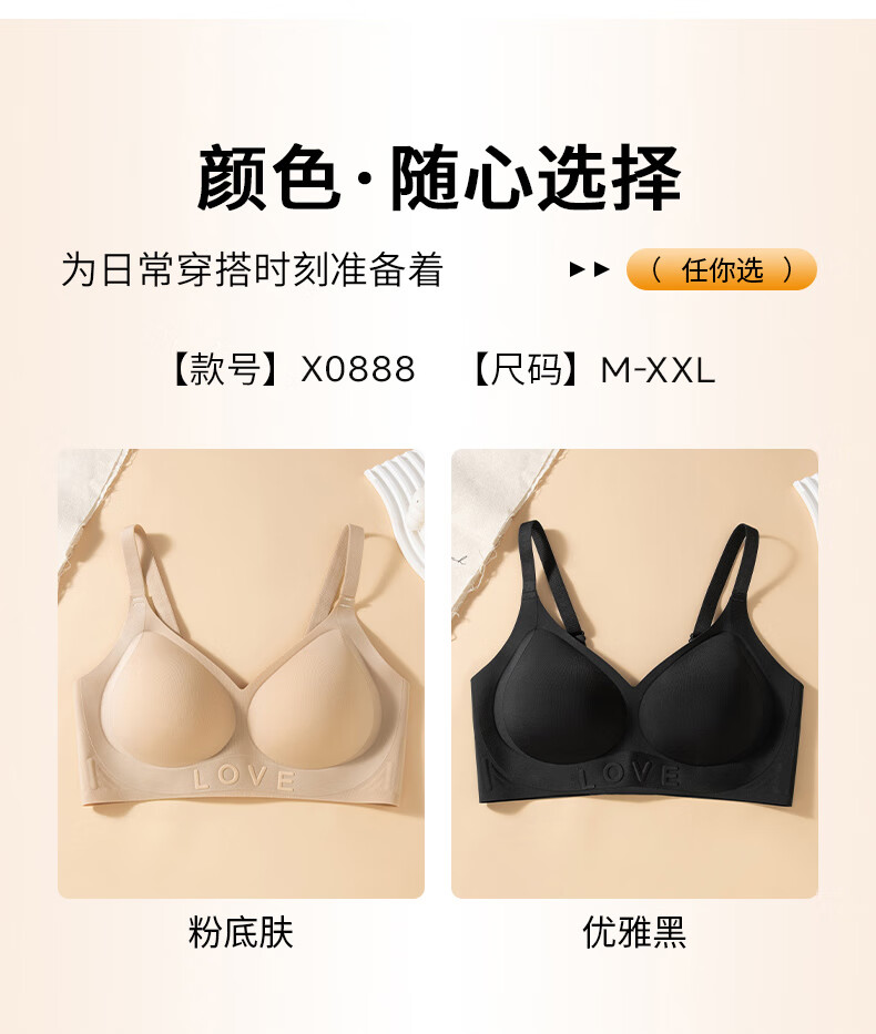 氧心(YANGXIN)2件装无痕内衣女无钢圈小胸聚拢收副乳防下垂调整型上托文胸罩 粉底肤+优雅黑 M (80-100斤)