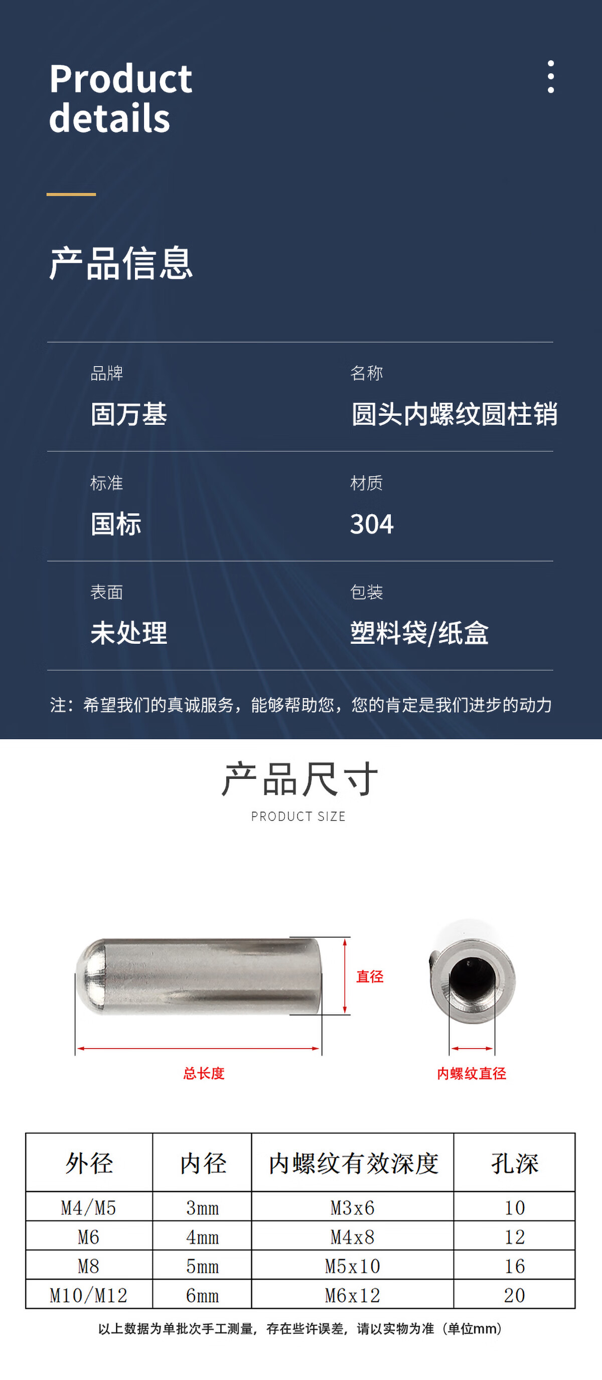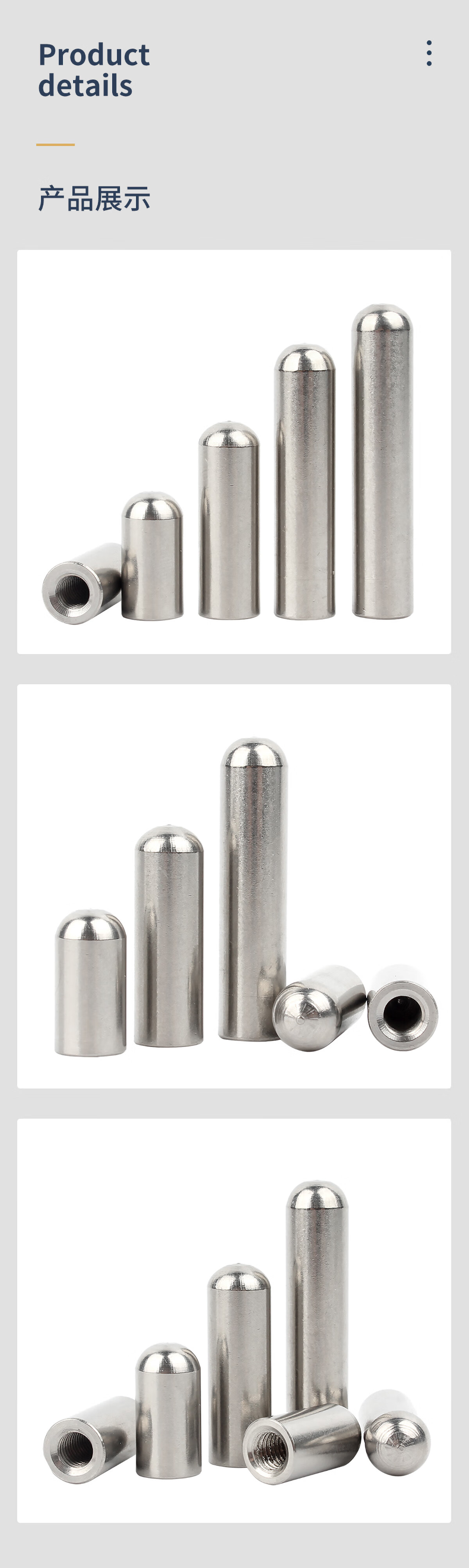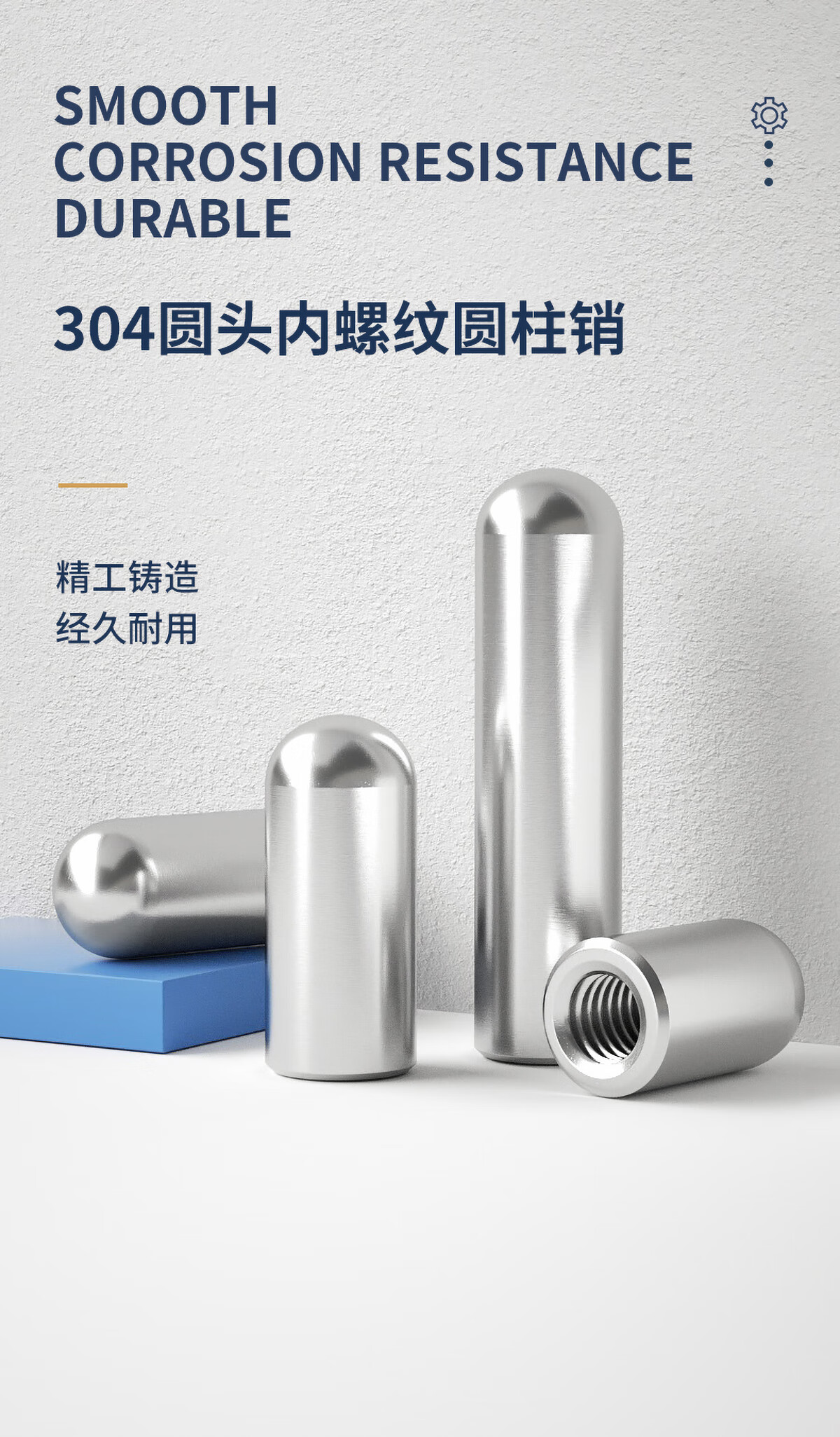 GUWANJI304不锈钢内螺纹圆头圆柱销空心销带孔销子定位销钉M2M3-M8 Φ3*5*M2[20只]
