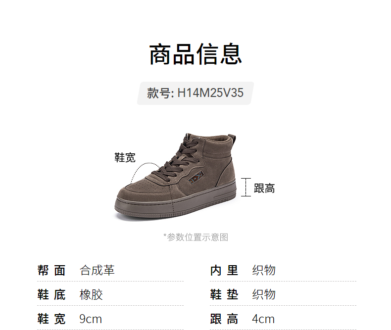 热风(Hotwind)男鞋高帮板鞋2025年冬季新款男士潮流厚底增高休闲鞋百搭高帮鞋子 08杏色 44