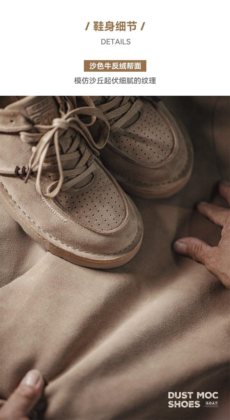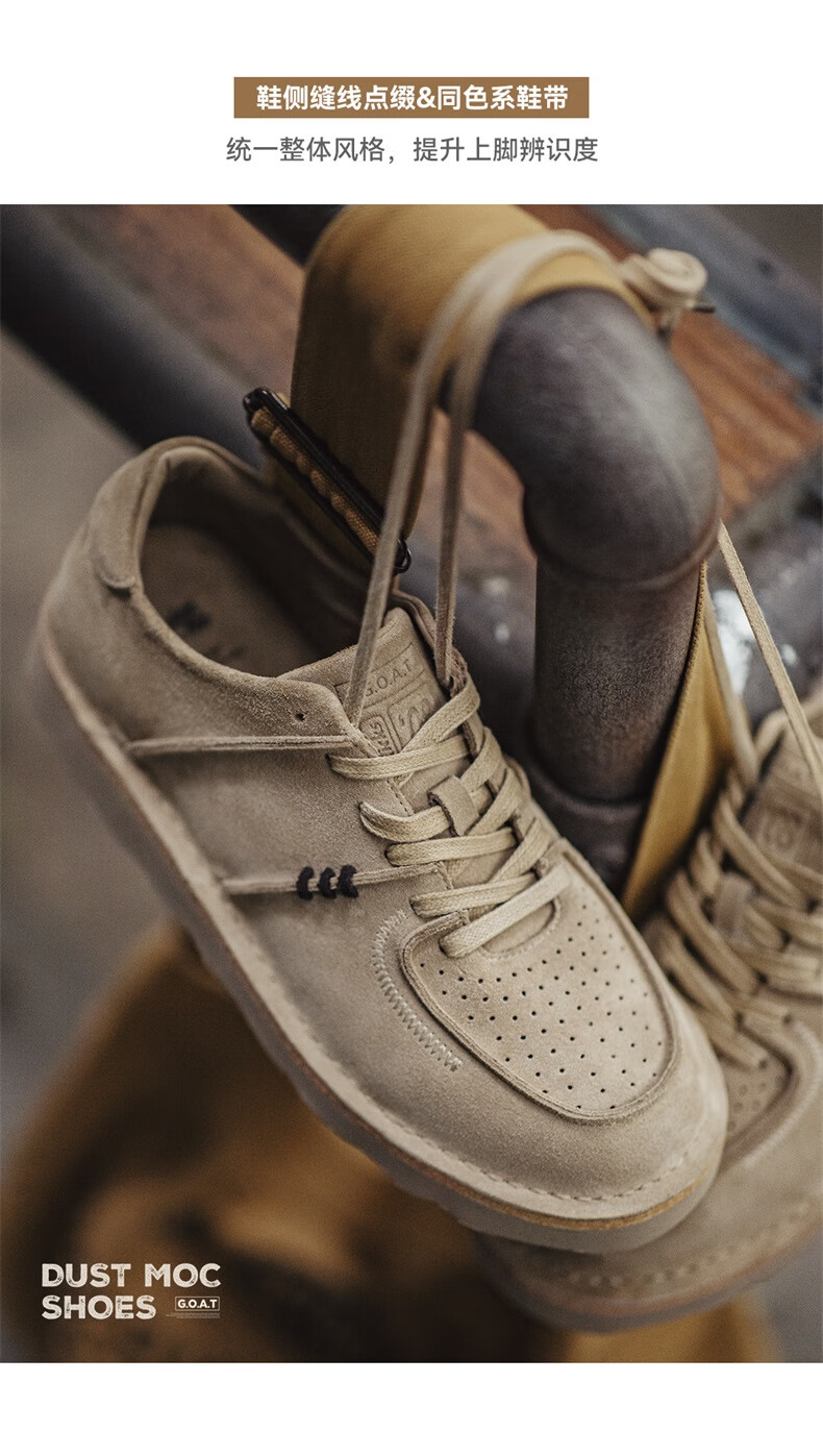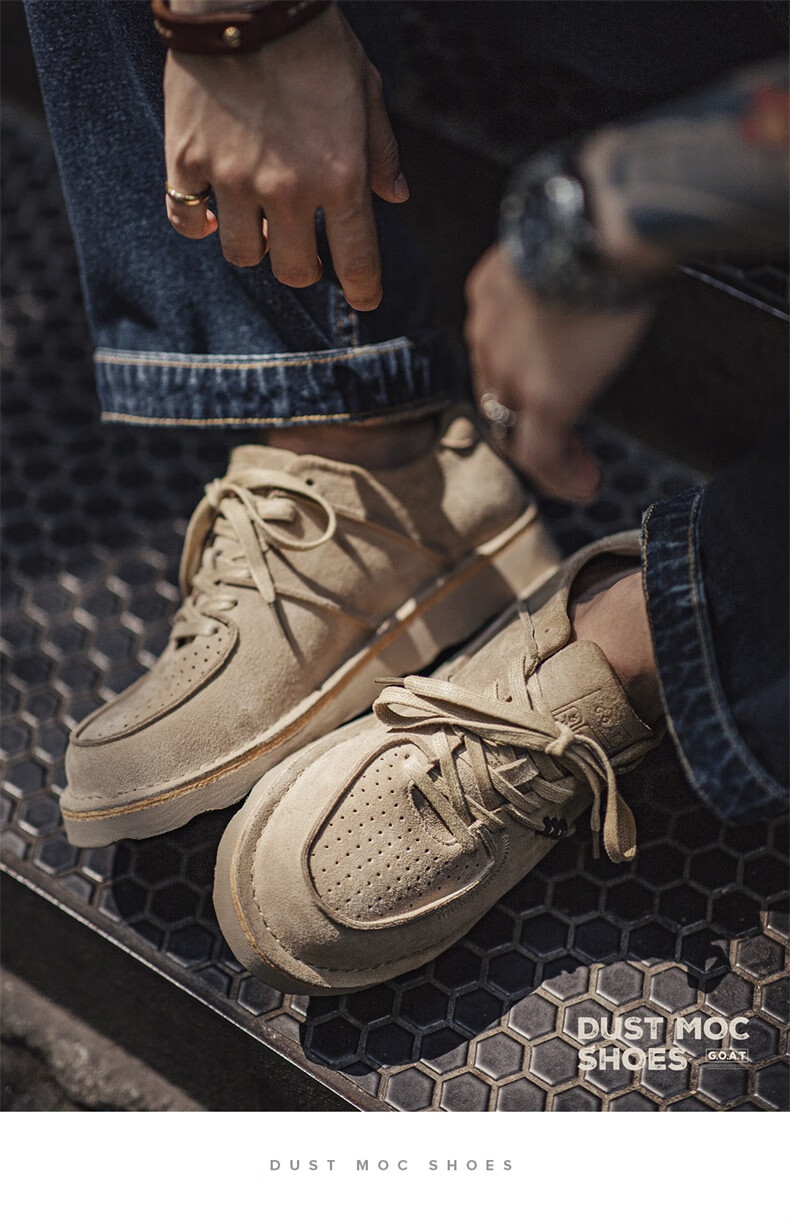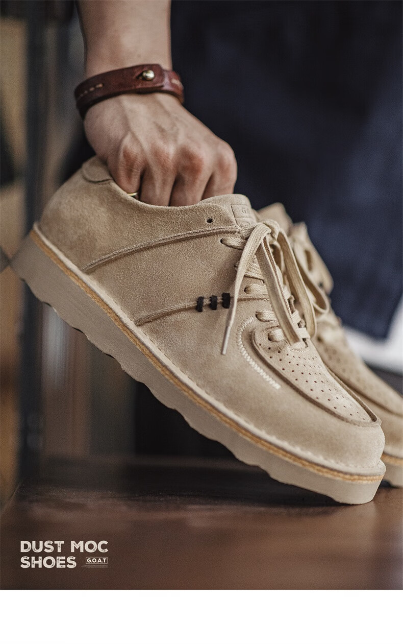 马登男鞋复古工装鞋男士秋季新款休闲百搭厚底鞋真皮透气反绒牛皮板鞋 沙色 42
