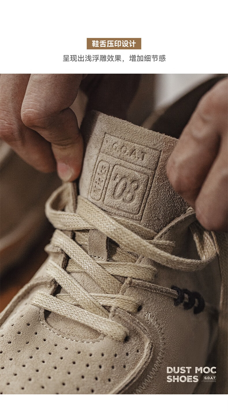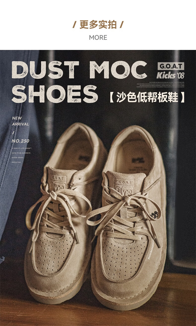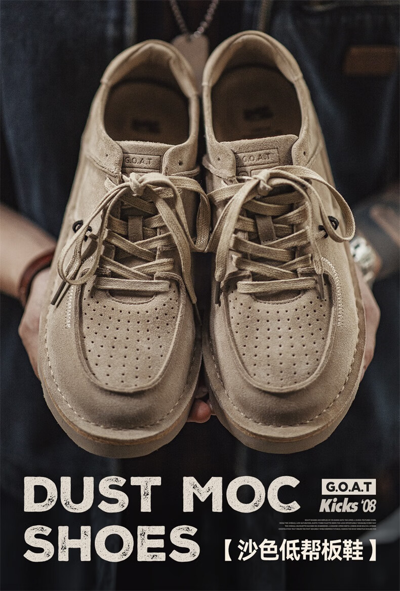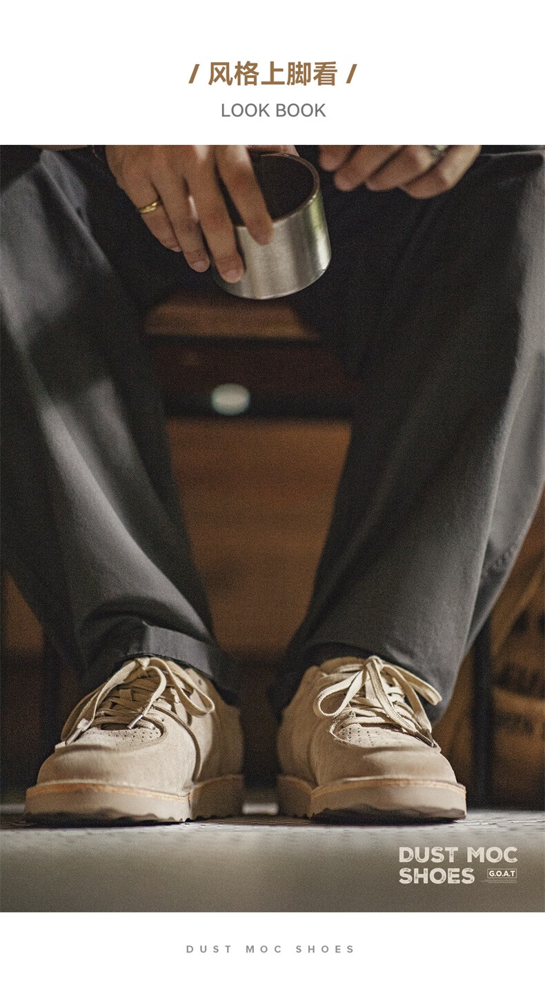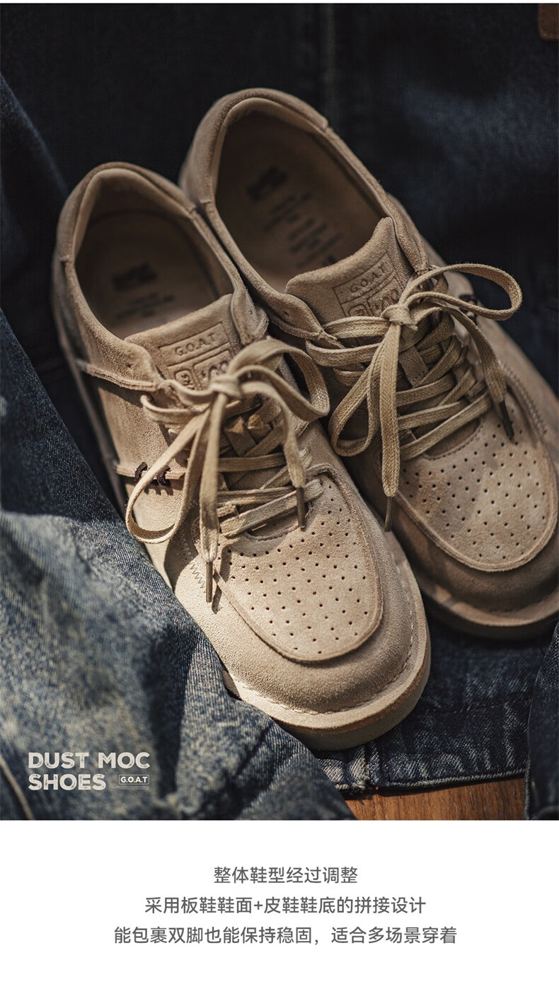 马登男鞋复古工装鞋男士秋季新款休闲百搭厚底鞋真皮透气反绒牛皮板鞋 沙色 42