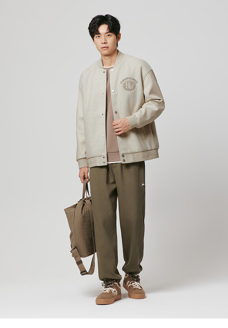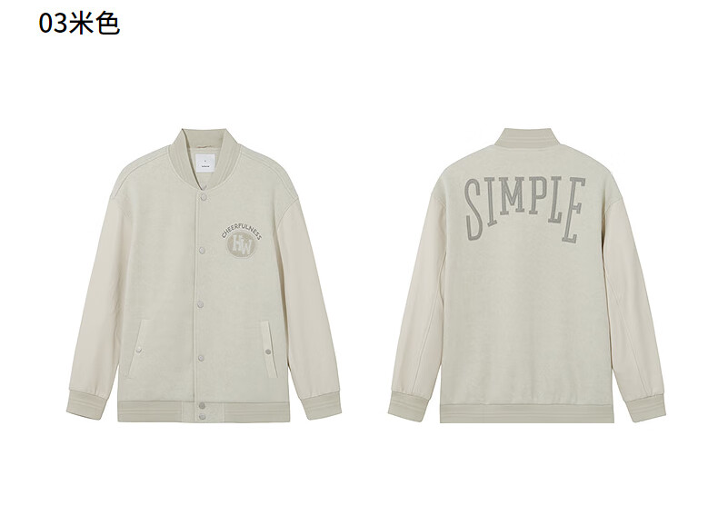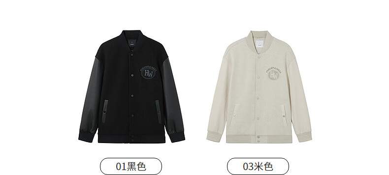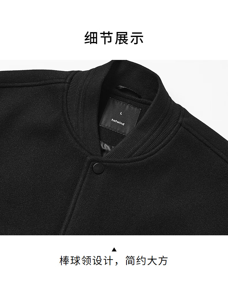 热风(Hotwind)【商场同款】男士夹克上衣2025年冬季新款经典棒球情侣款宽松外套 01黑色 L