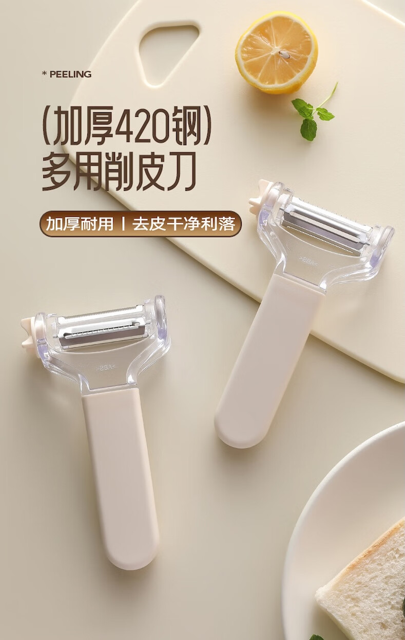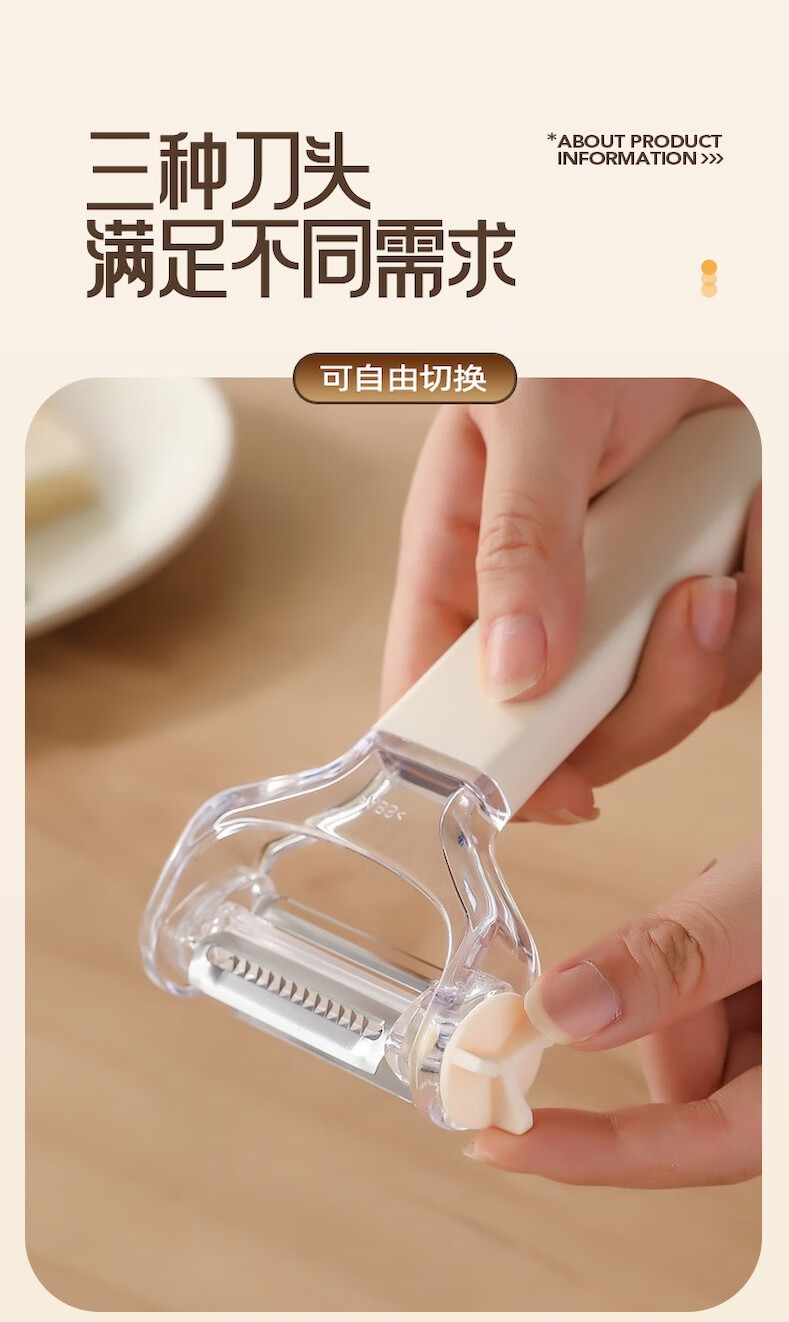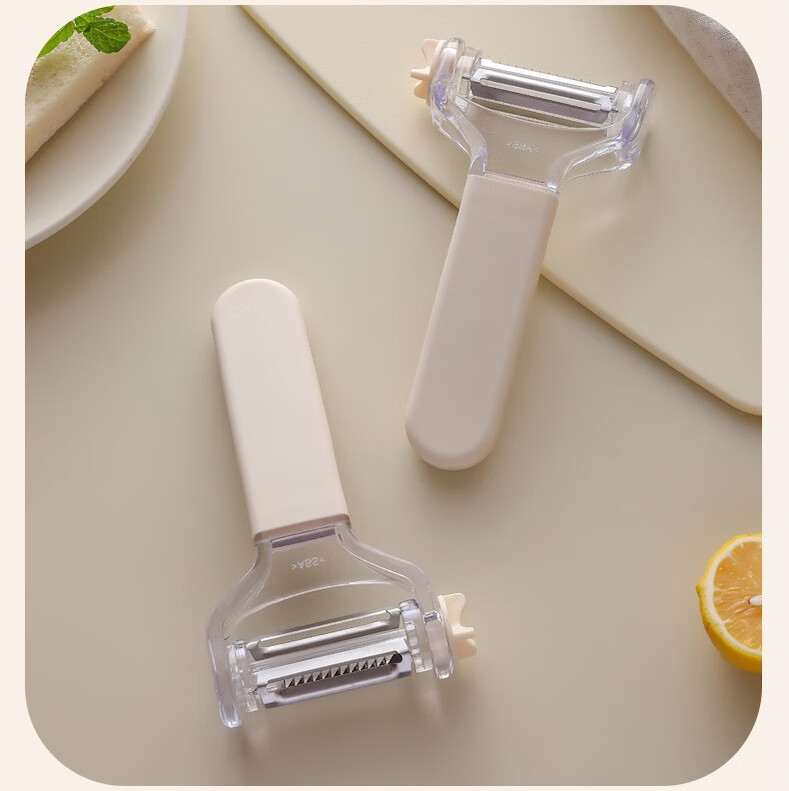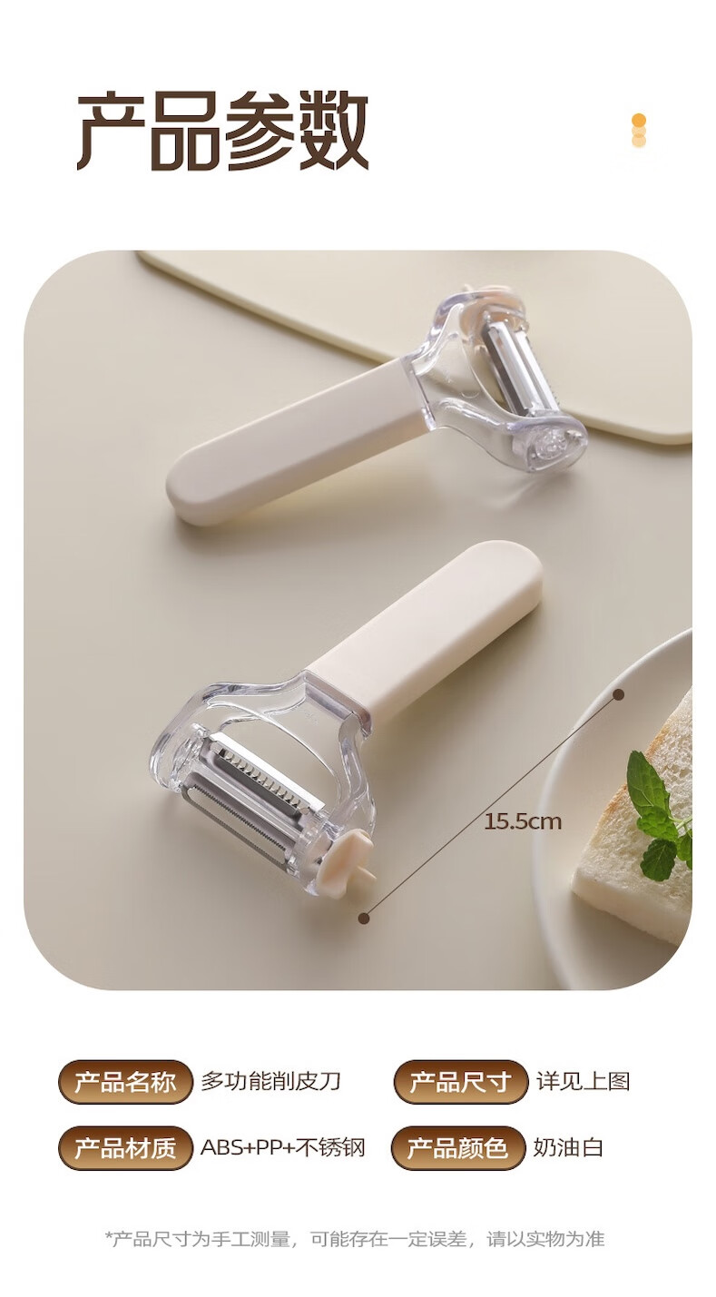 厨房多功能刮皮刀削皮刀不锈钢家用果皮削皮刨丝专用厨房用削皮器 奶白色三合一削皮刀