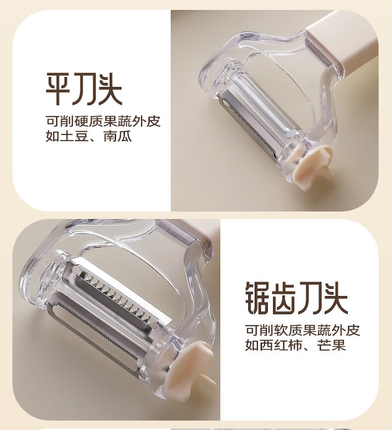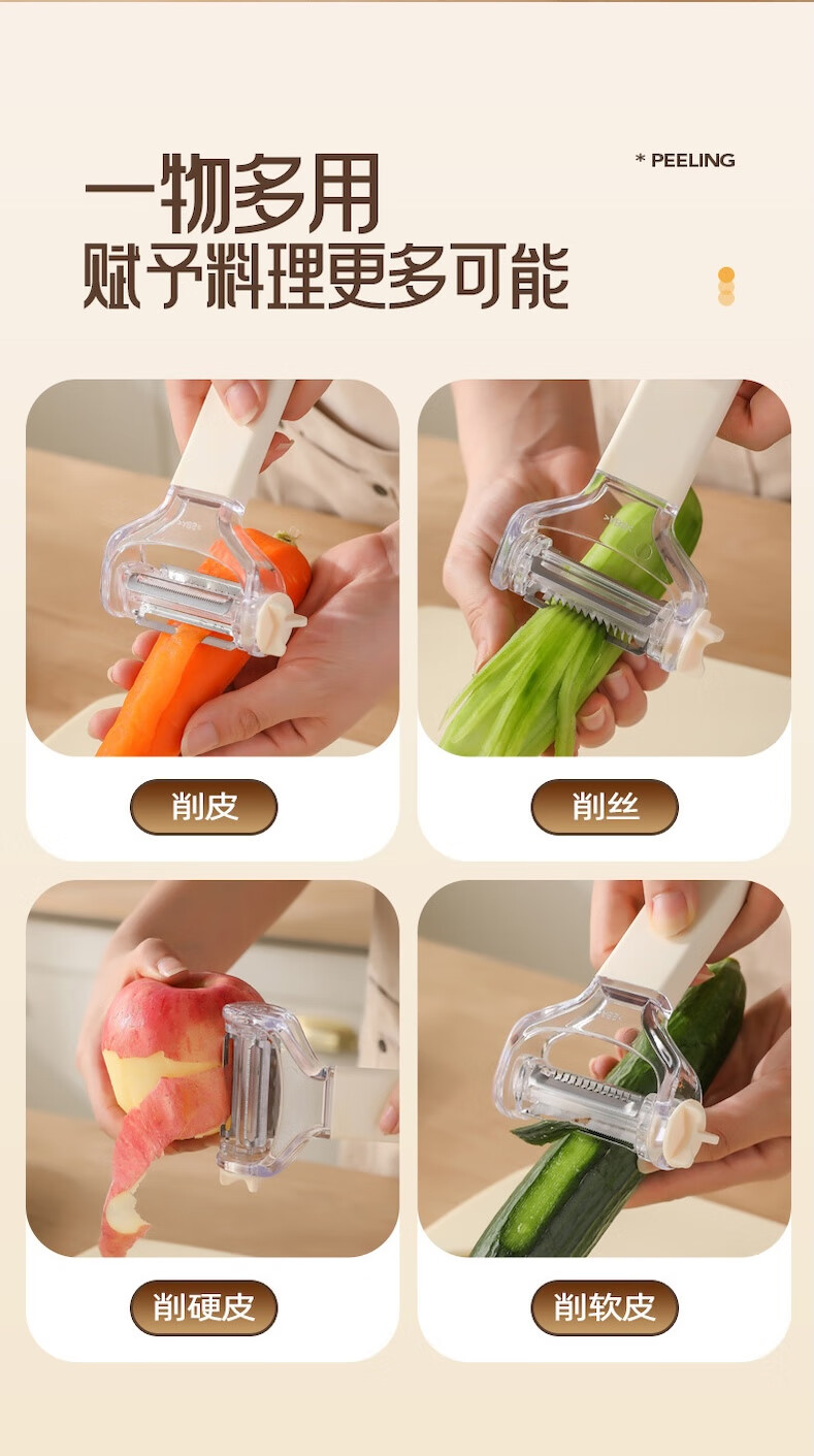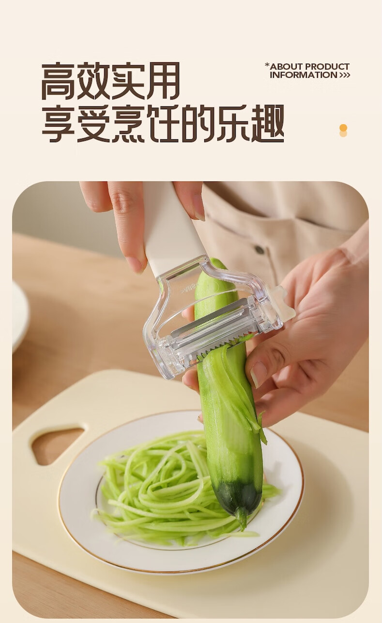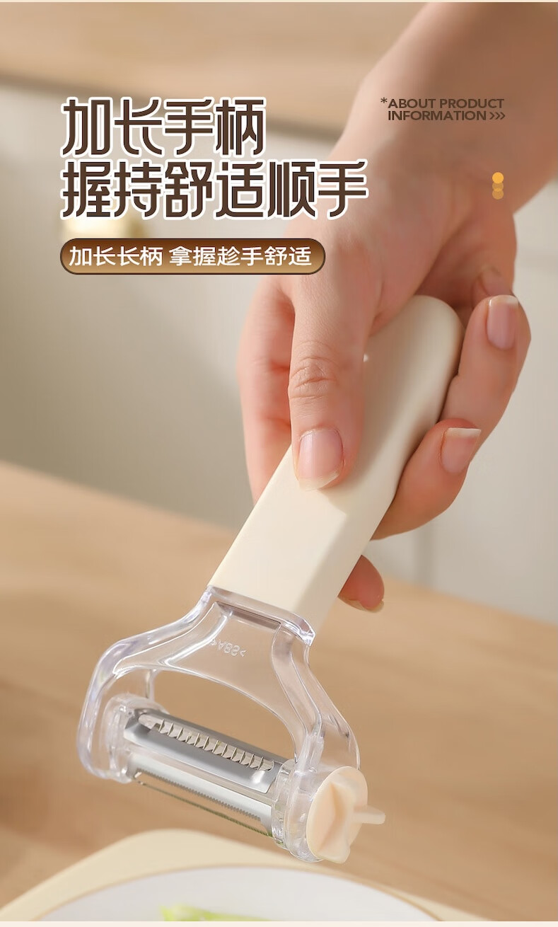 厨房多功能刮皮刀削皮刀不锈钢家用果皮削皮刨丝专用厨房用削皮器 奶白色三合一削皮刀