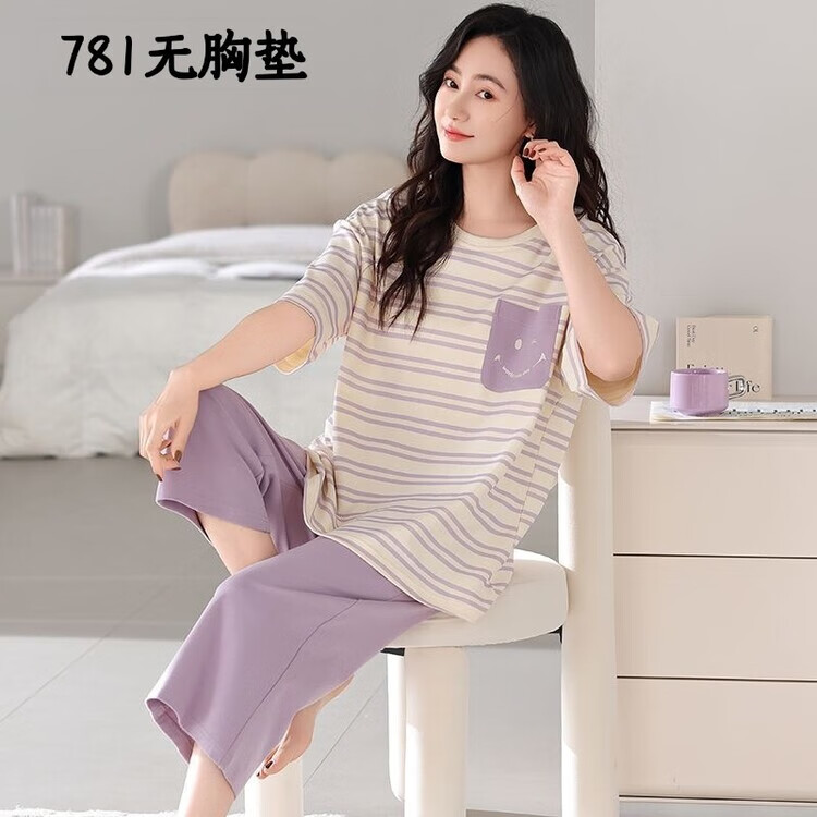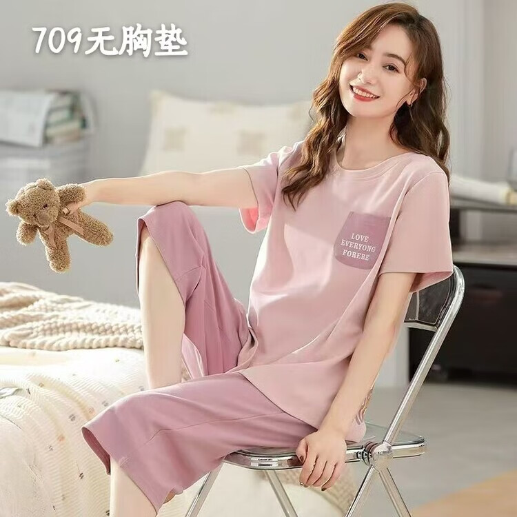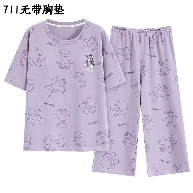 睡衣女款夏天2025年新款夏季棉短袖春秋夏款女士家居服两件套装 富贵781 无带胸垫款 XL XXL 131-145斤