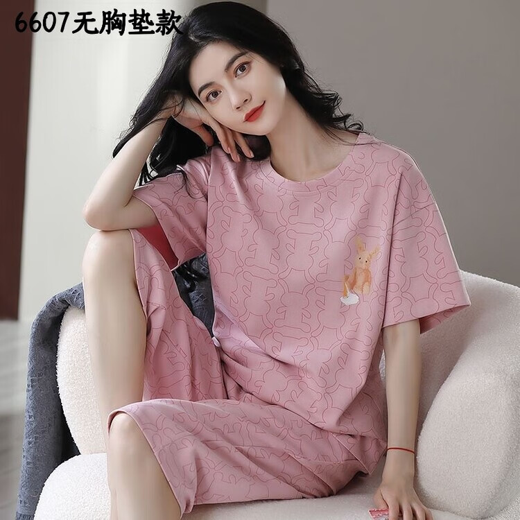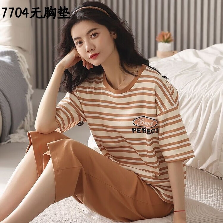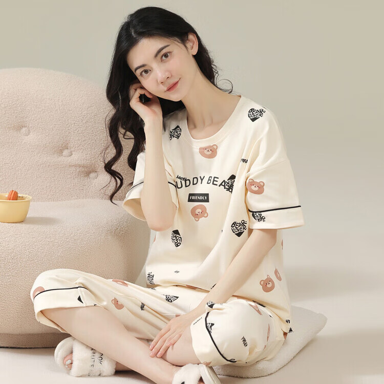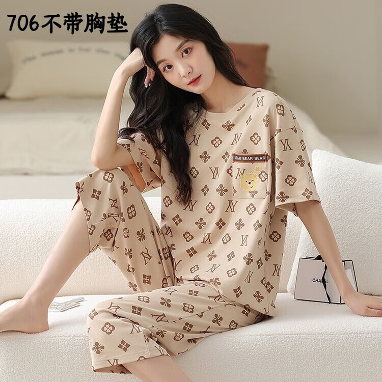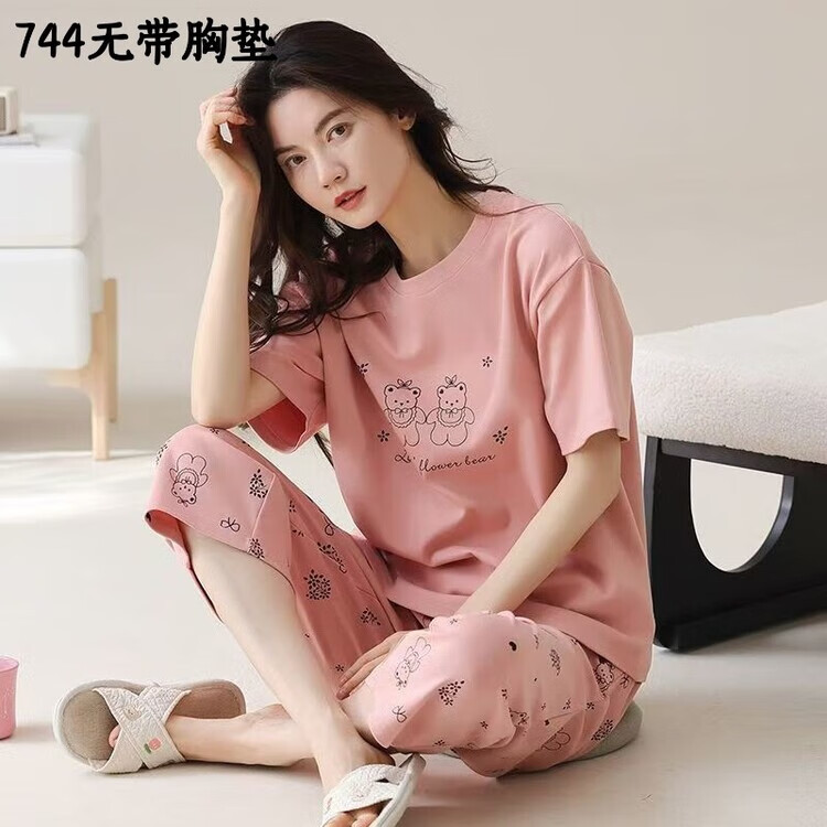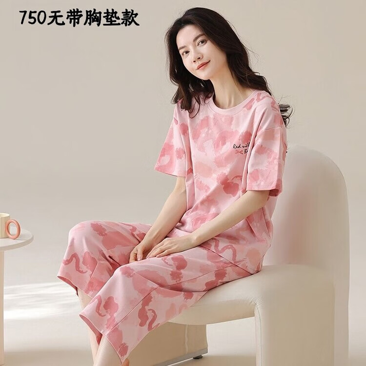 睡衣女款夏天2025年新款夏季棉短袖春秋夏款女士家居服两件套装 富贵750 无带胸垫款 XL 116-130斤
