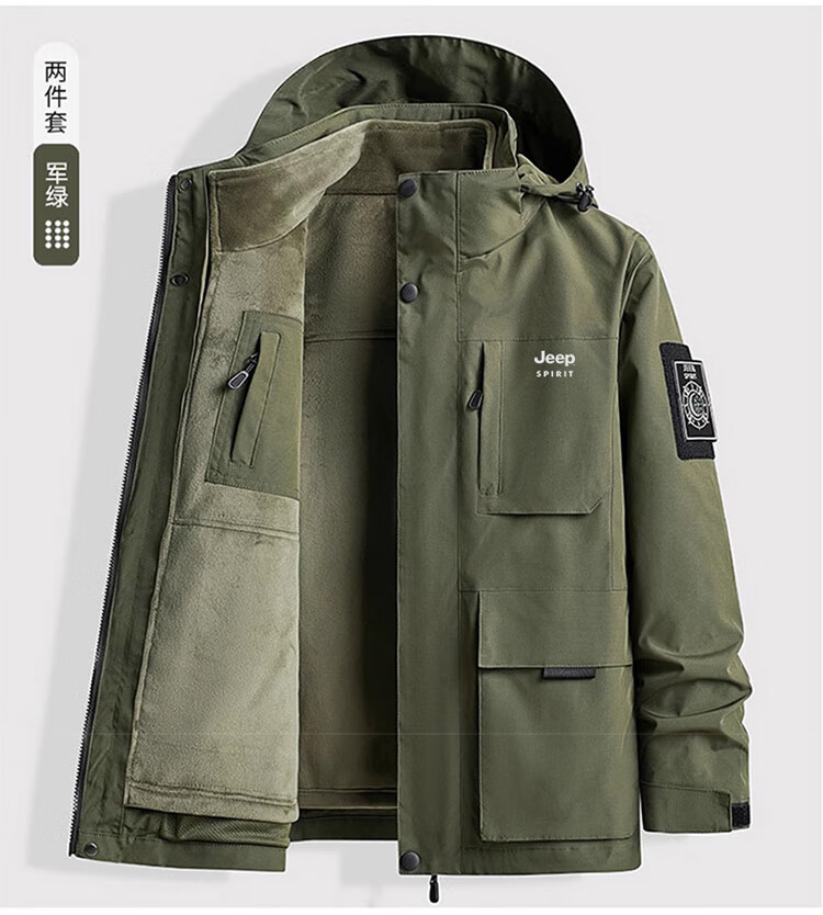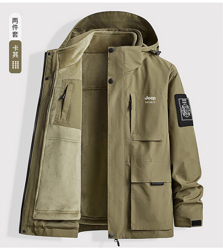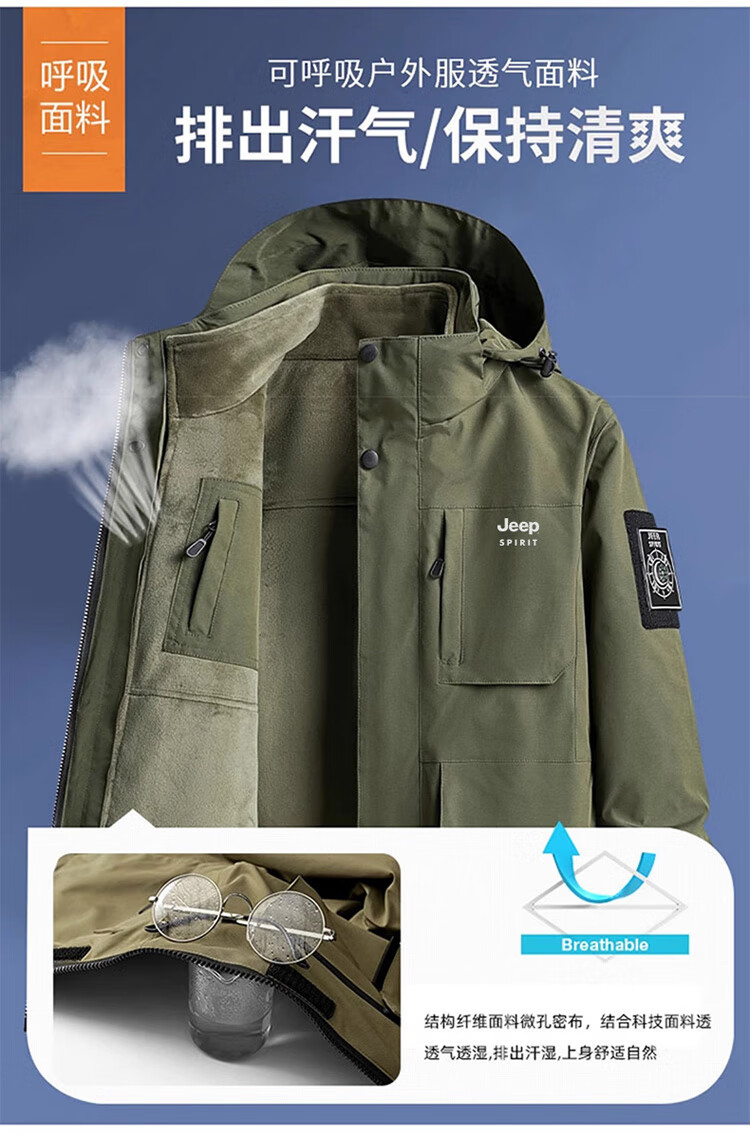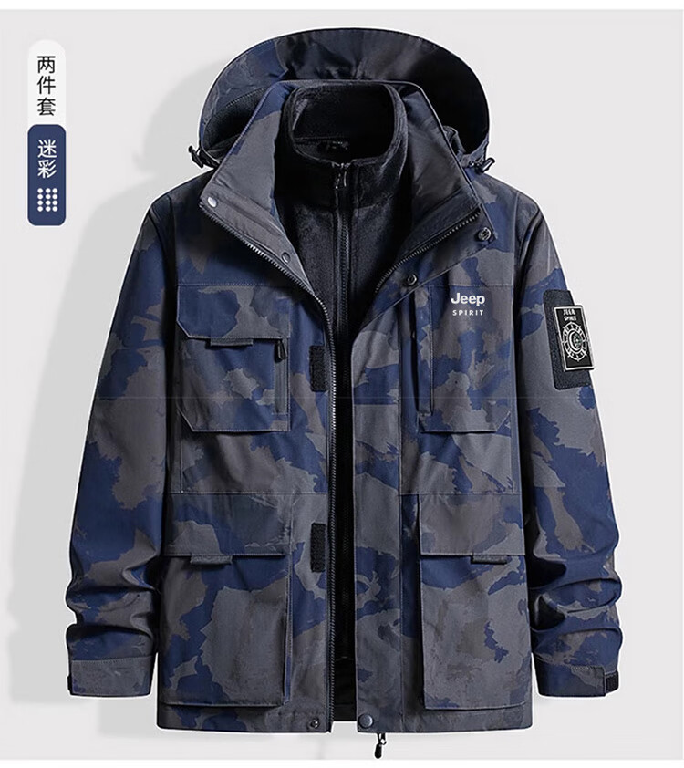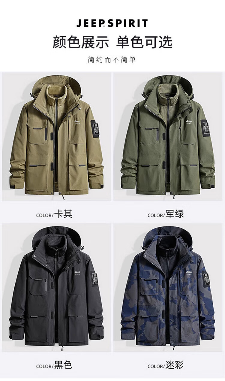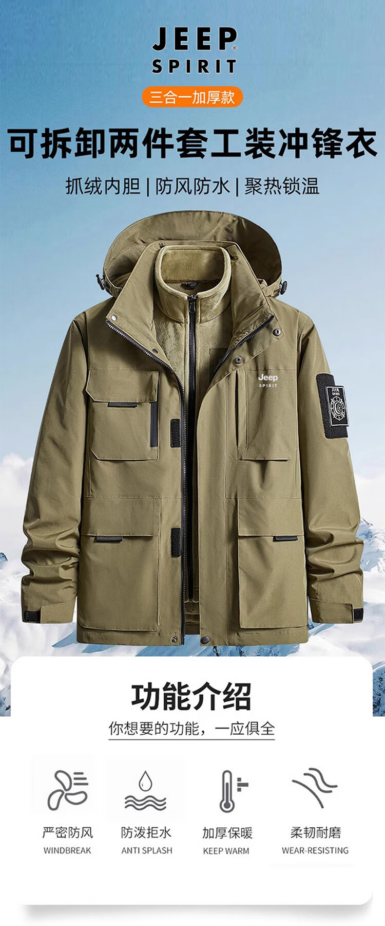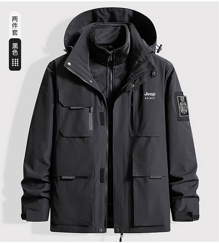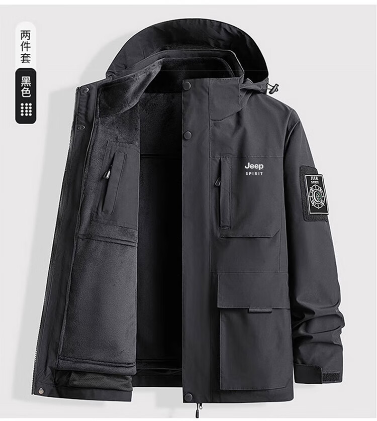 JEEP SPIRIT吉普冲锋夹克男三合一衣服外套男秋冬季男士休闲宽松工装连帽男装