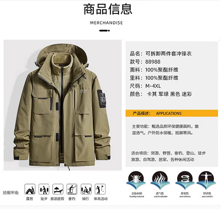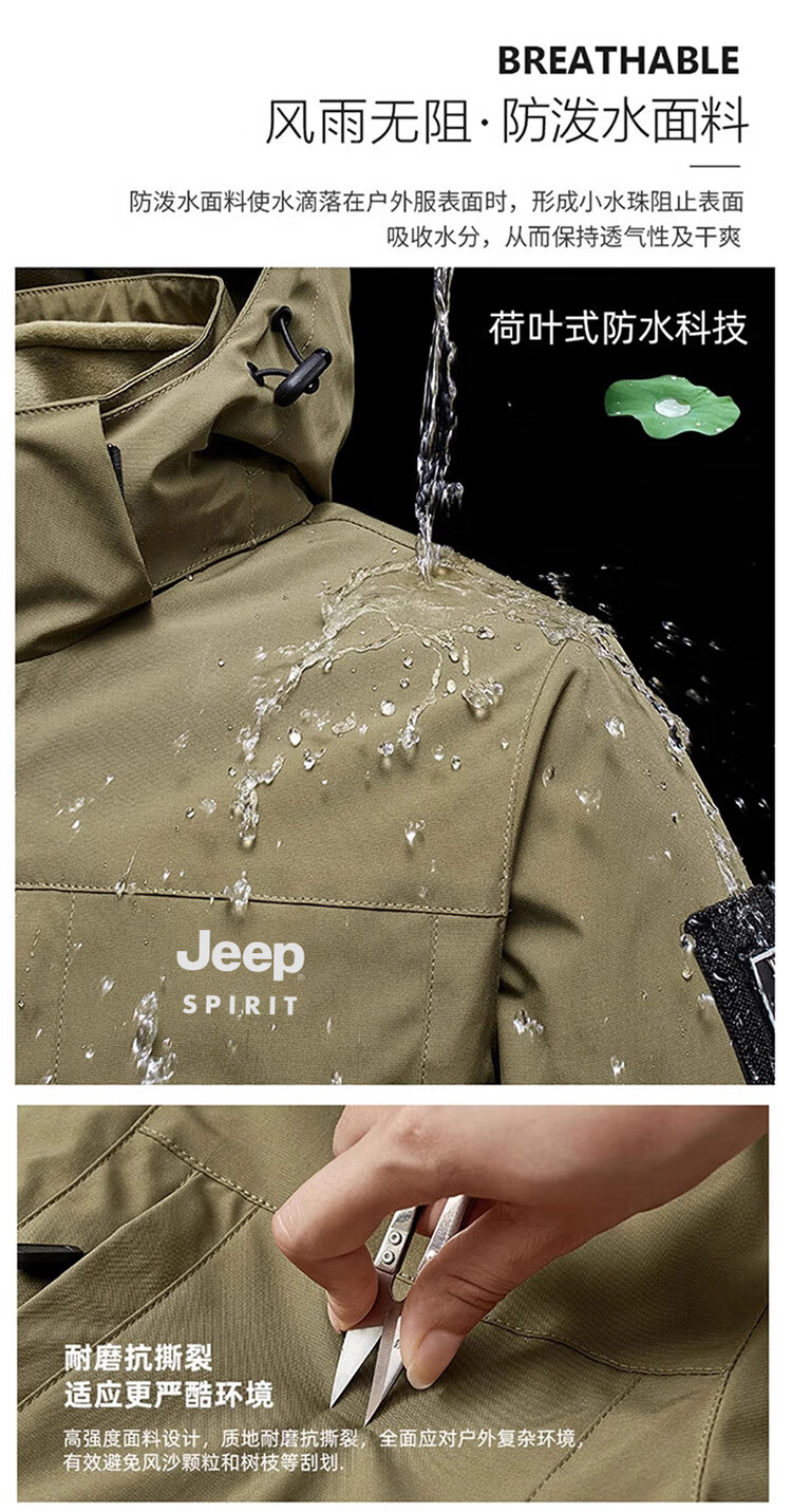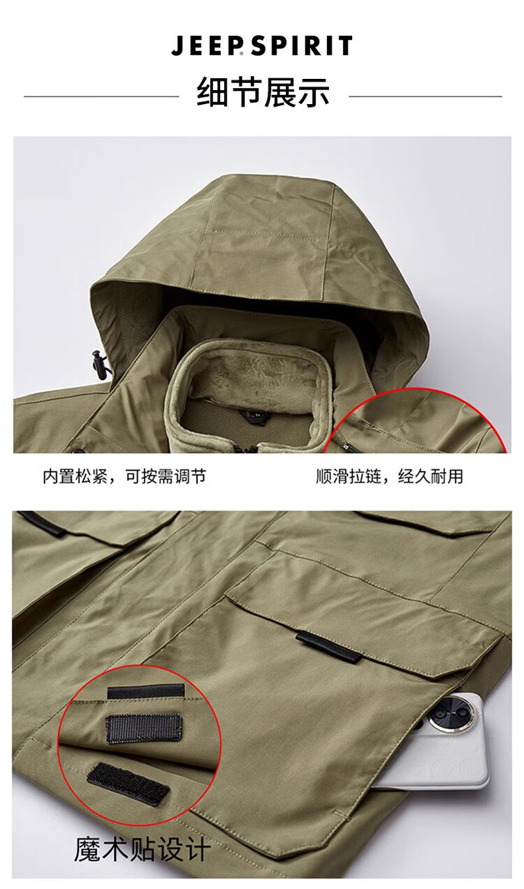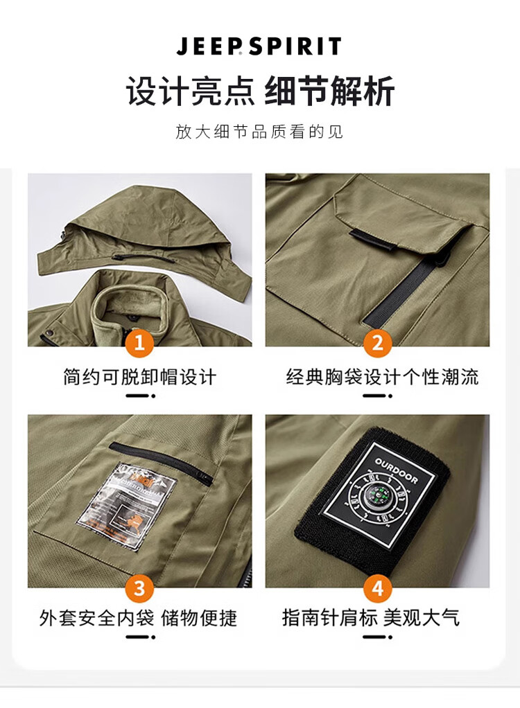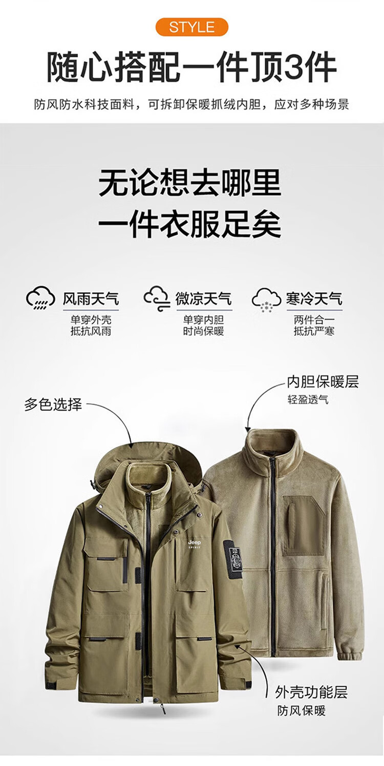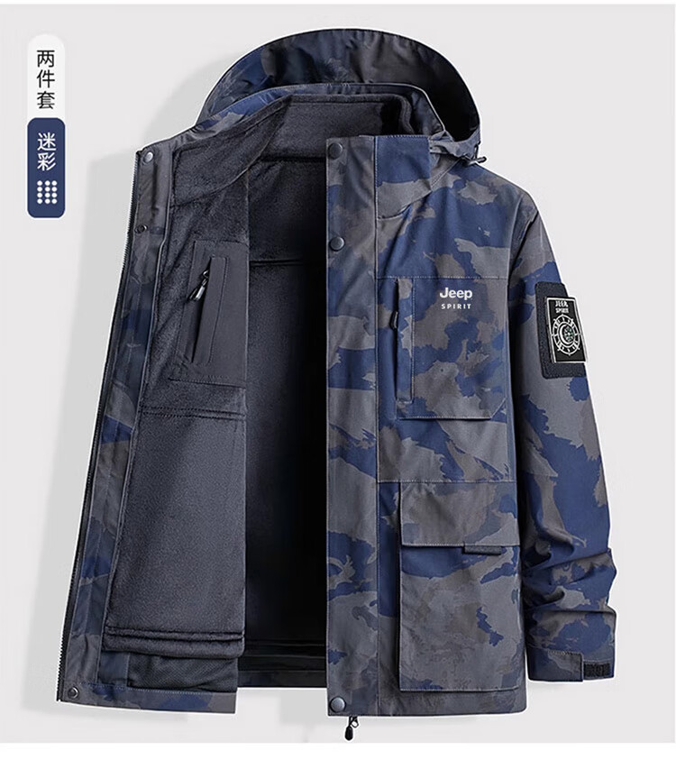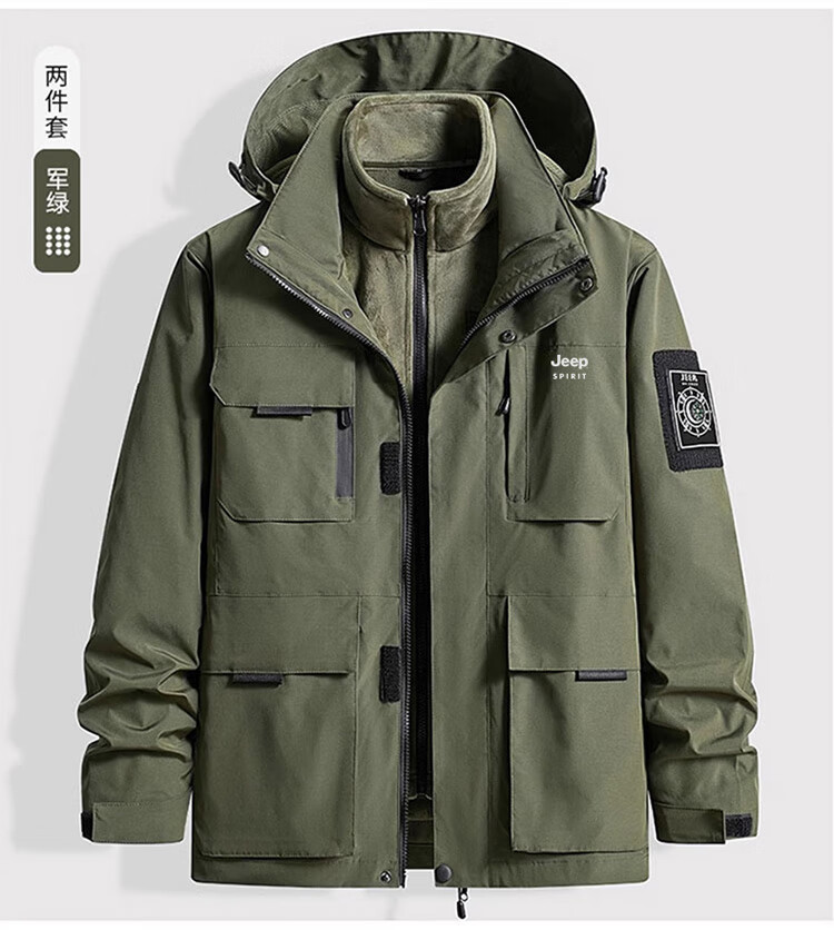 JEEP SPIRIT吉普冲锋夹克男三合一衣服外套男秋冬季男士休闲宽松工装连帽男装