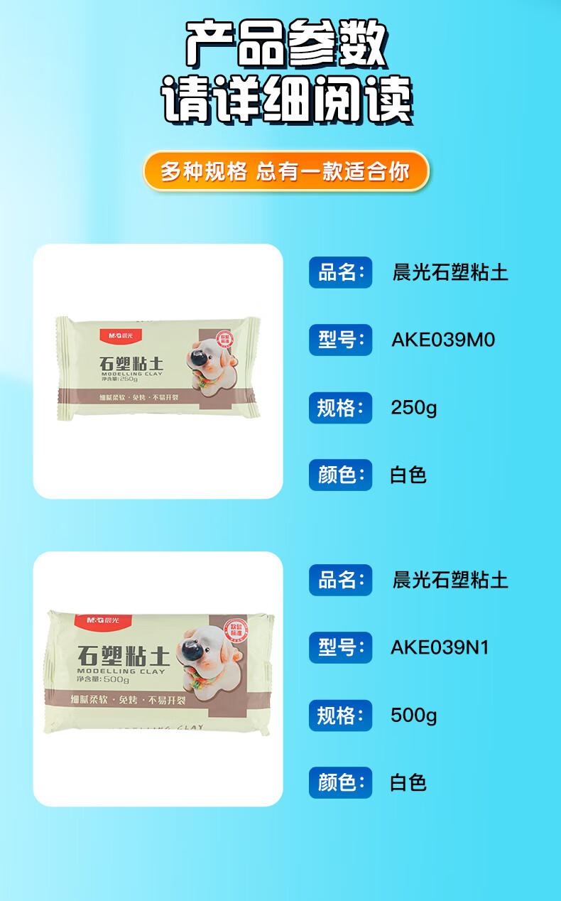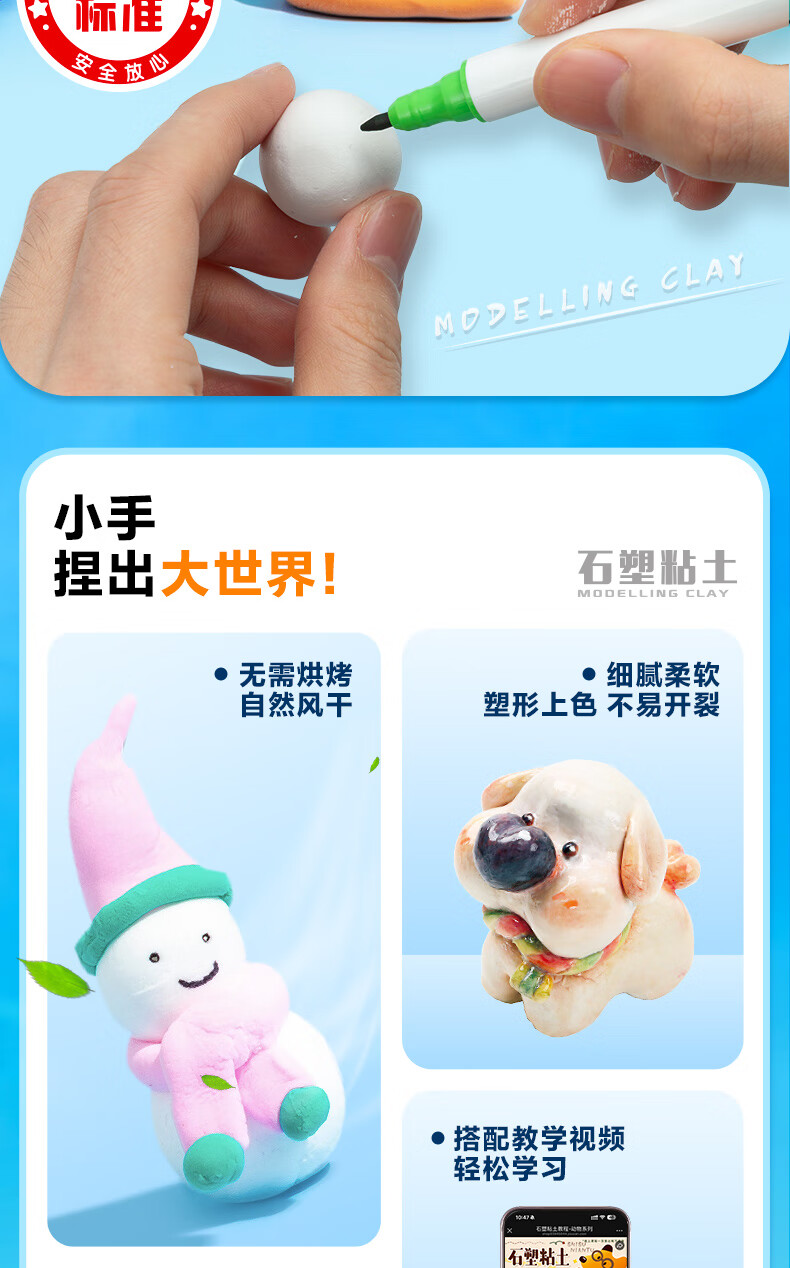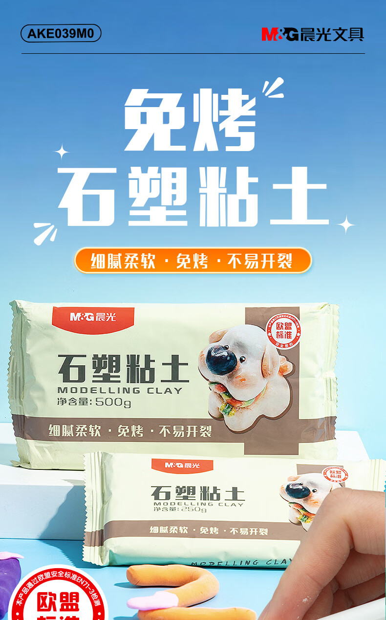 晨光(M&G)文具陶泥泥塑粘土手工石塑黏土工具套装风干免烤立体雕塑橡皮泥陶艺材料500gAKE039N1