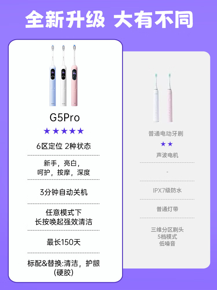 舒客大屏刷1级清洁电动牙刷成人/学生送男友/女友 情人节生日礼物 国家补贴 G5 Pro冰川蓝中秋礼盒款