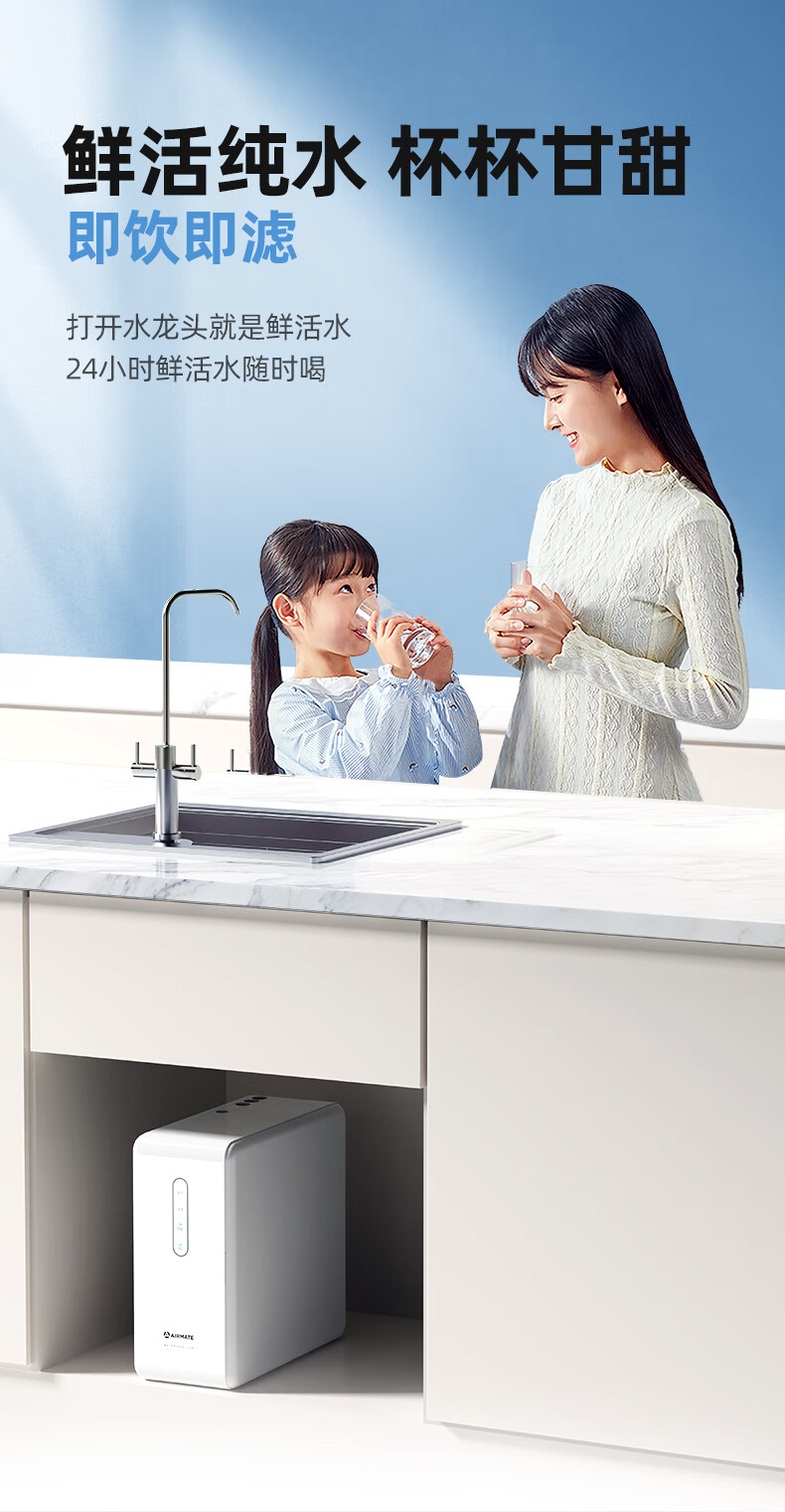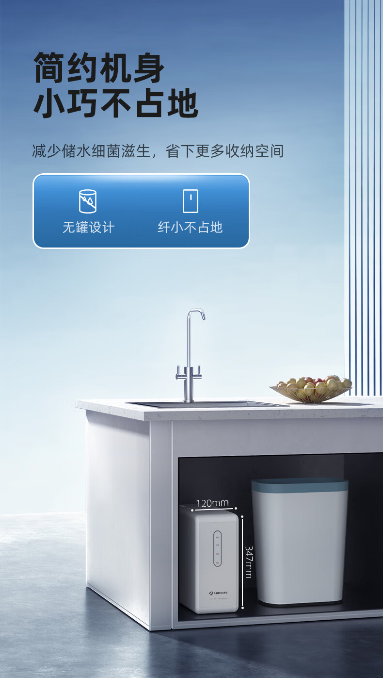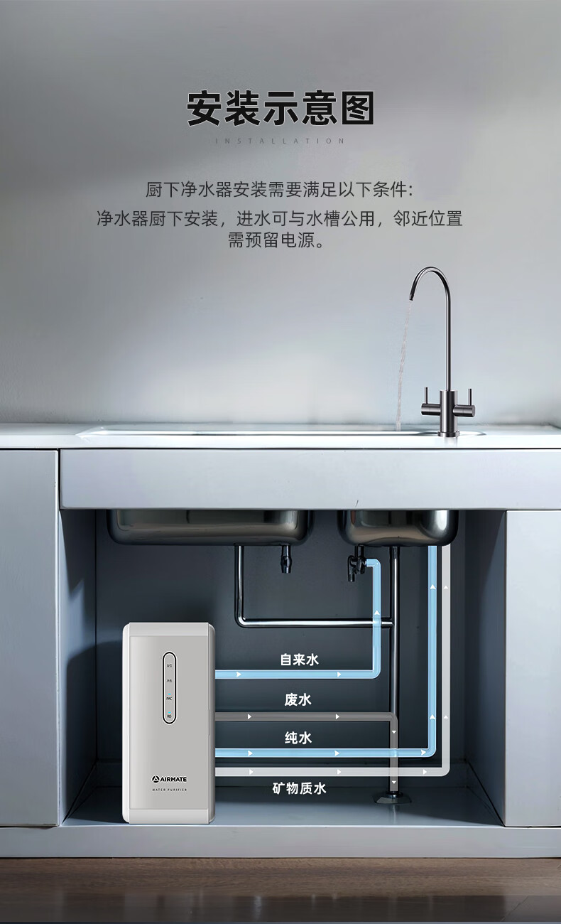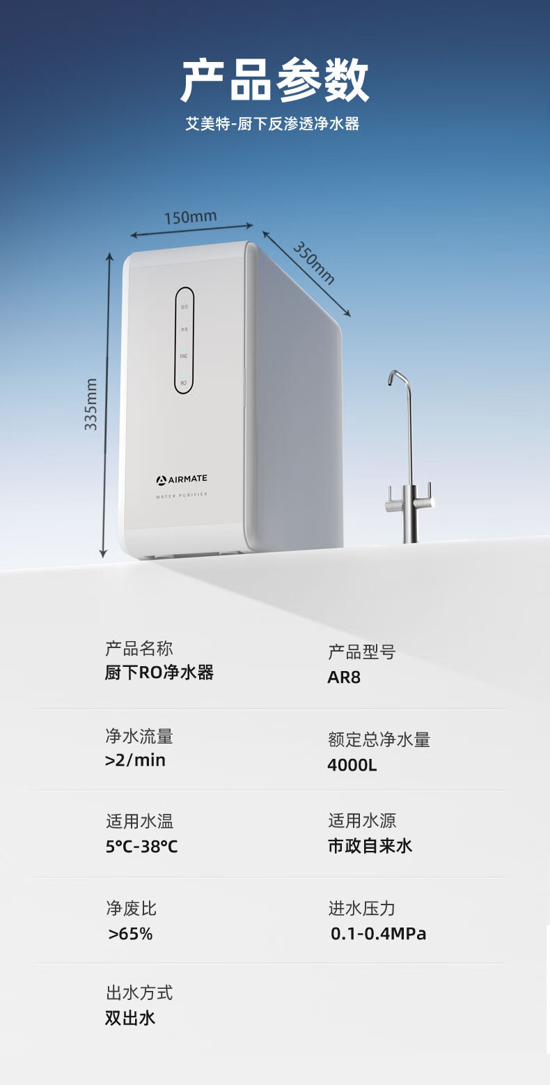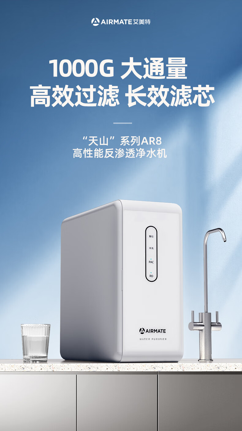 艾美特(AIRMATE)净水器家用厨下式净水机1000G大通量 RO反渗透厨房自来水直饮机过滤器净饮机双出水AR8