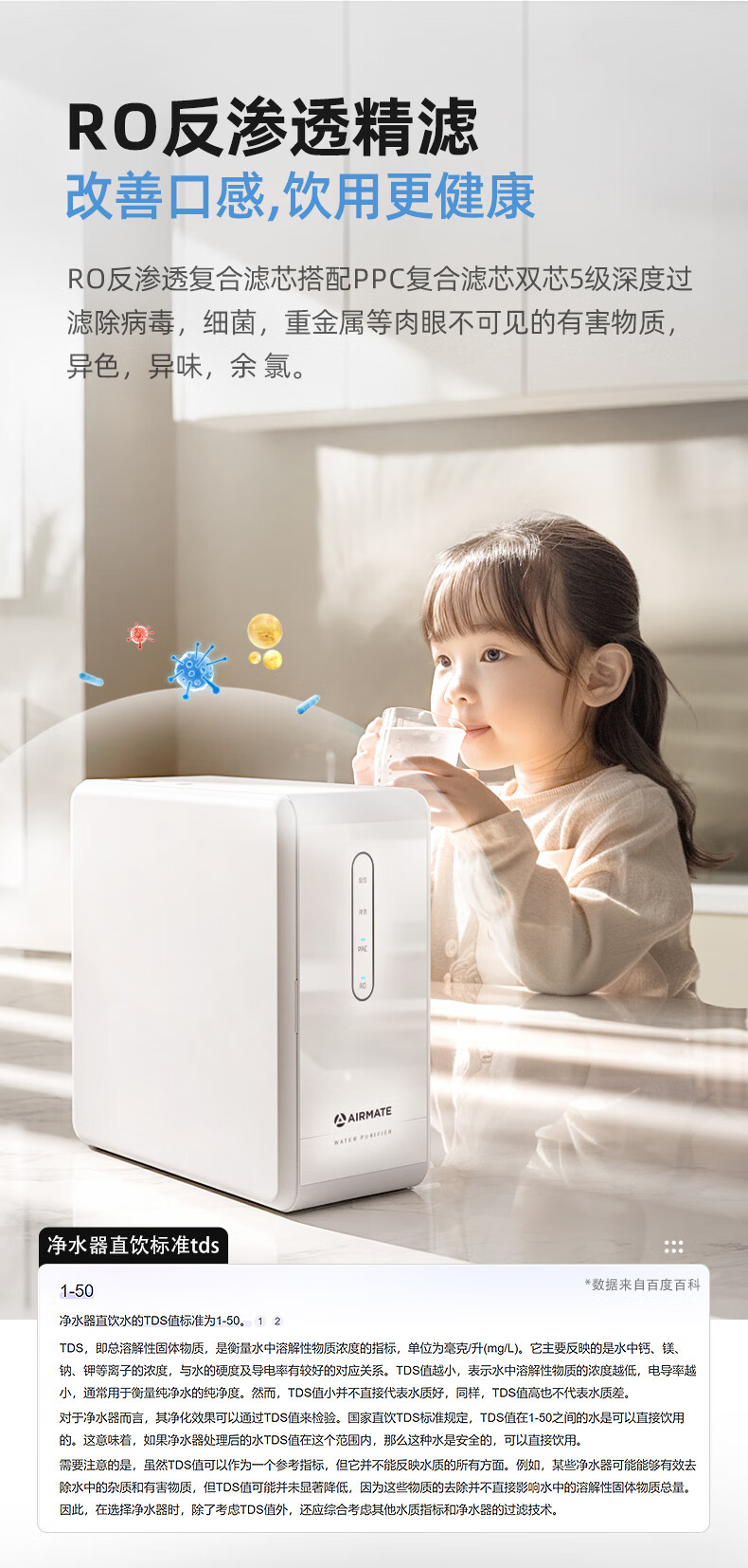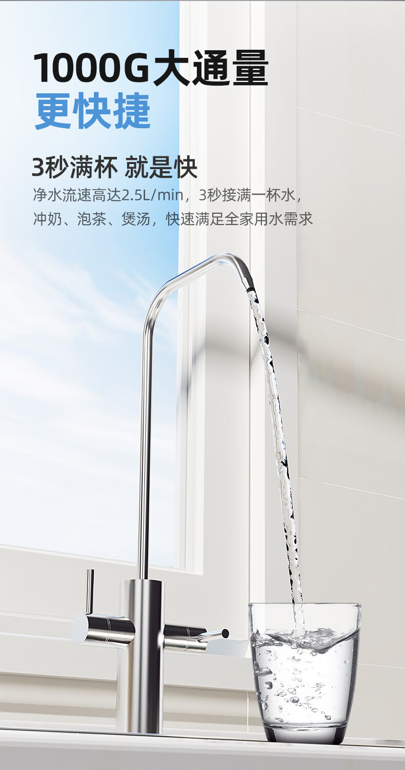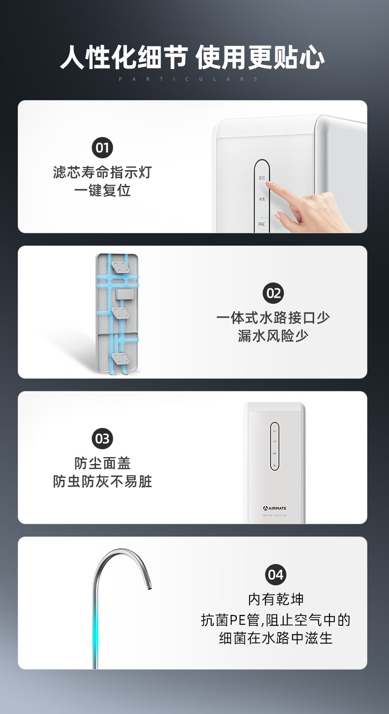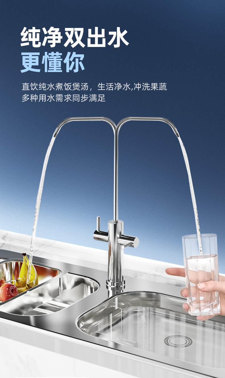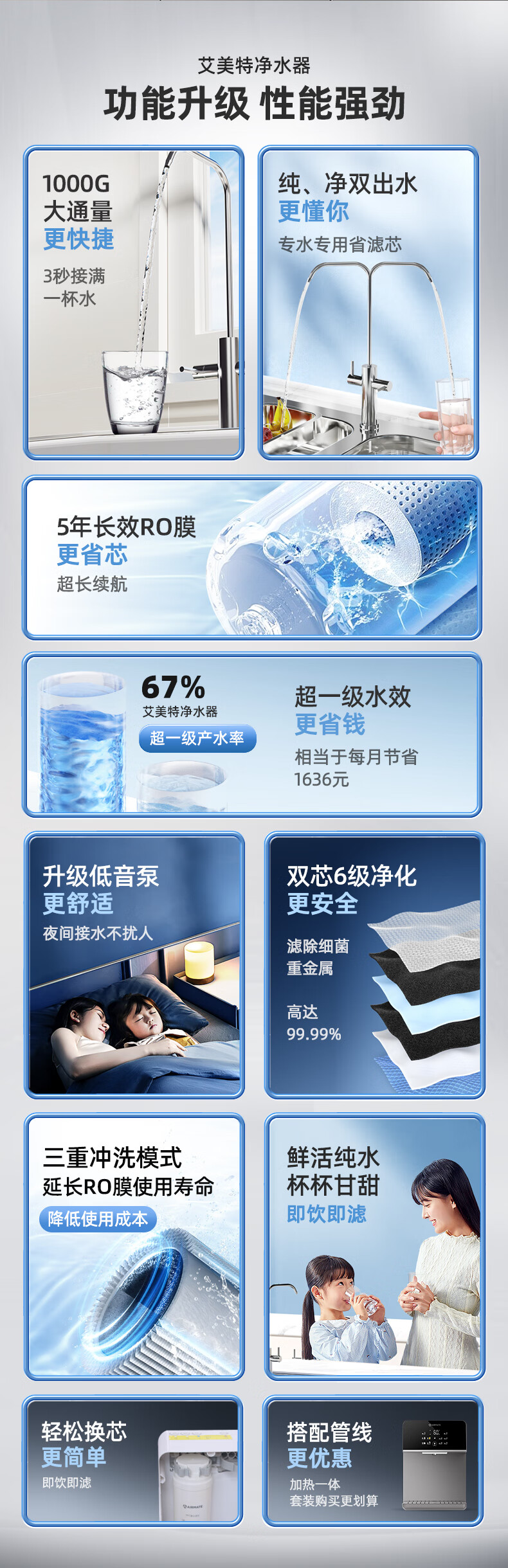 艾美特(AIRMATE)净水器家用厨下式净水机1000G大通量 RO反渗透厨房自来水直饮机过滤器净饮机双出水AR8