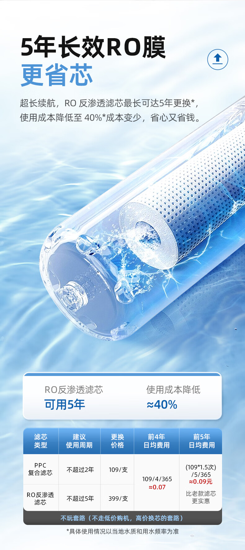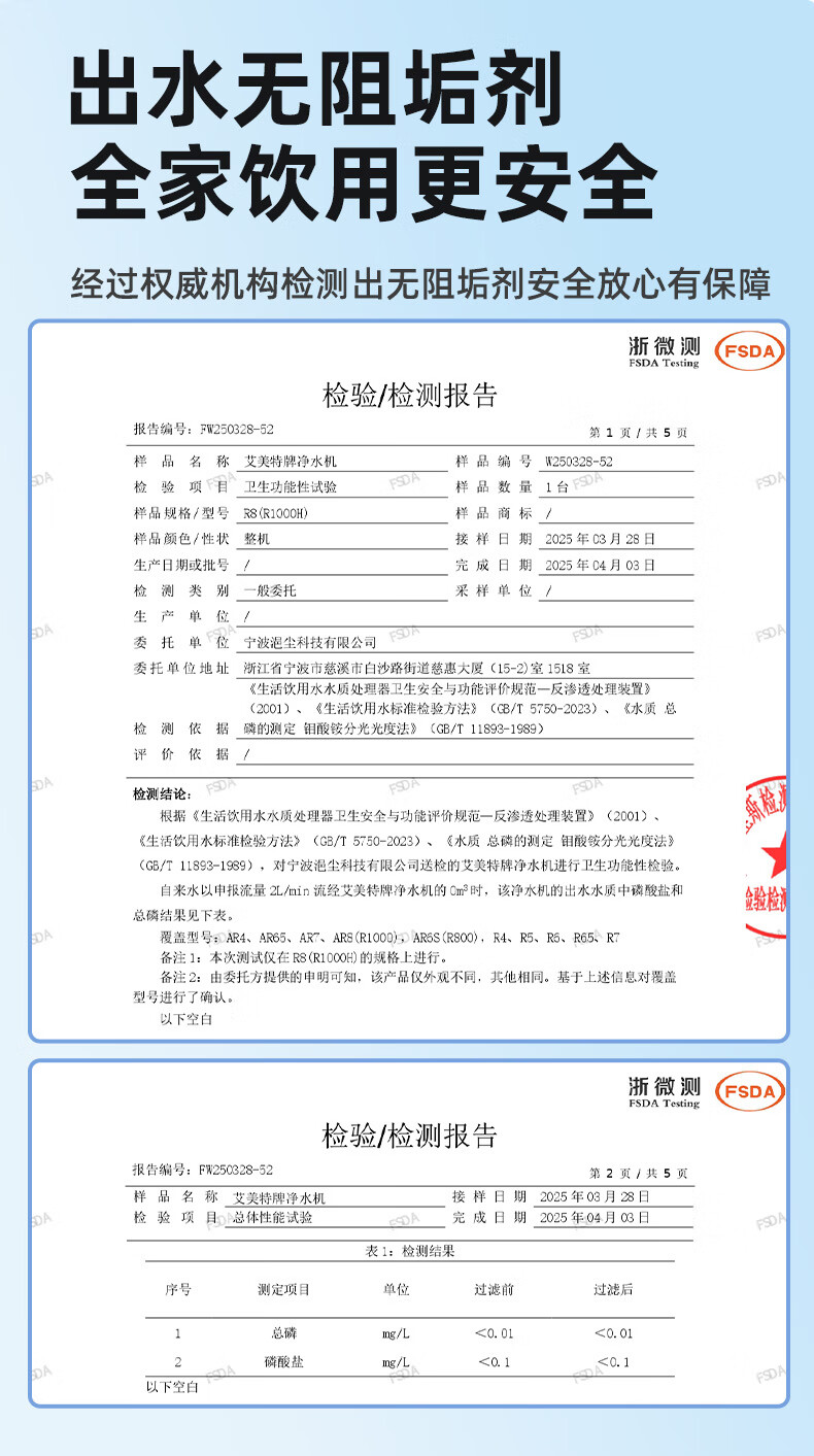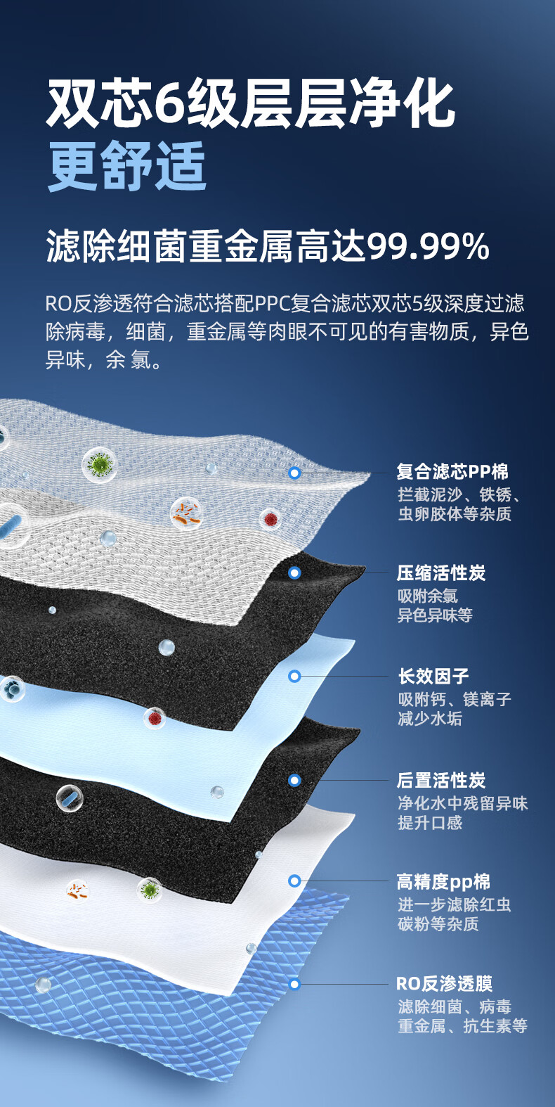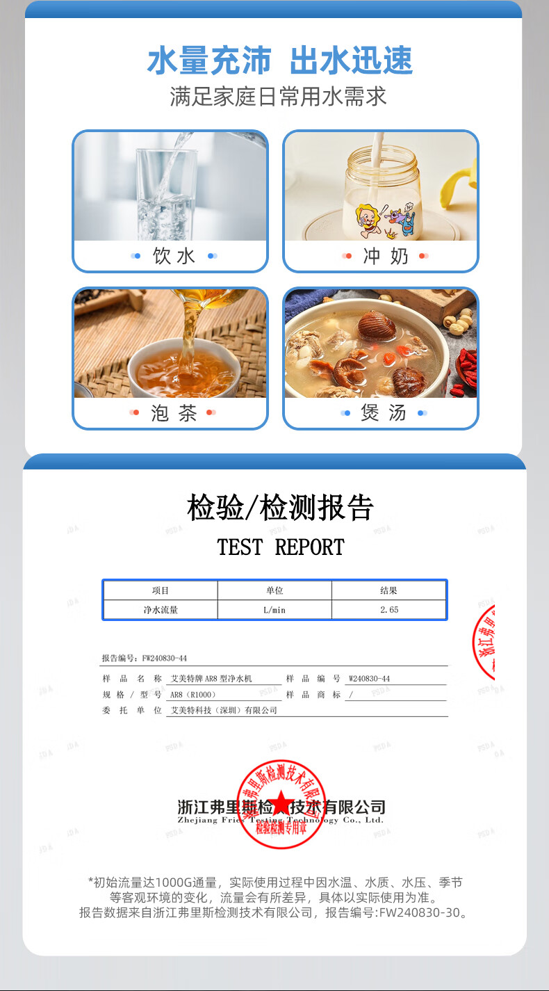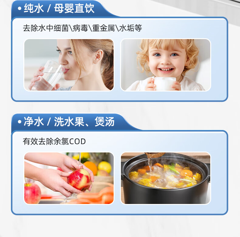 艾美特(AIRMATE)净水器家用厨下式净水机1000G大通量 RO反渗透厨房自来水直饮机过滤器净饮机双出水AR8