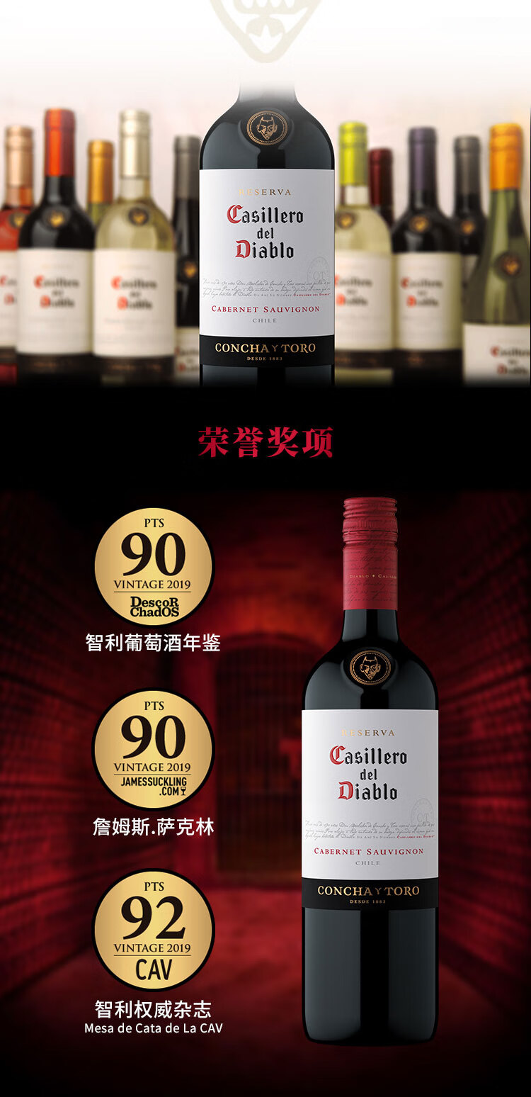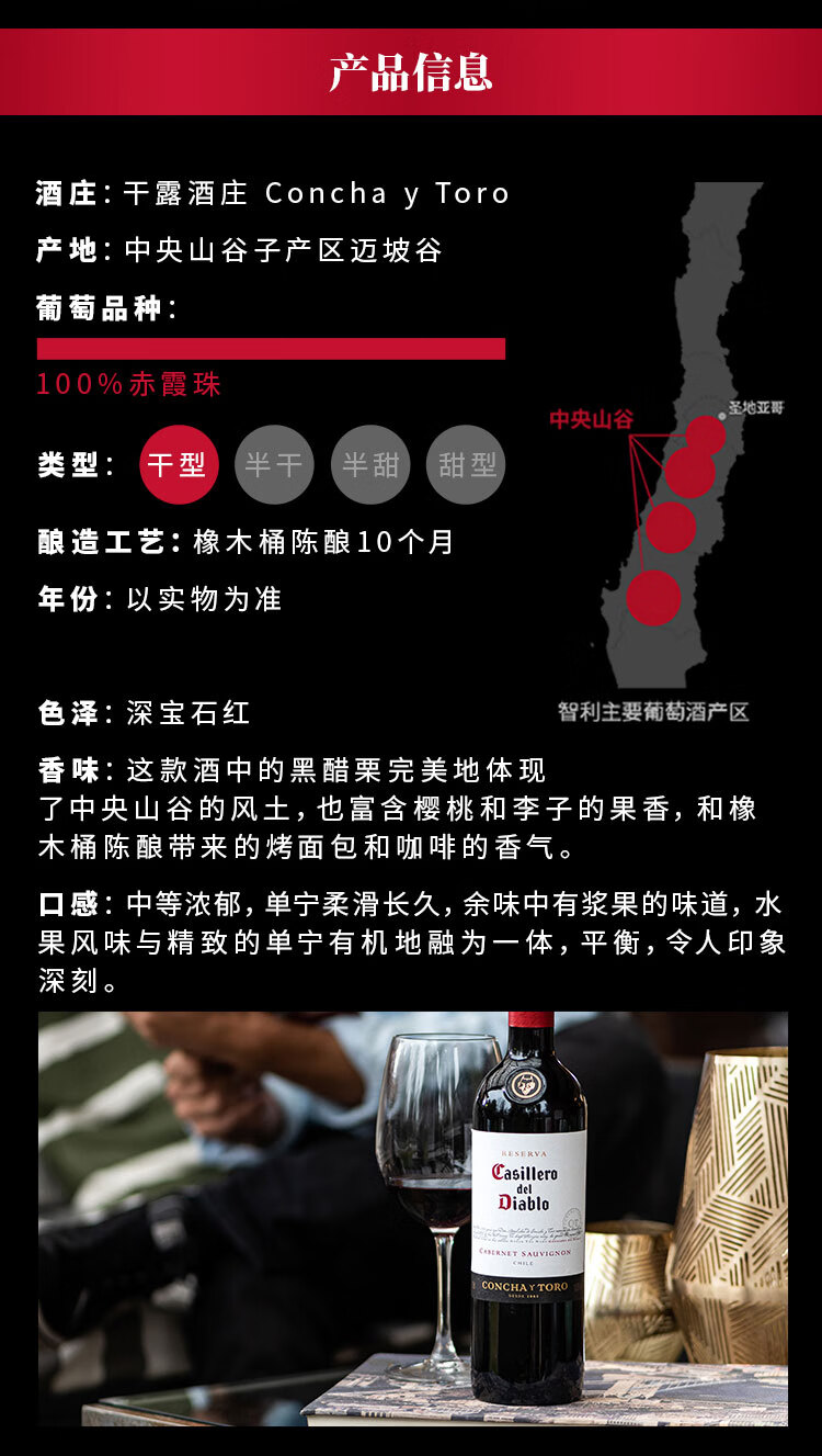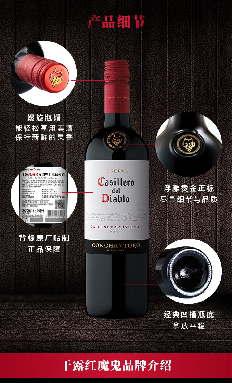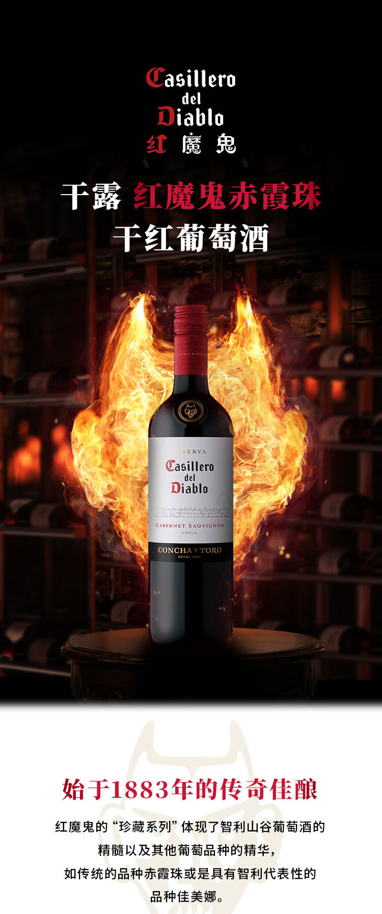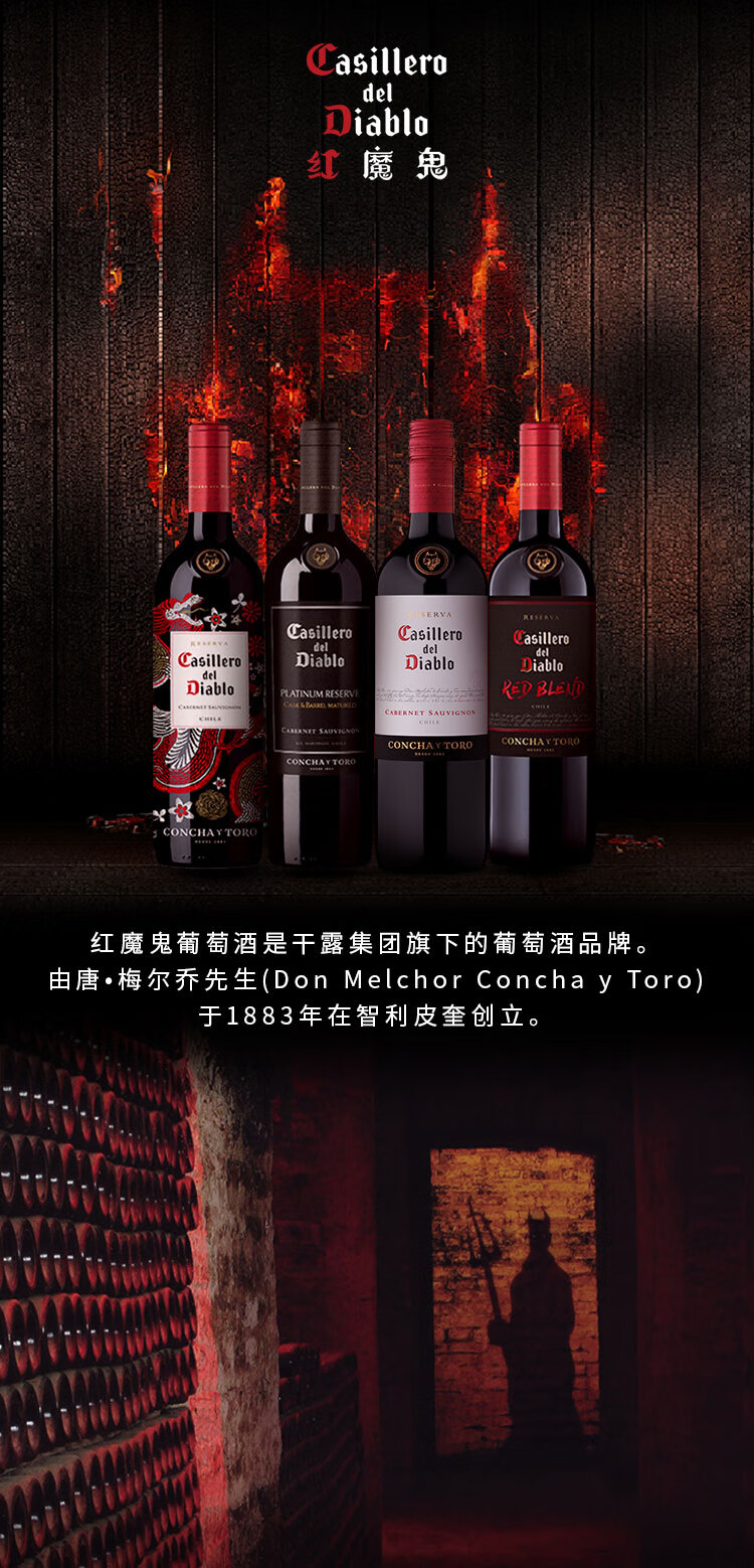 红魔鬼(Casillero del Diablo)赤霞珠干红葡萄酒 750ml*6瓶整箱 智利进口红酒聚餐酒 中秋送礼