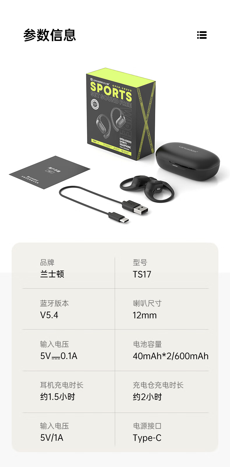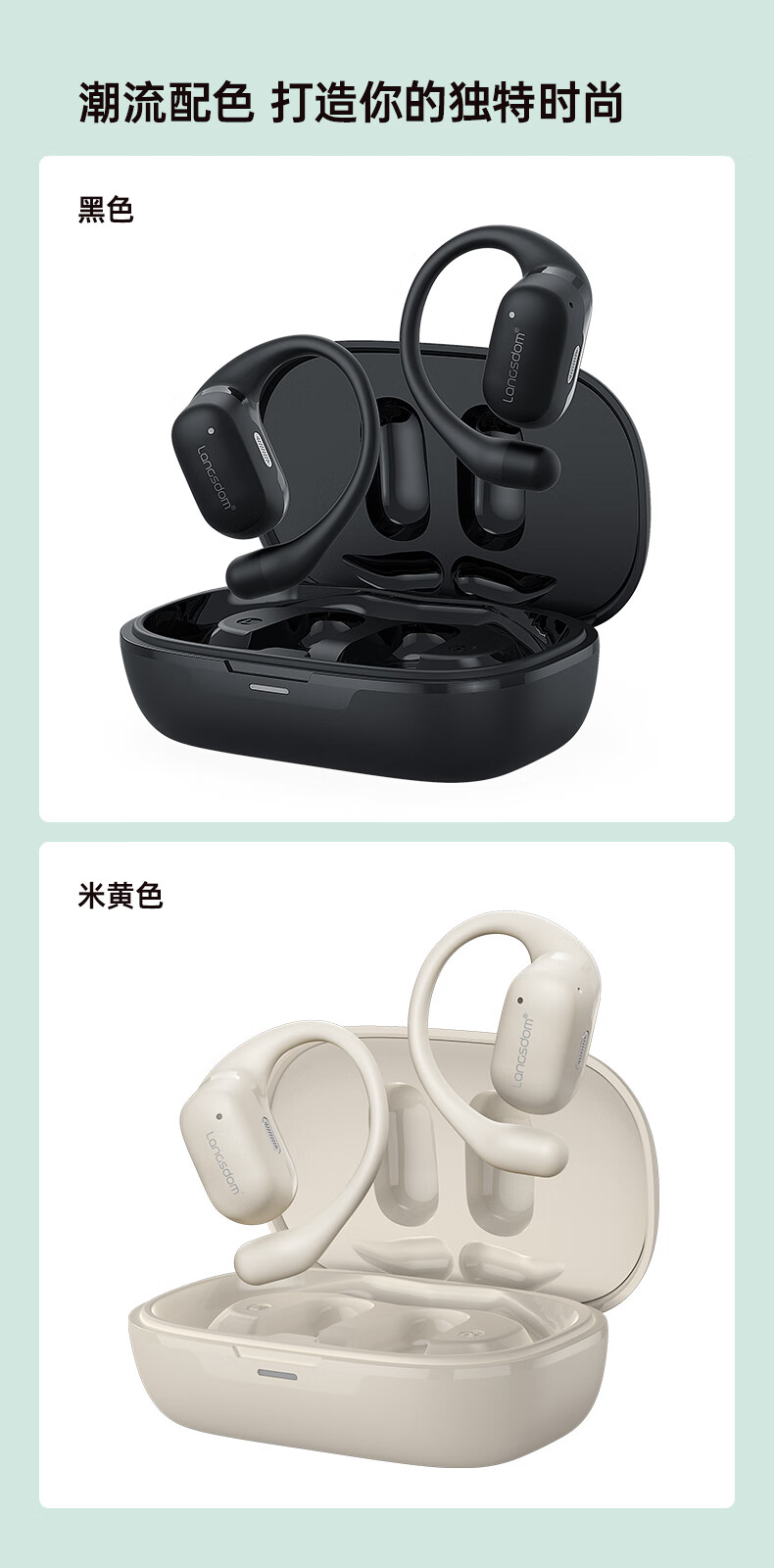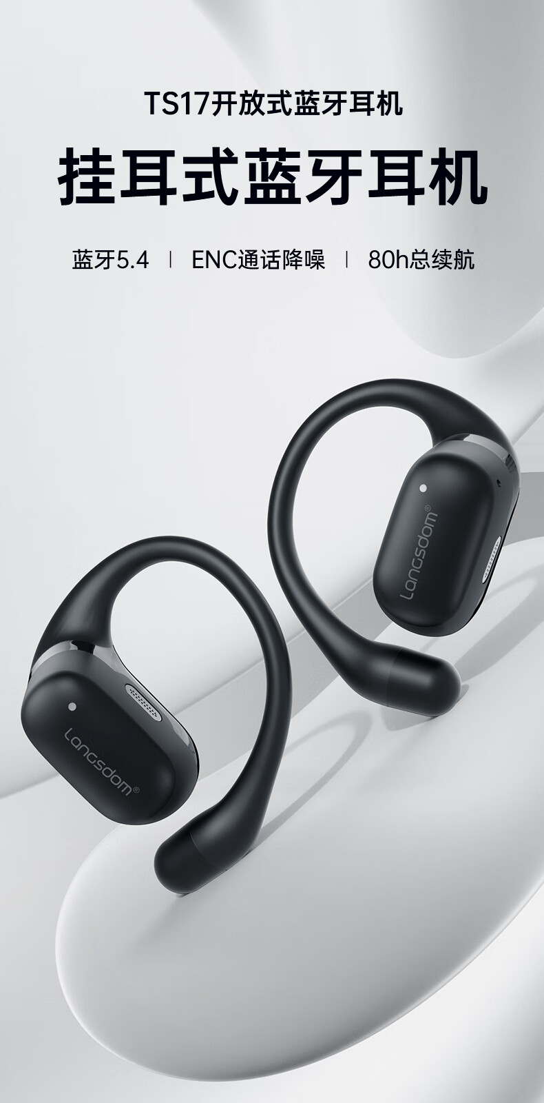 兰士顿 蓝牙耳机挂耳式 骨传导概念开放不入耳 通话降噪运动跑步骑行 适用于苹果小米手机 TS17米黄色