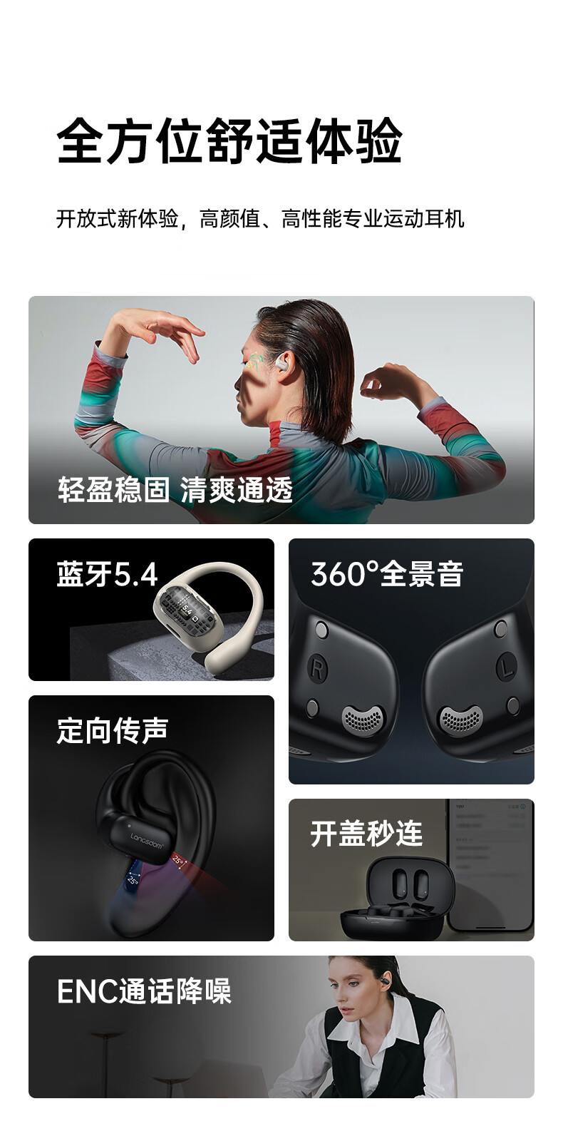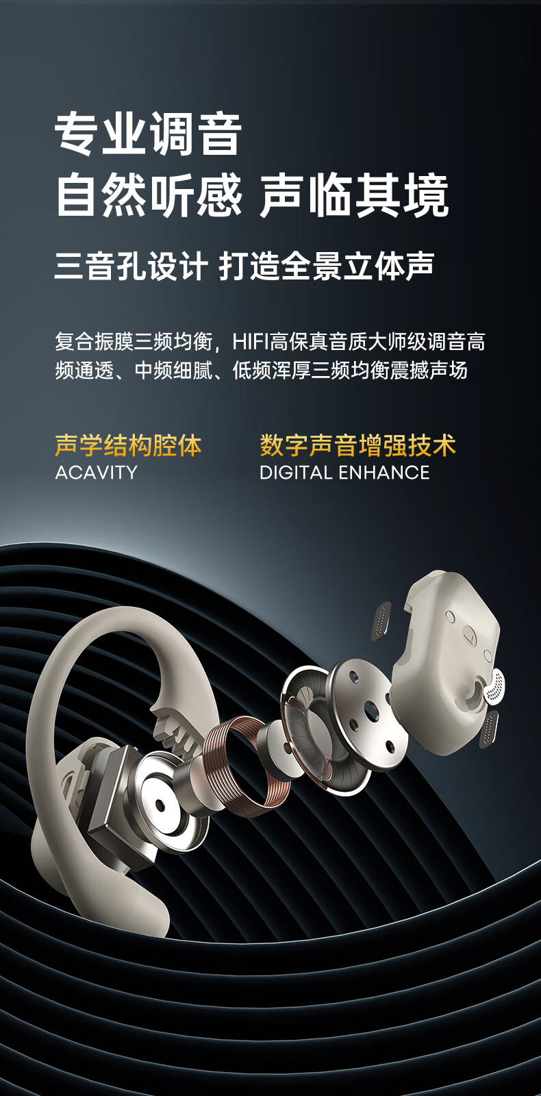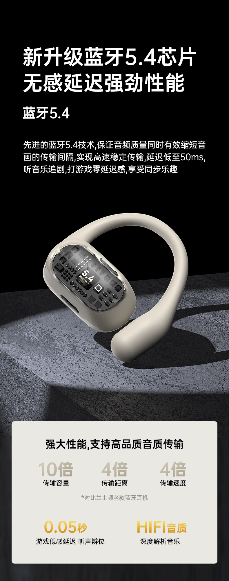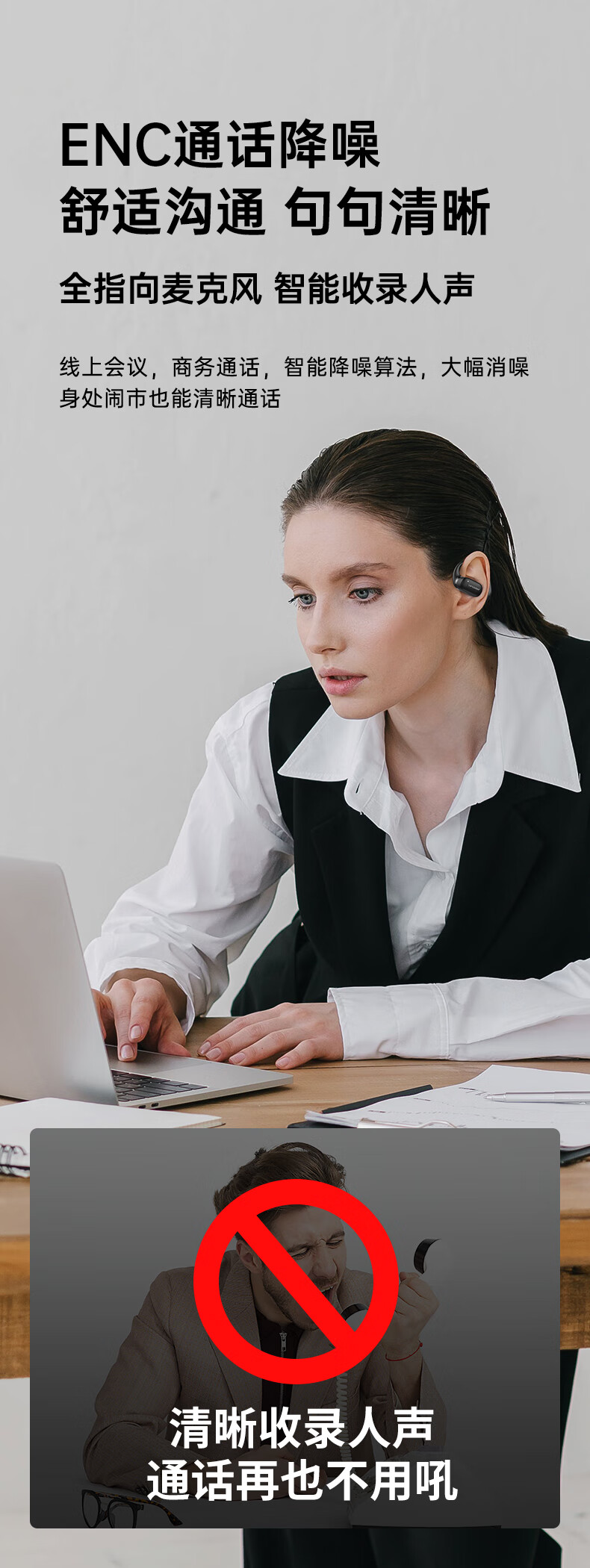 FEINADE【柏林之声丨顶配新款】蓝牙耳机挂耳式无线耳机骨传导概念开放式不入耳降噪运动超长续航适用华为 月光白|ENC降噪|超强音质|不漏音