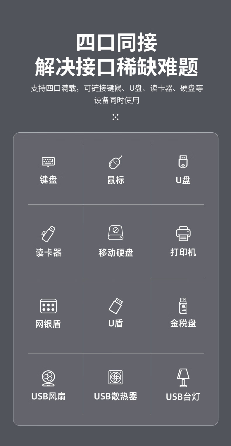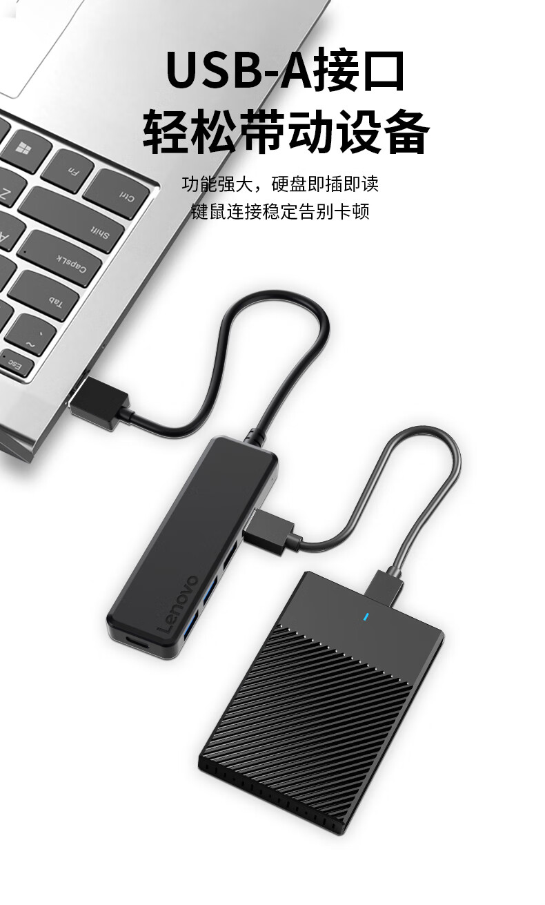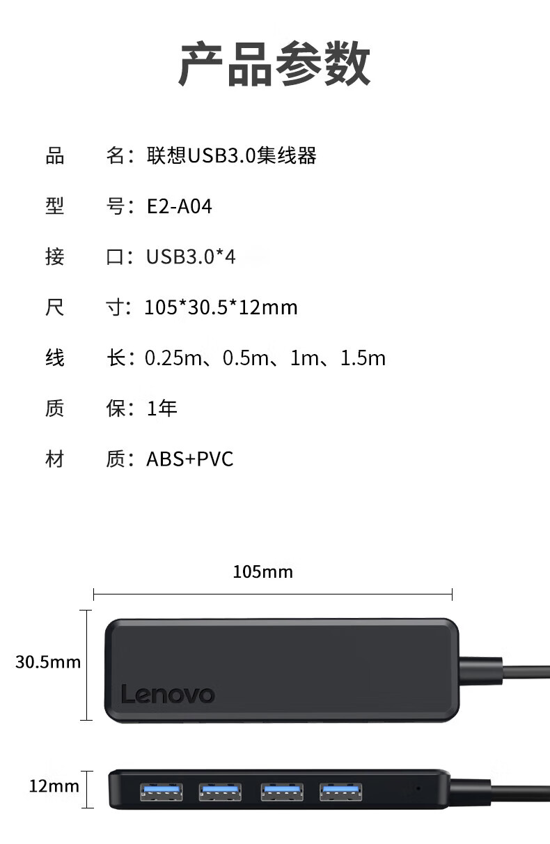 联想(Lenovo)USB分线器3.0接口转换器高速4口USB扩展坞转接头HUB集线器延长线扩展器拓展坞适用笔记本台式机