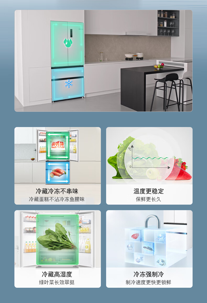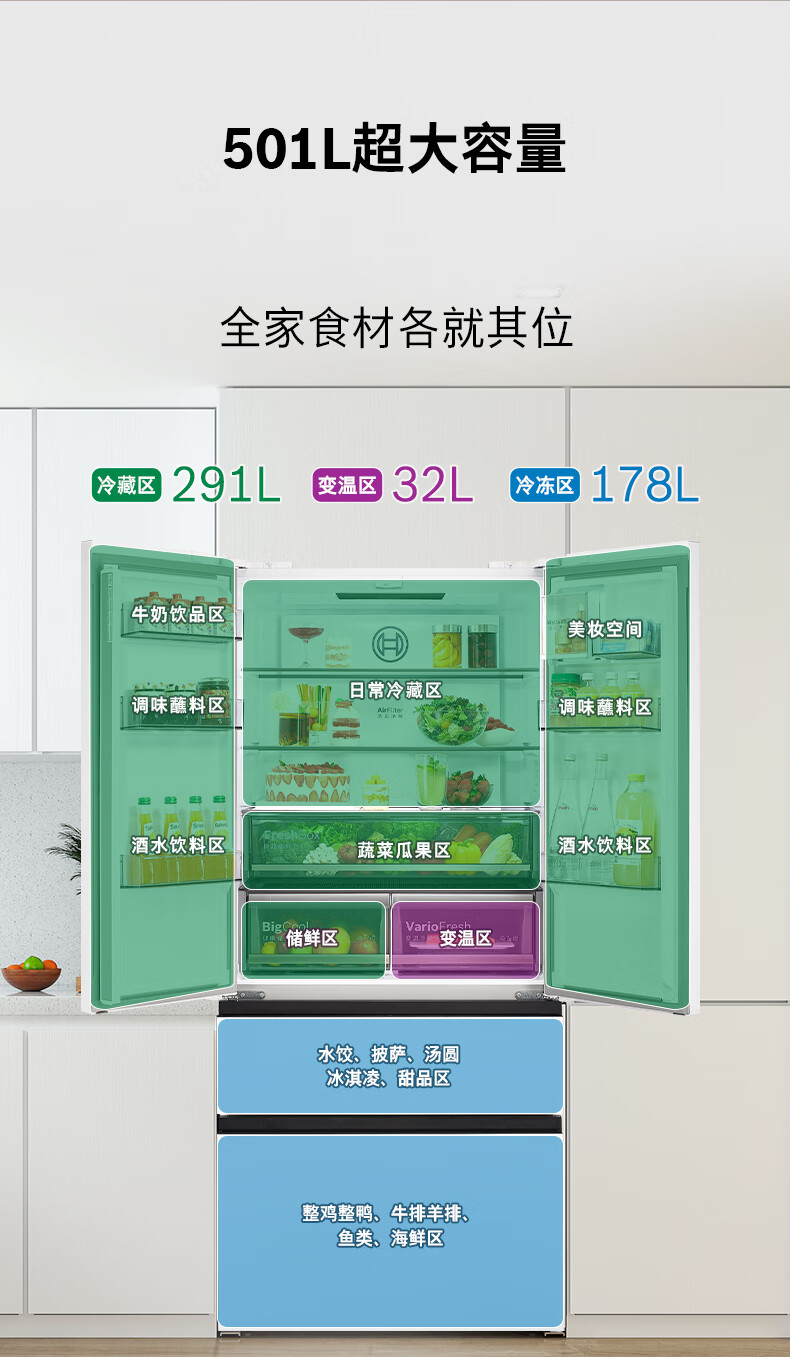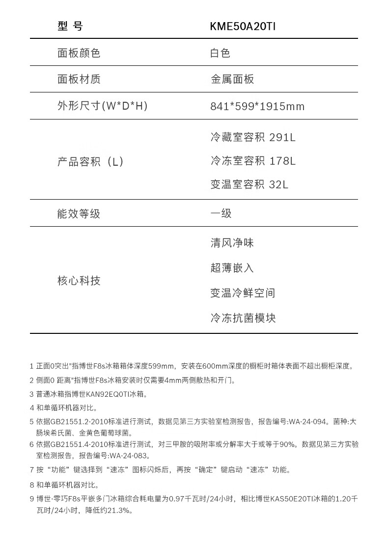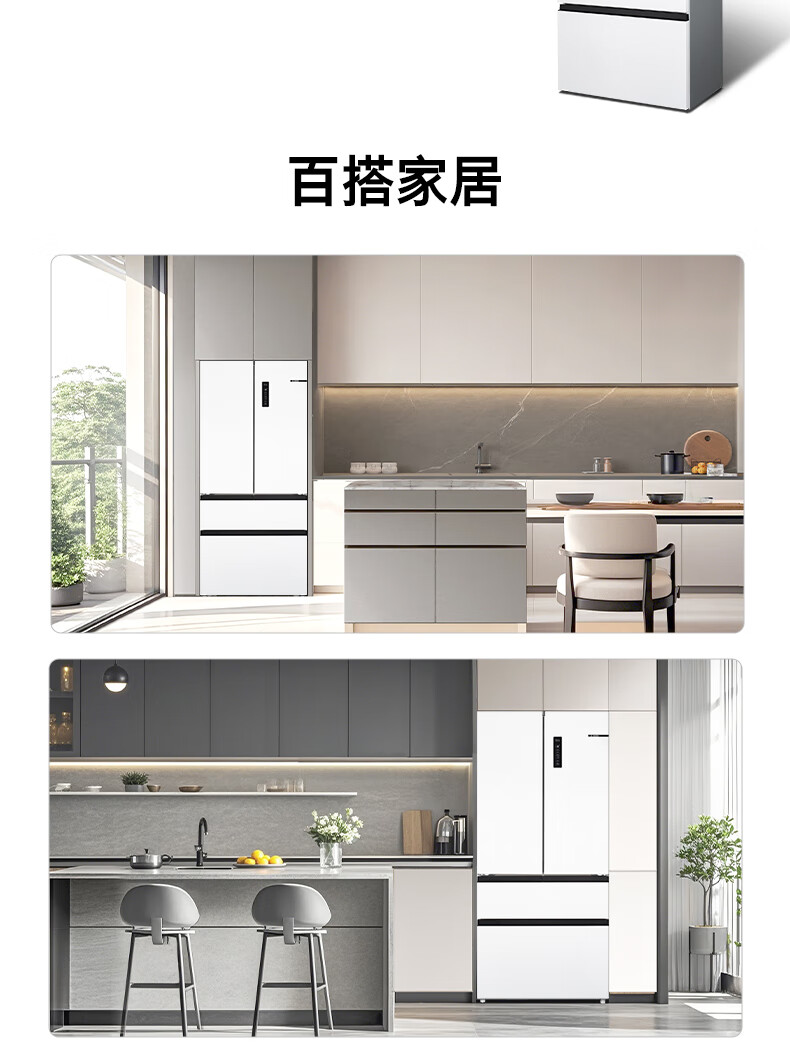 博世(BOSCH)冰箱【59.9cm超薄平嵌】501L法式四开门多门家用变频电冰箱 双循环大容量 清风净味 支持国家补贴 白色KME50A20TI