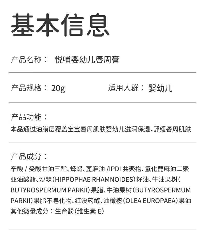 悦哺婴儿唇周膏 宝宝口水膏嘴部舒缓护理润唇非疹膏滋润保湿乳 20g