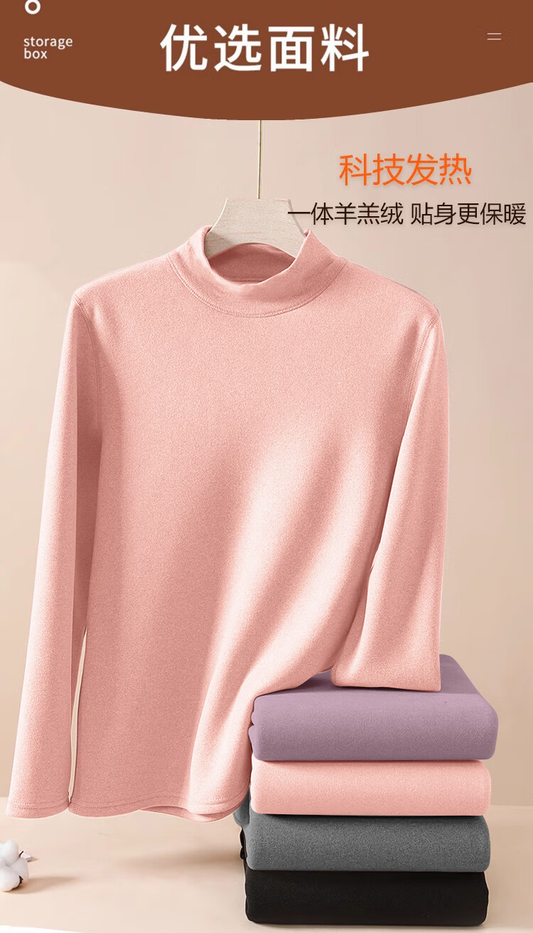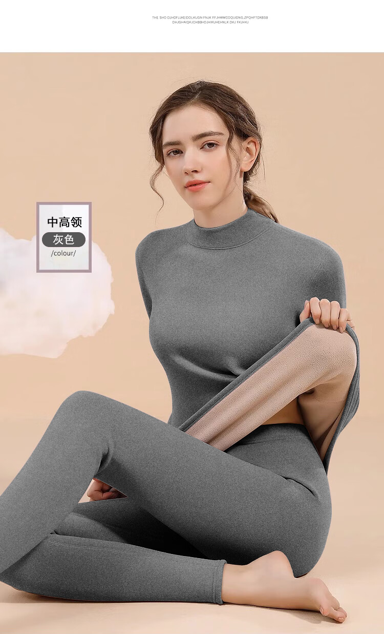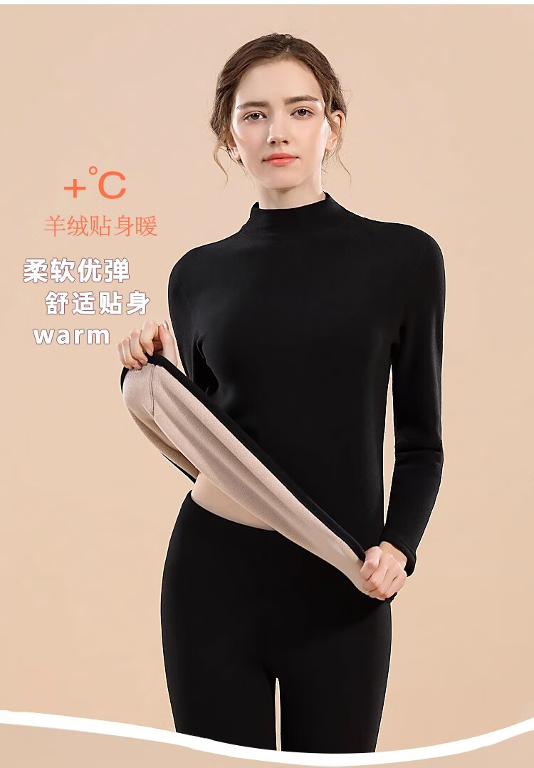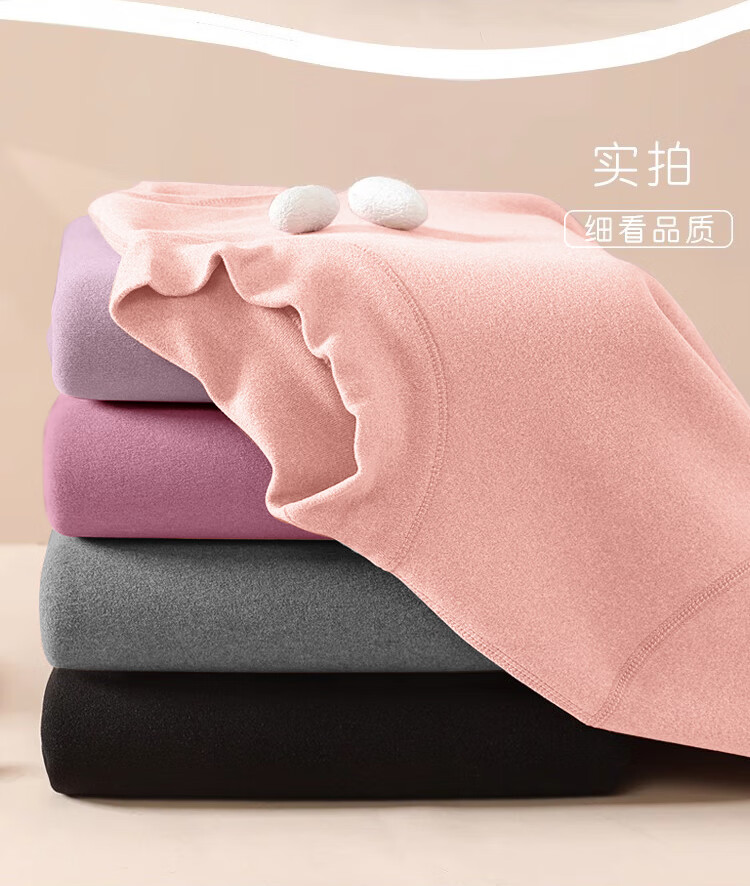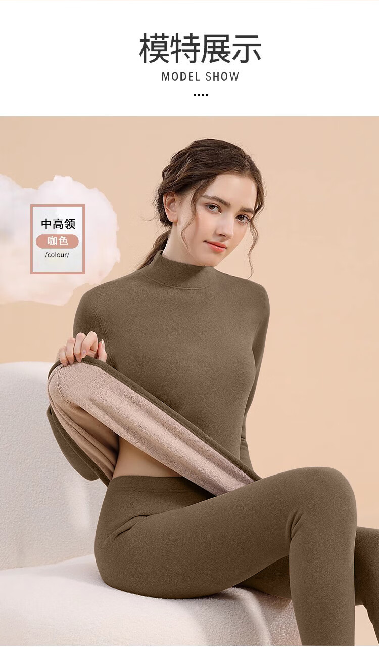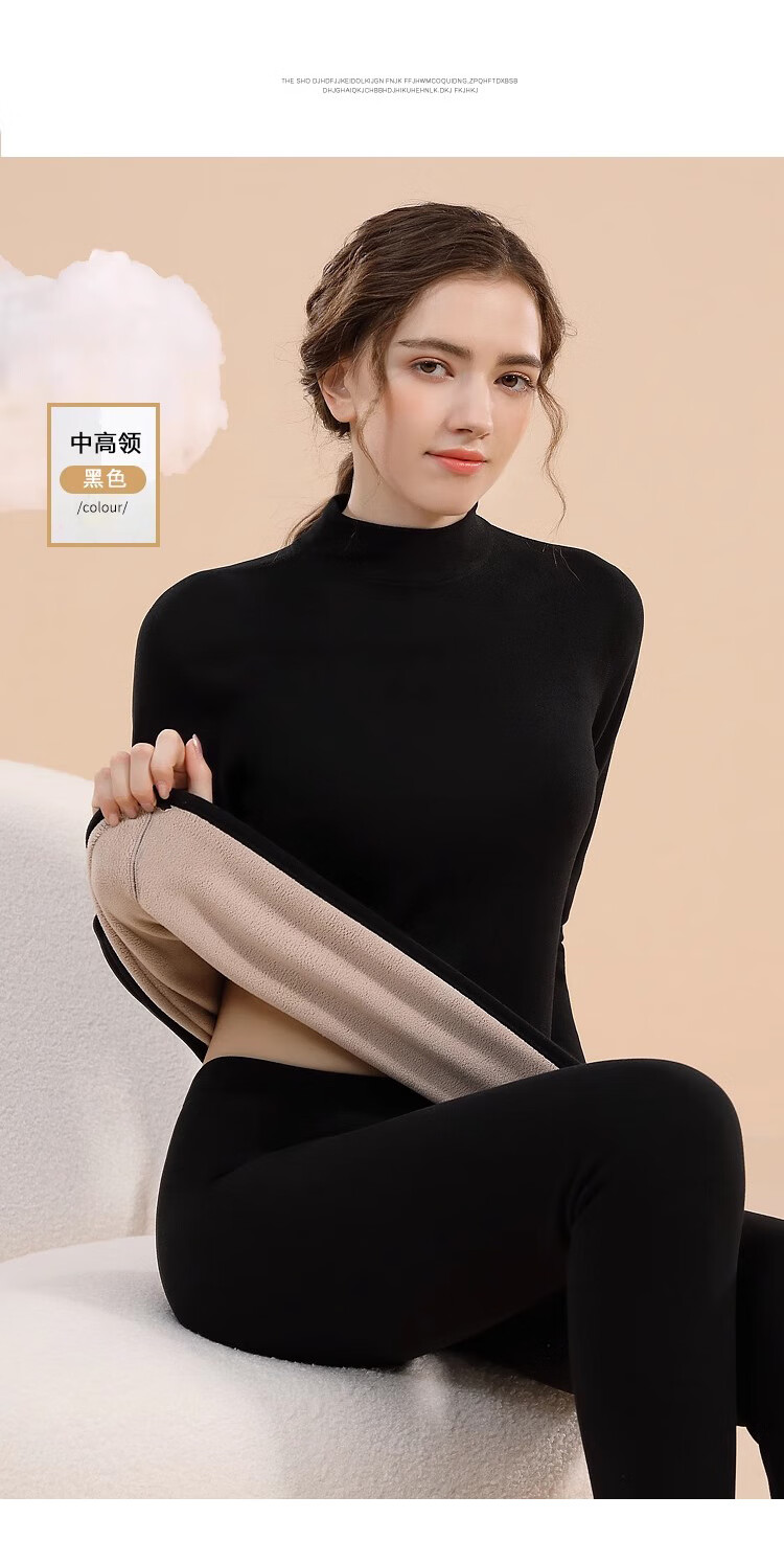 芬腾羊羔绒保暖内衣加绒加厚女士半高领德绒发热秋衣秋裤百搭套装冬季 紫色【Z1097高领套装】 M 【建议80-100斤】