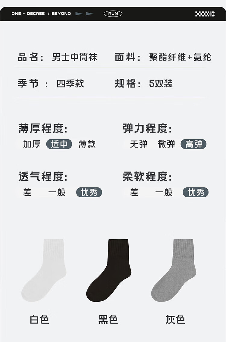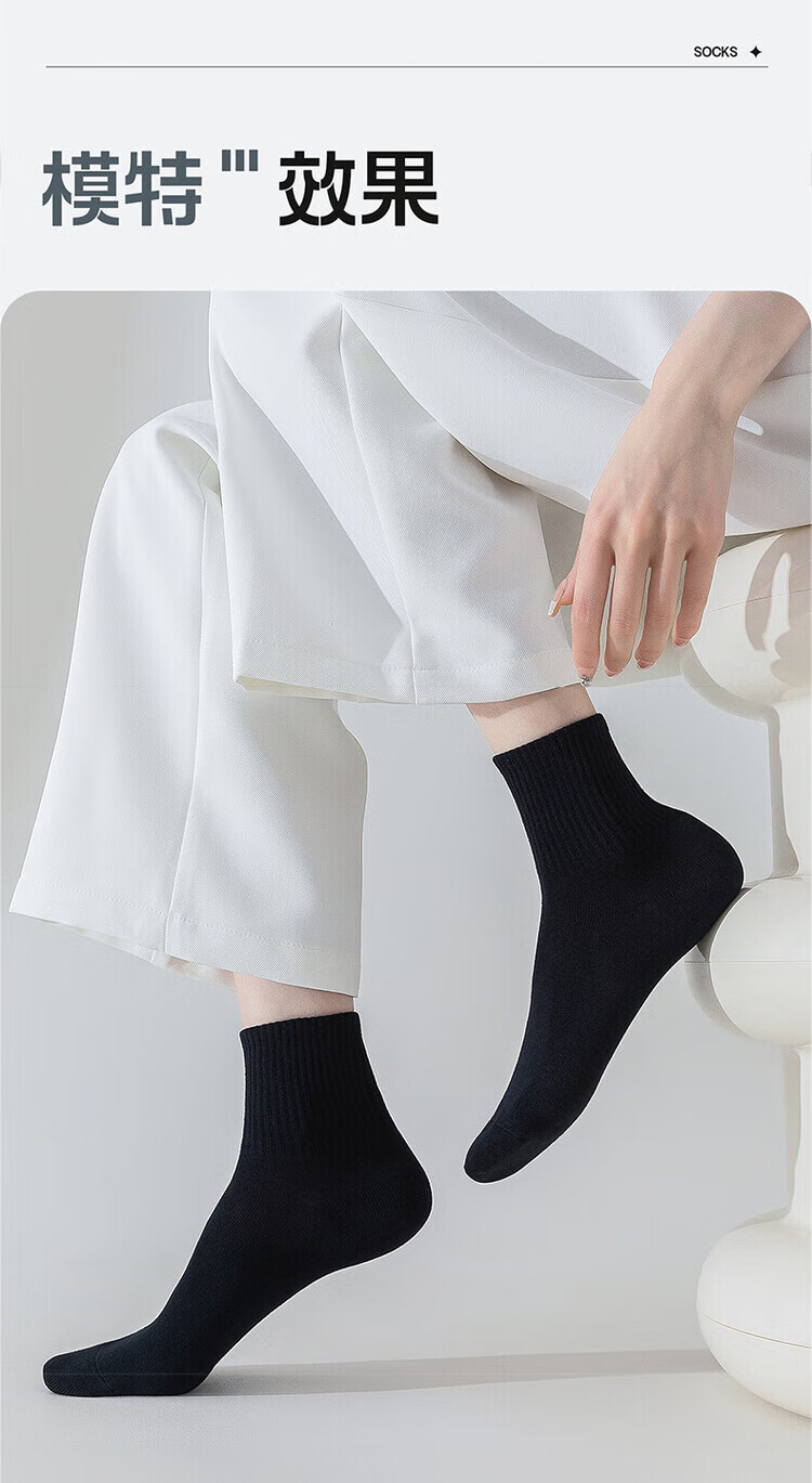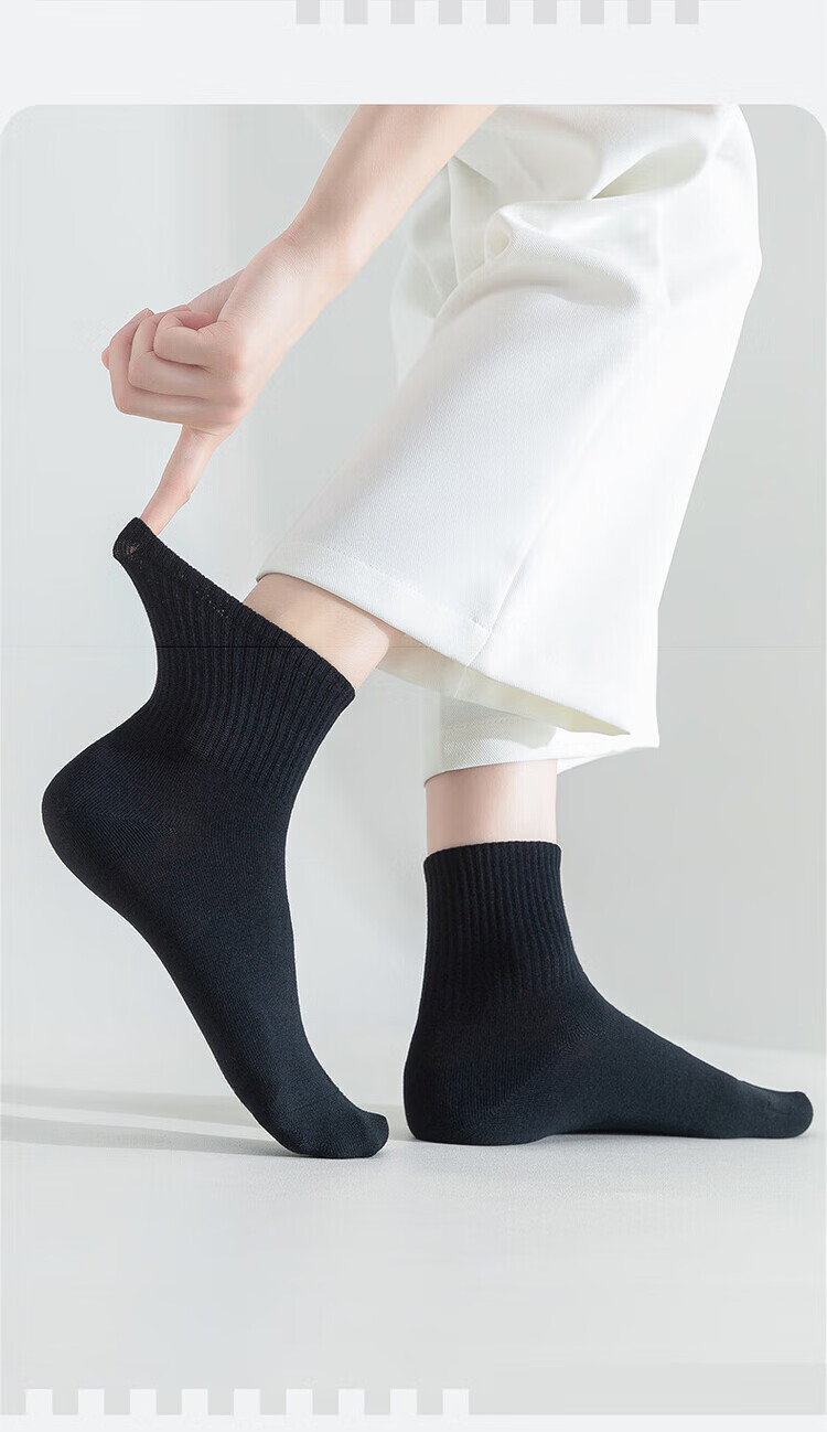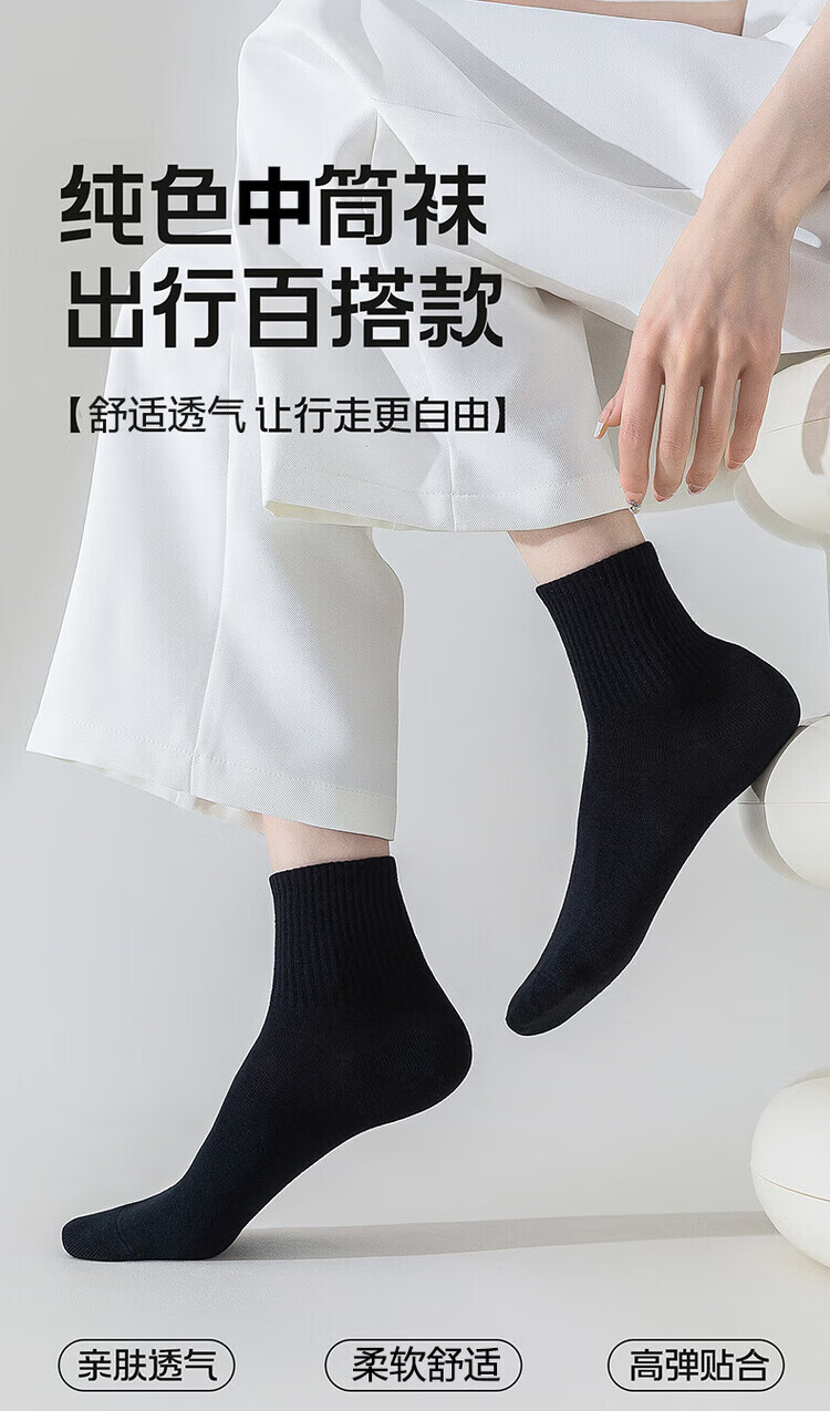 极烁【5双装】中筒袜秋冬透气商务休闲袜四季男士纯黑色百搭中筒袜 【5双装】黑色中筒袜 均码