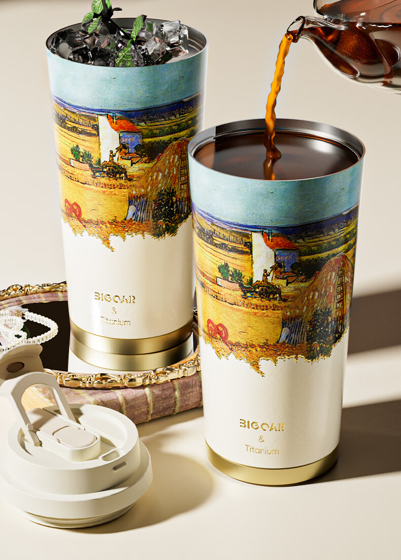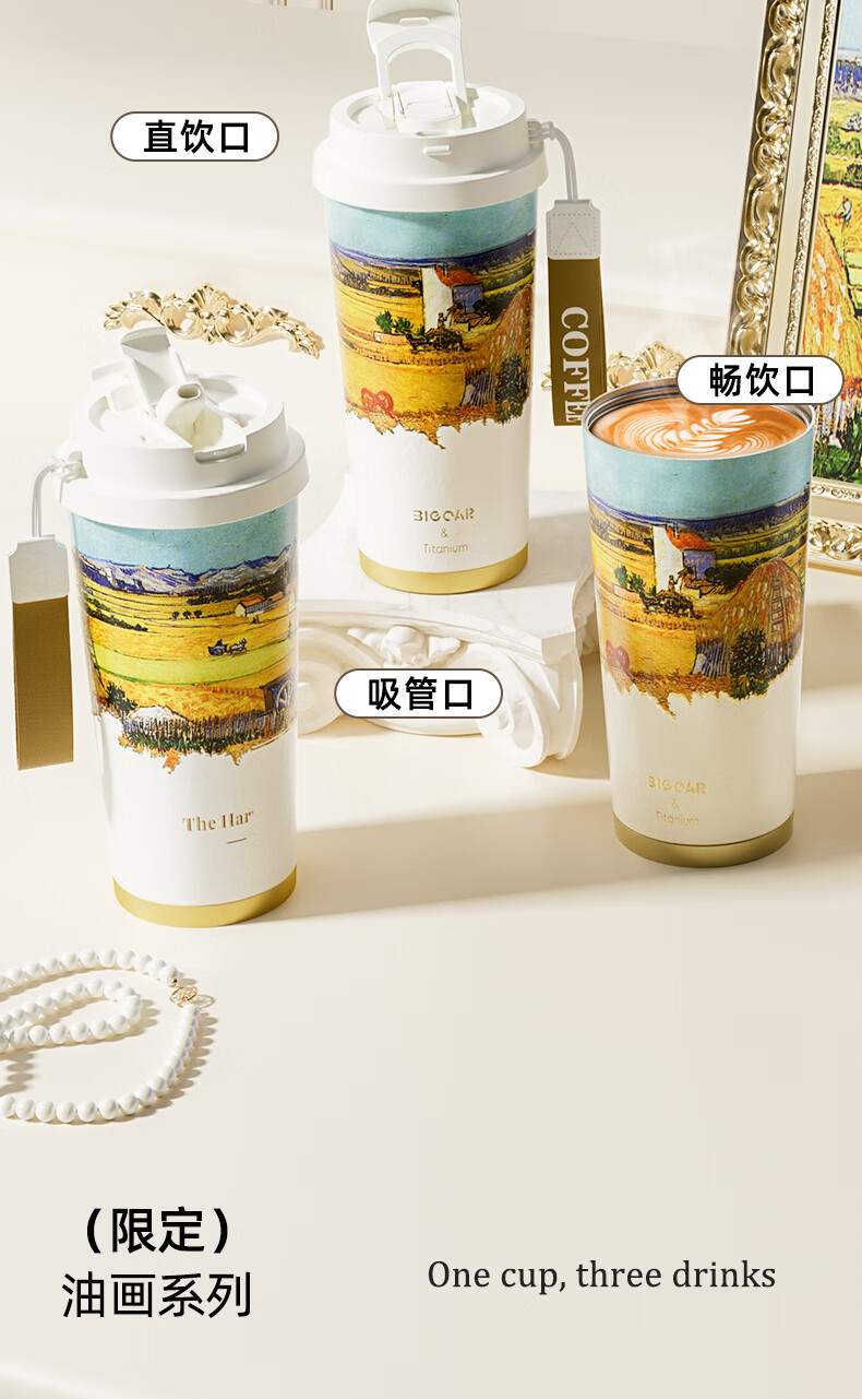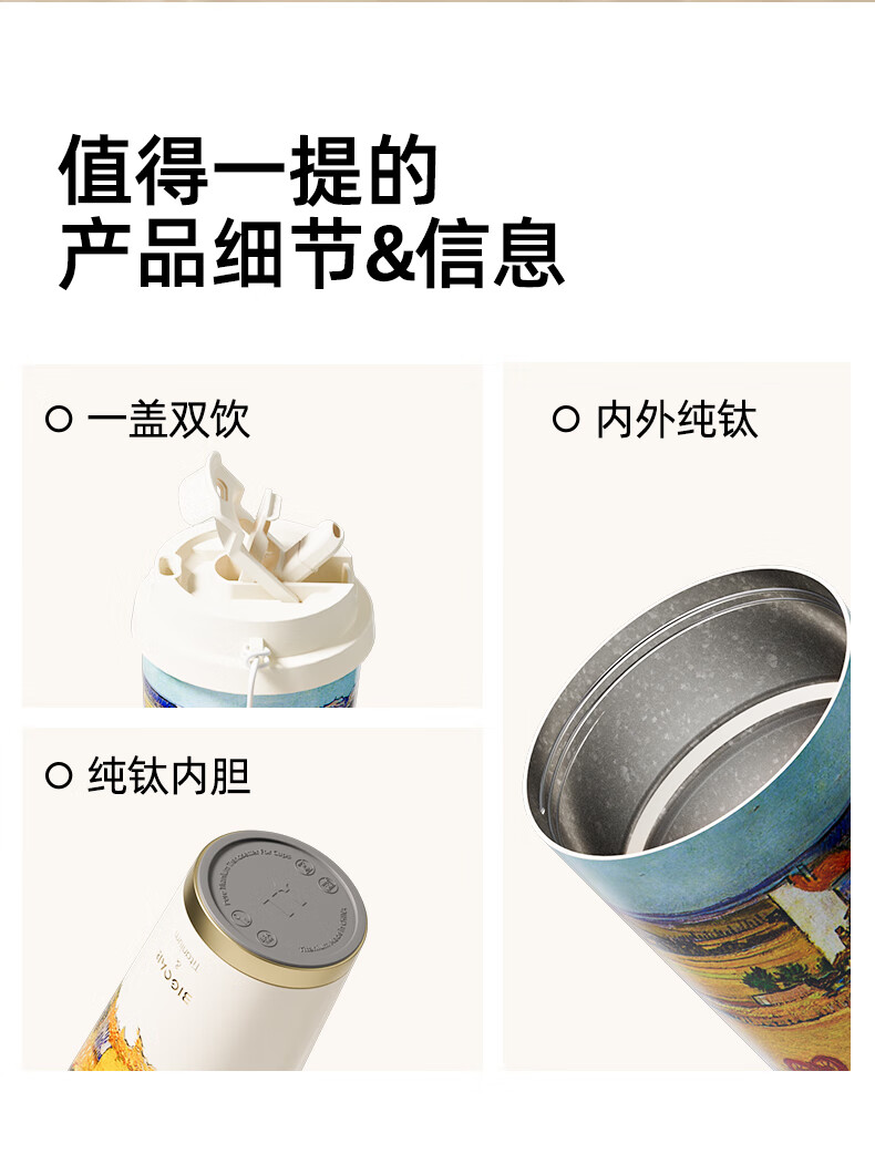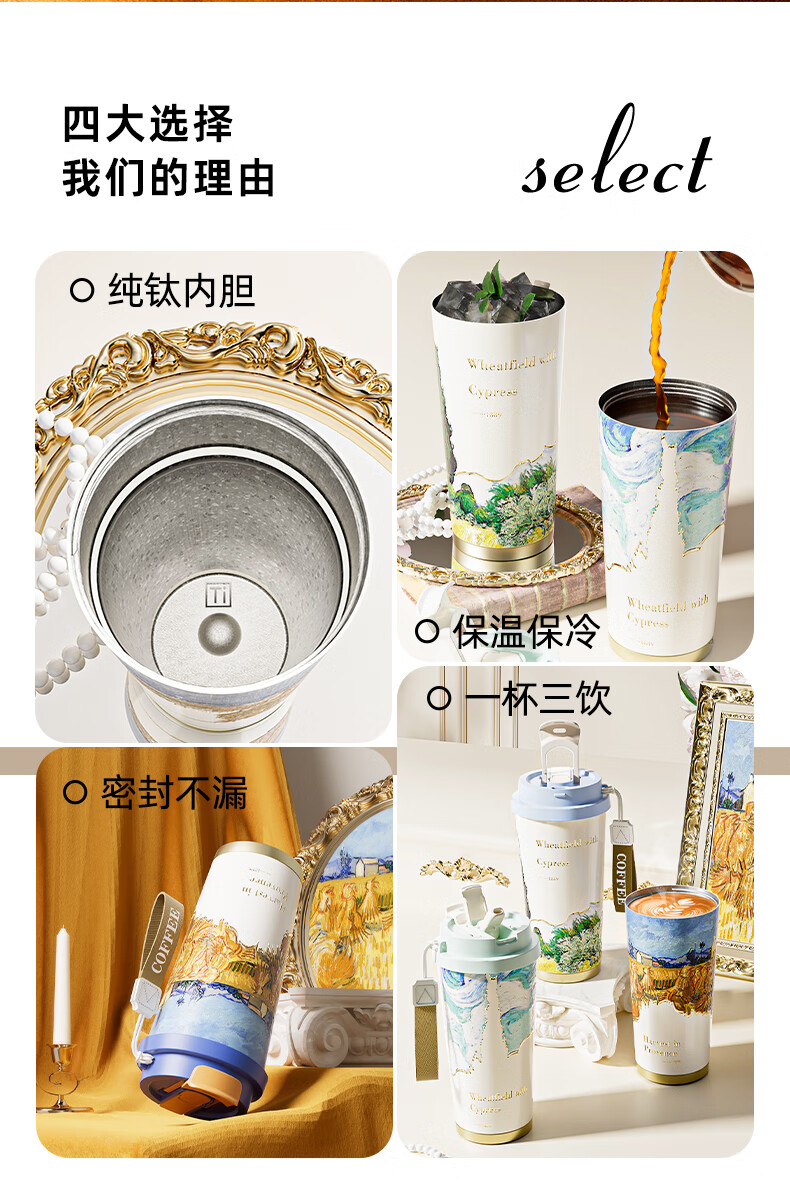 大卡纯钛保温杯男女便携咖啡杯学生双饮杯子送男友女友生日礼物 钛本风信紫【内外纯钛】520ml