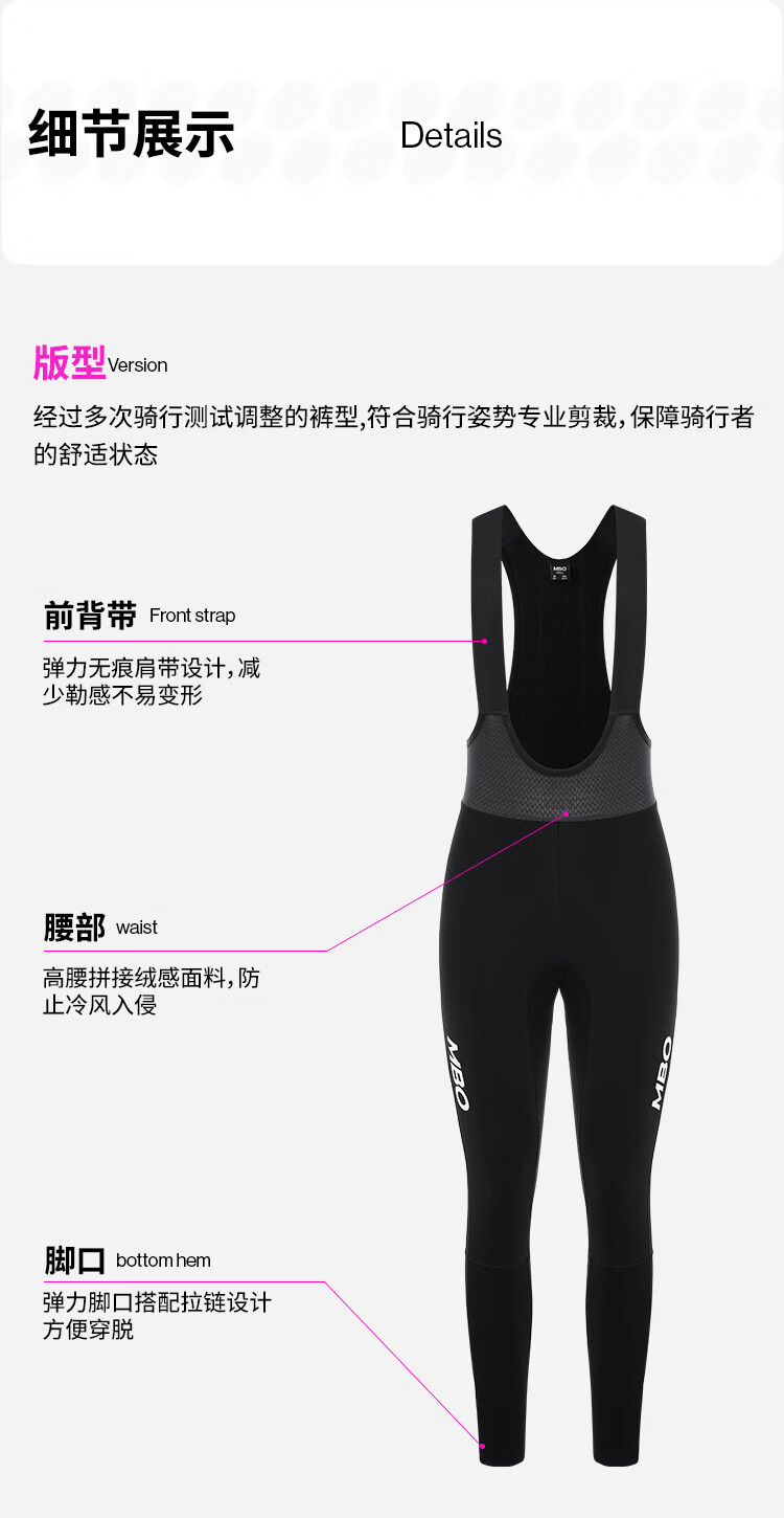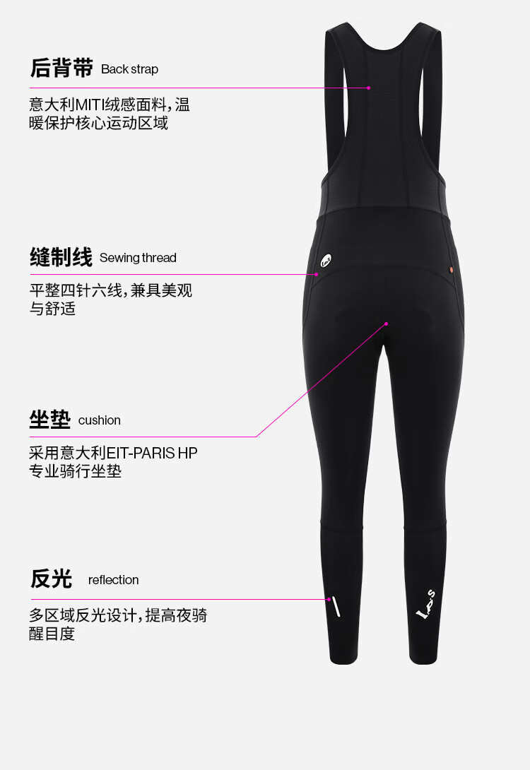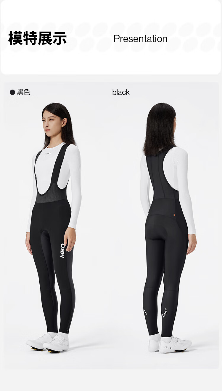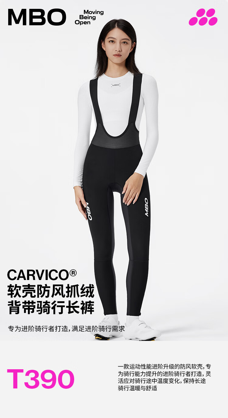 MBO CARVICO® 女子冬季软壳防风抓绒背带骑行长裤 T390 双箭头 黑色 S