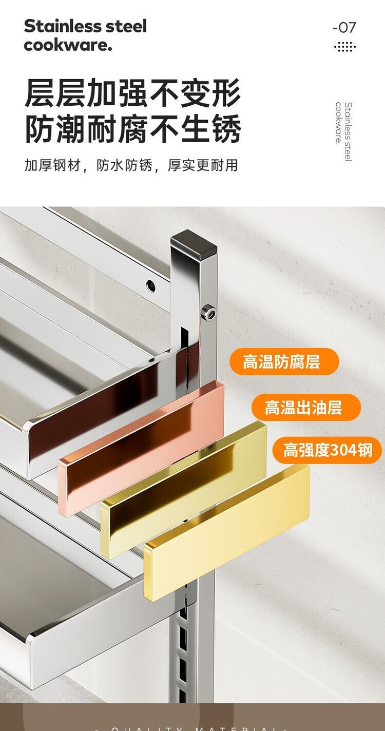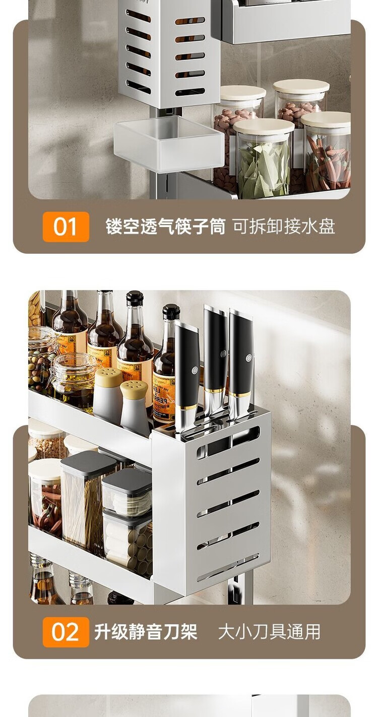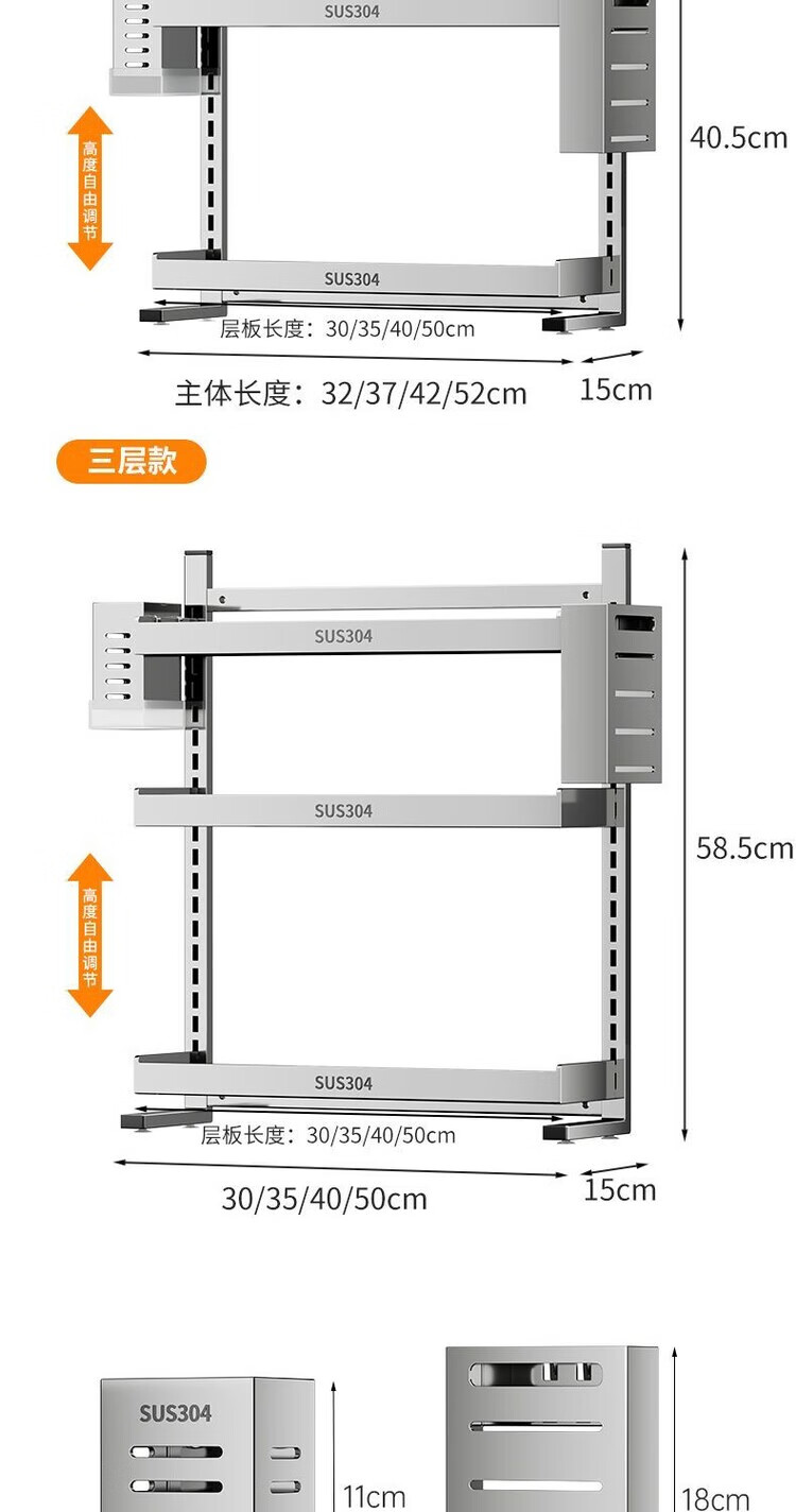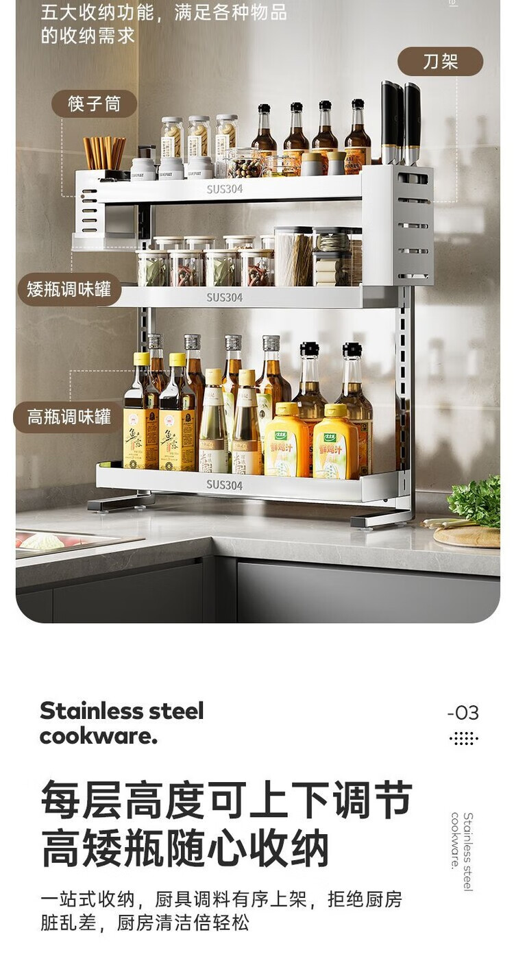 简漾新品304加粗不锈钢厨房调料置物架多功能油盐酱醋收纳壁挂免打孔 两层32+送4勾