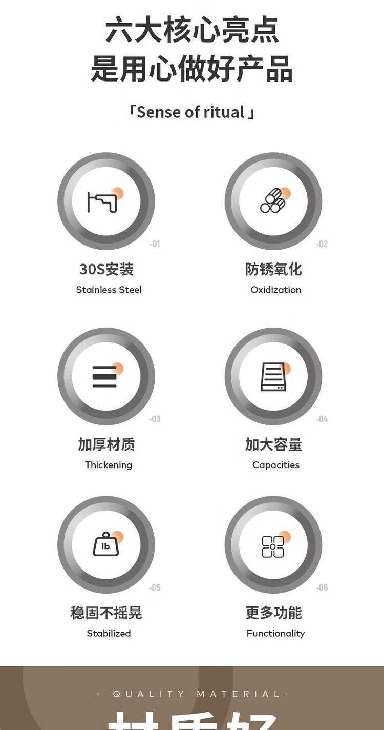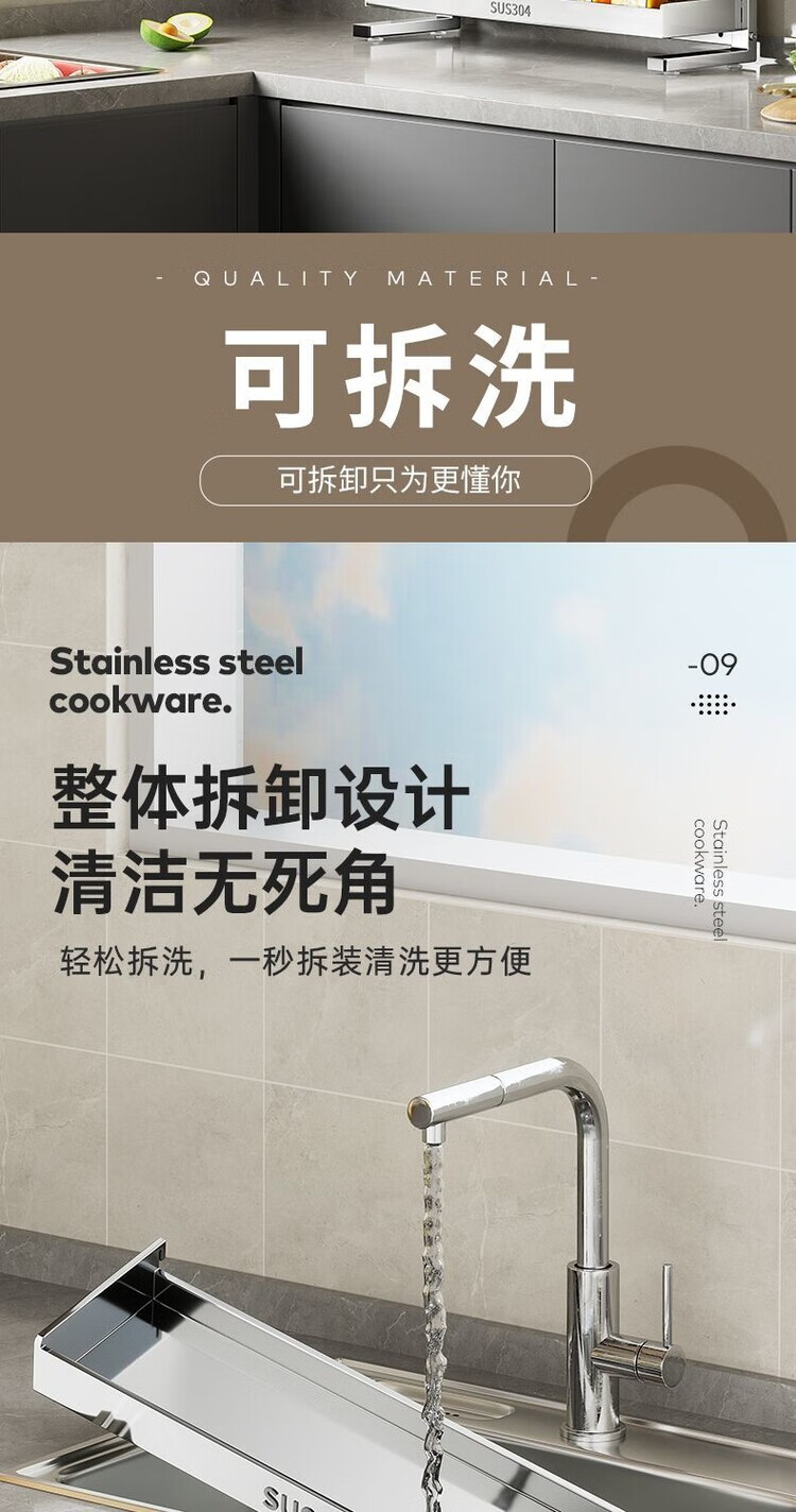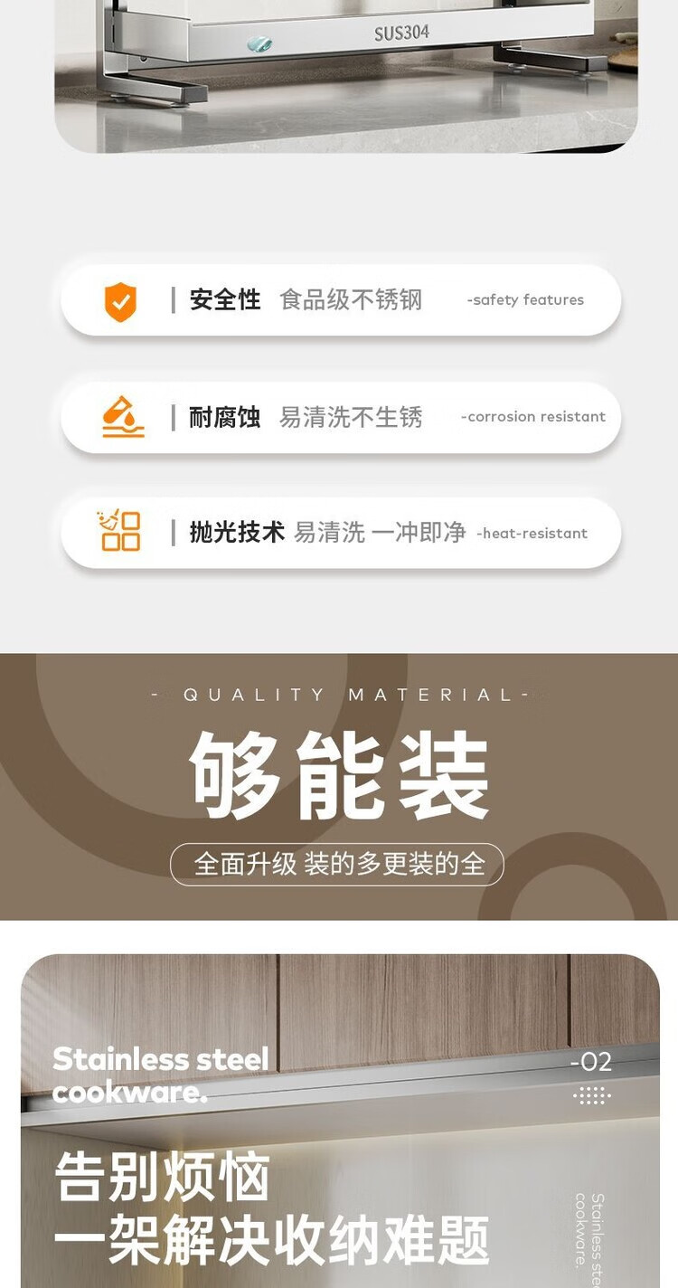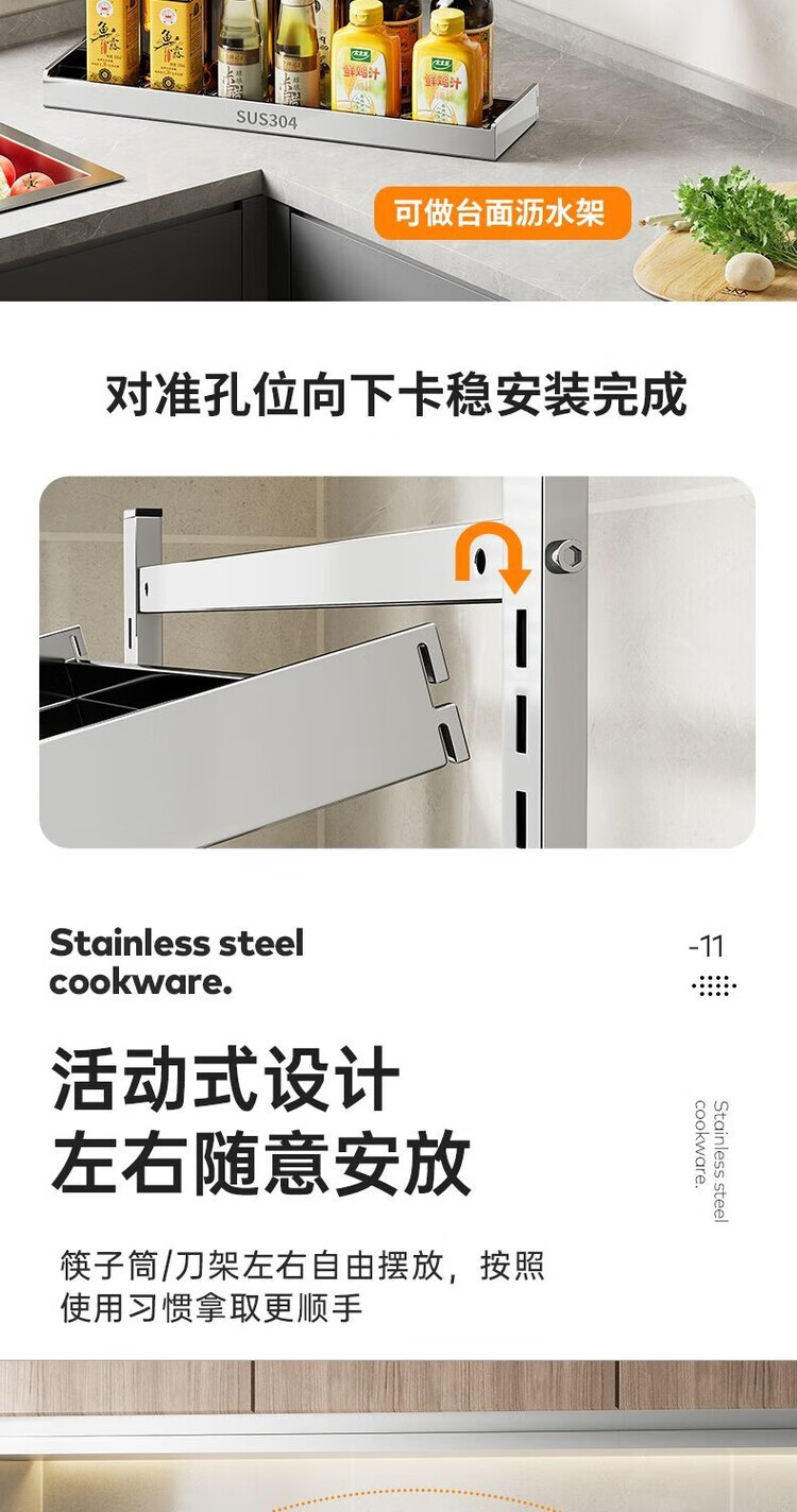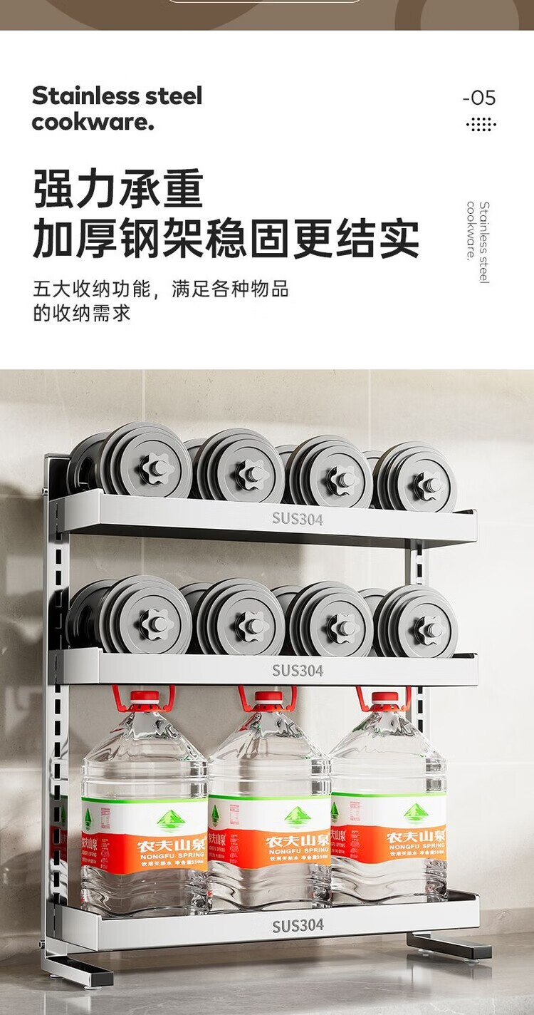 简漾新品304加粗不锈钢厨房调料置物架多功能油盐酱醋收纳壁挂免打孔 两层32+送4勾