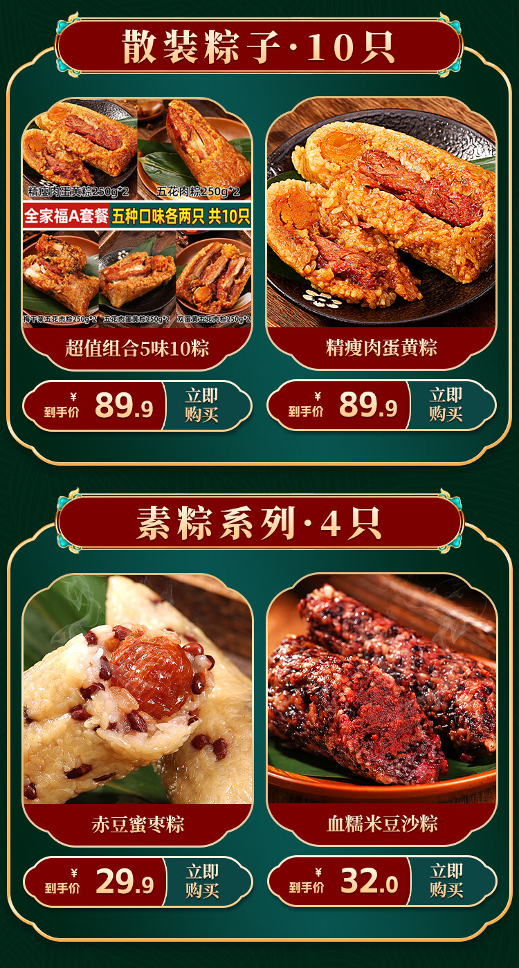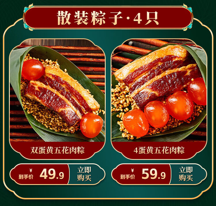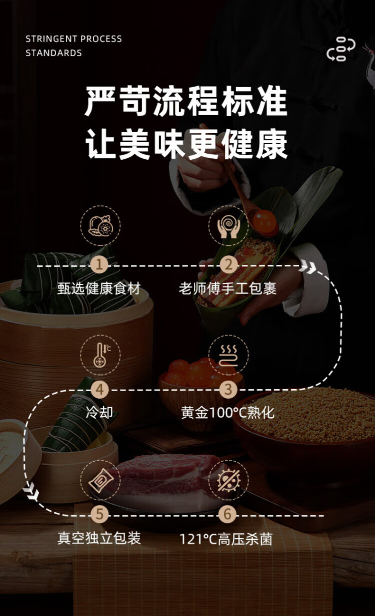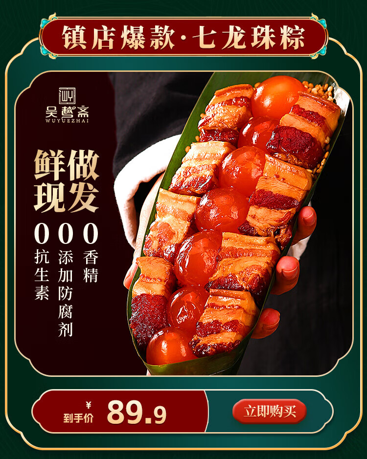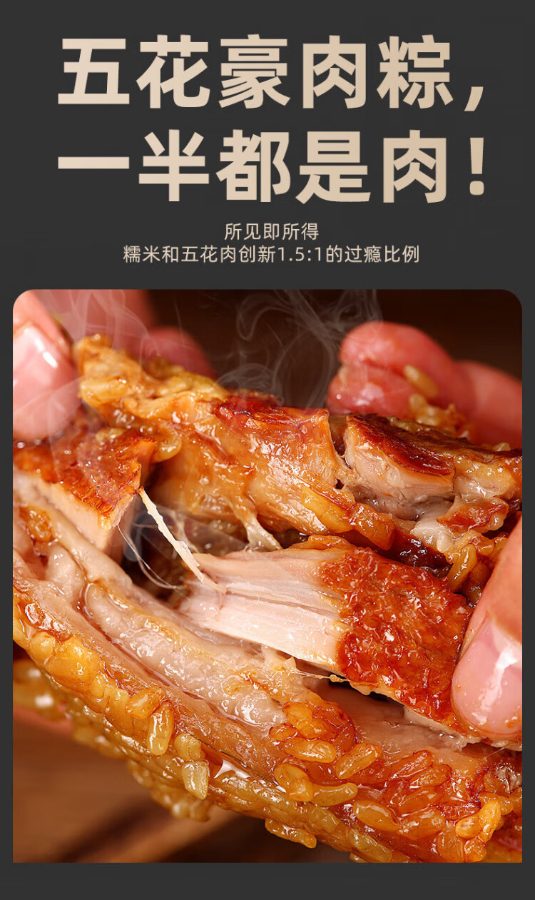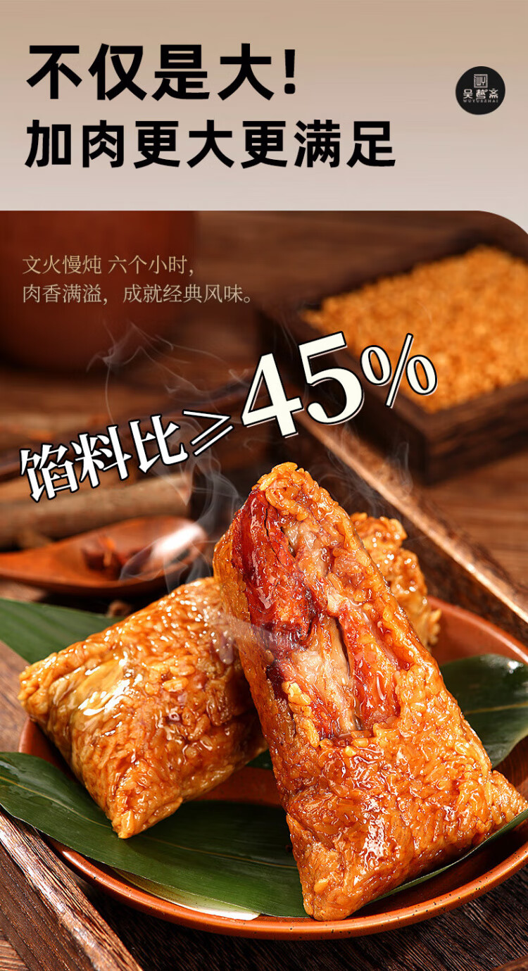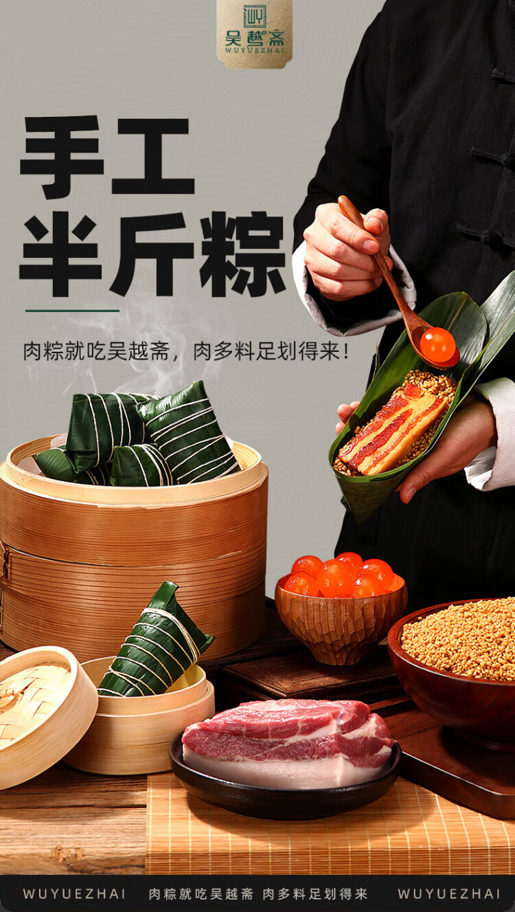 吴越斋【爆款】粽子嘉兴口味五花肉/蛋黄肉粽手工营养早餐半斤大肉粽 【经典五花肉粽6袋】1500g