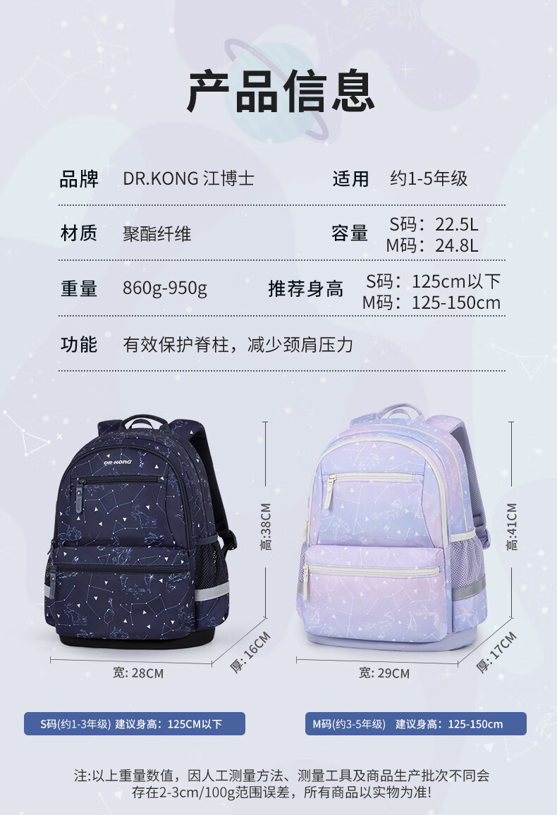 江博士(DR·KONG)小学生书包1-3年级护脊减负儿童背包男礼物大容量轻便双肩包减压