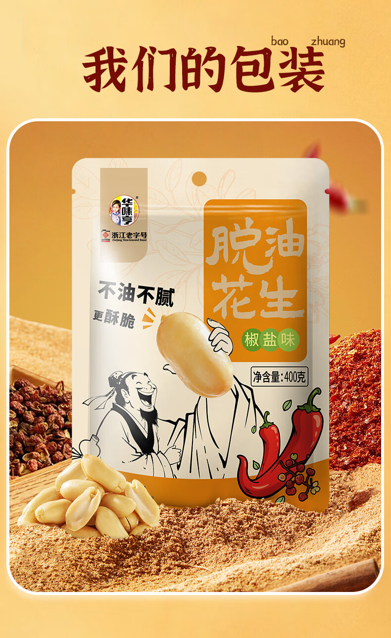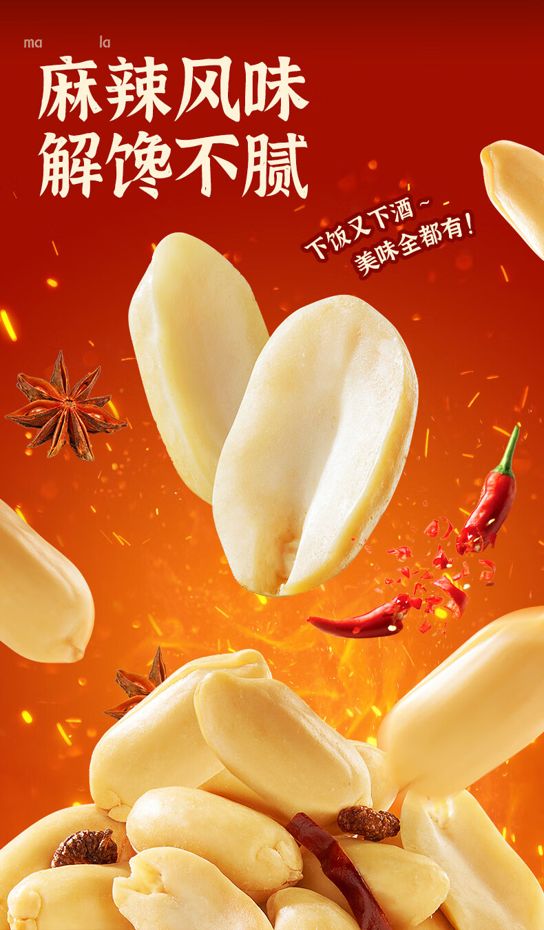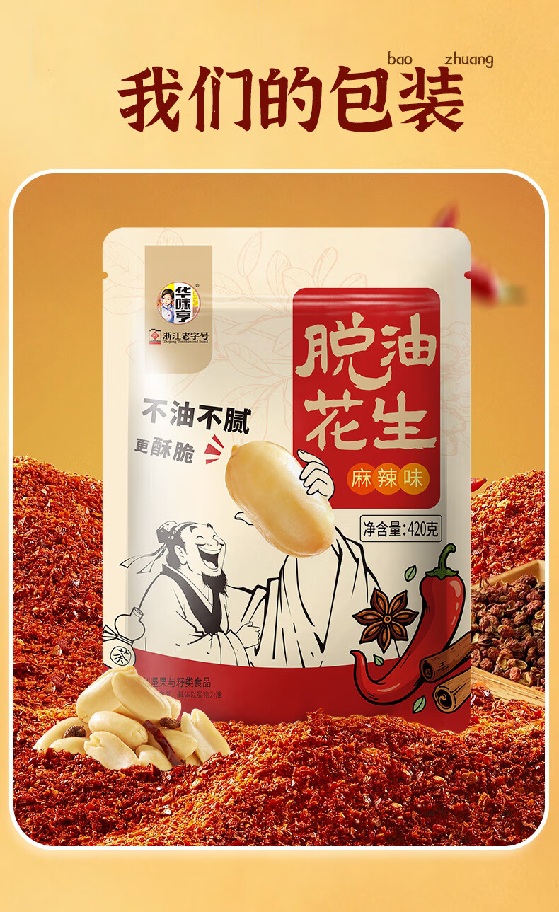 华味亨脱油花生420g/袋 麻辣味熟花生米每日坚果小吃休闲零食下酒菜 【粒大酥脆】麻辣花生420g