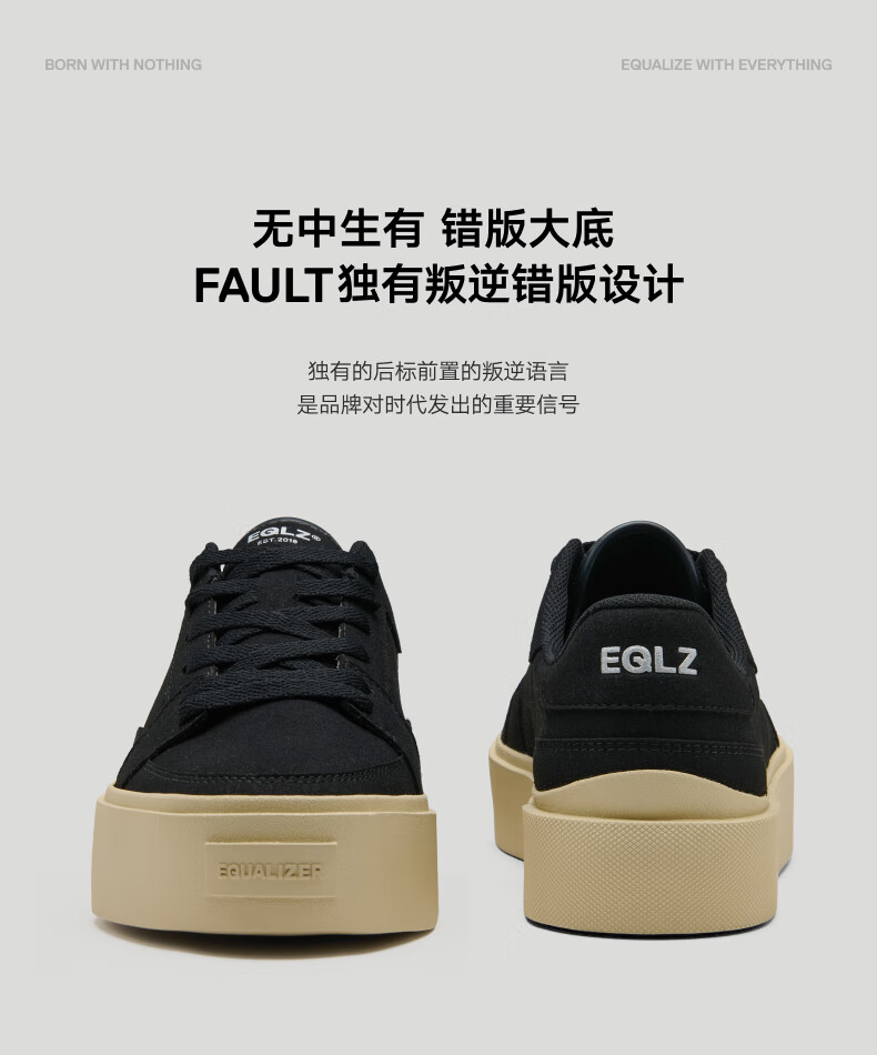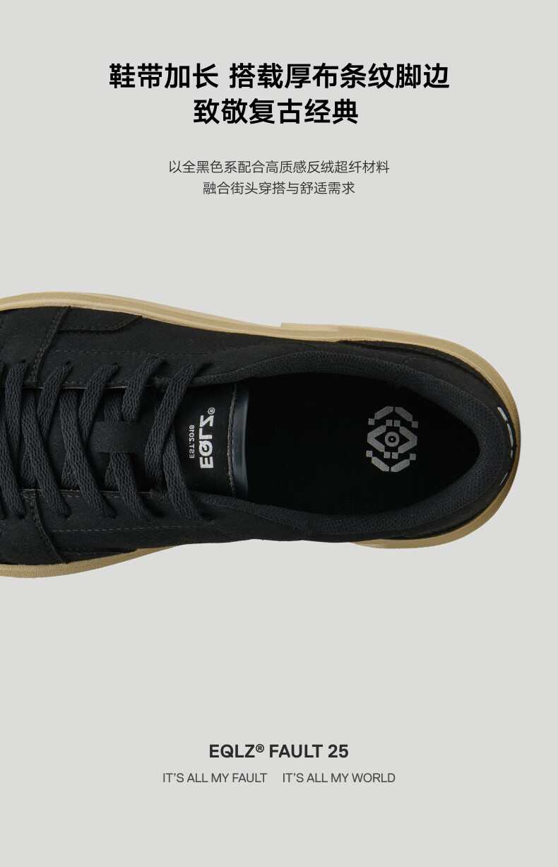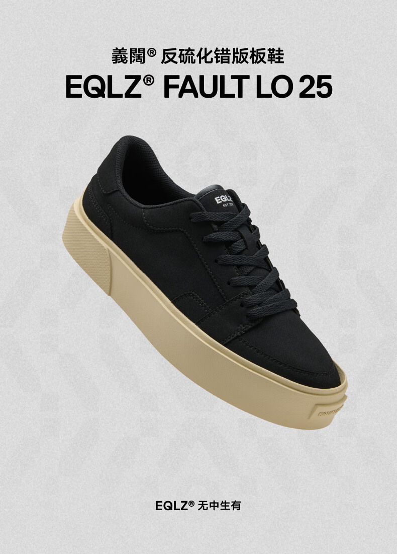 EQLZ官方 FAULT 25 低帮反硫化错版鞋板鞋男款黑色休闲鞋无中生有 幽灵黑 43