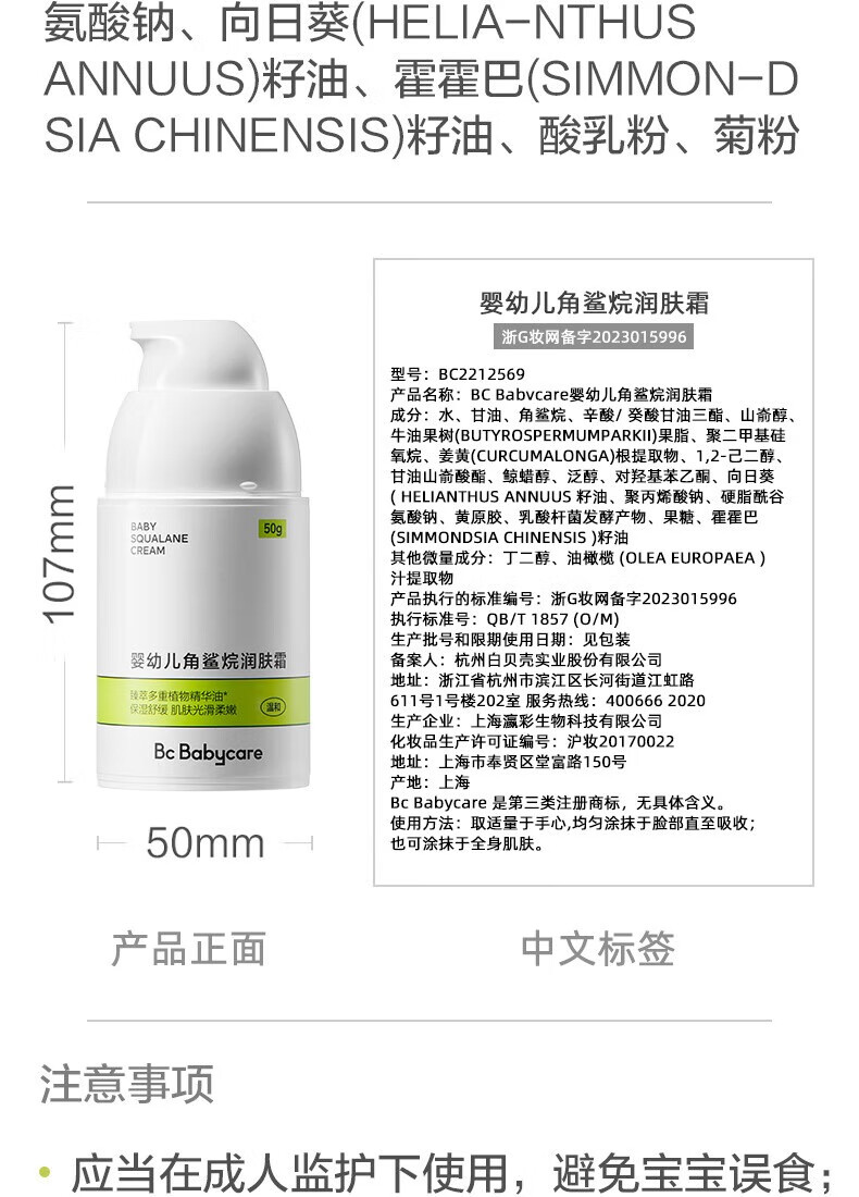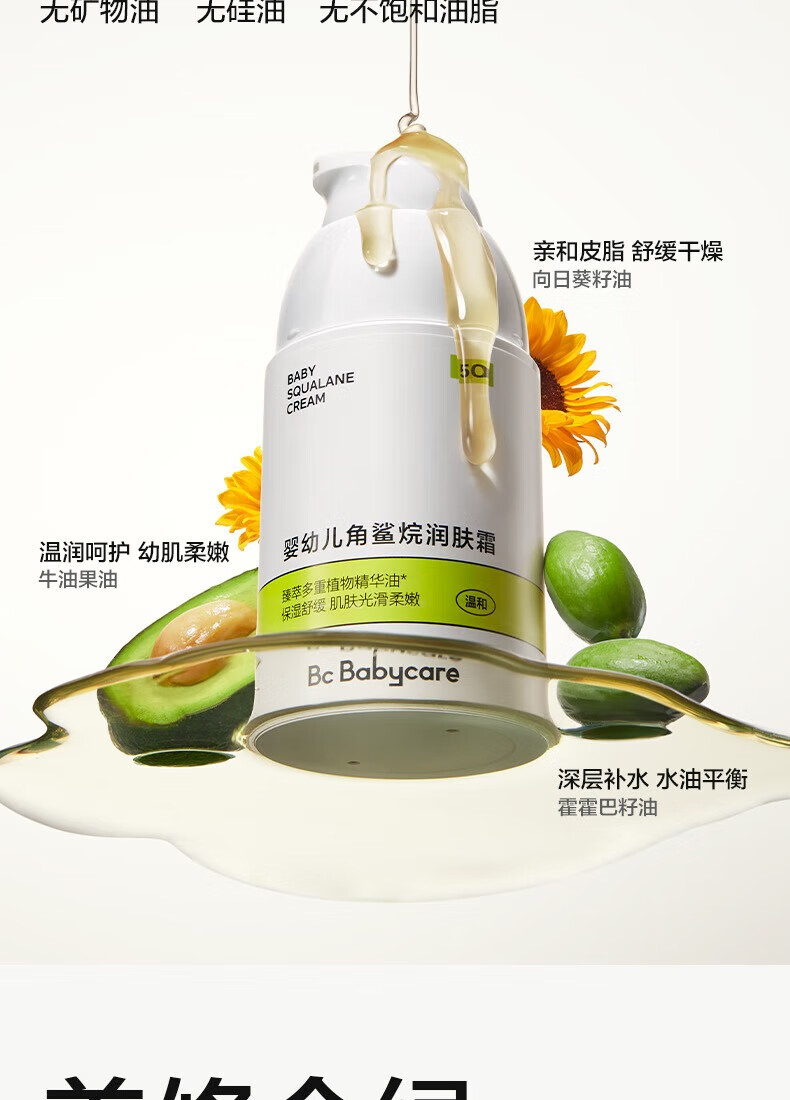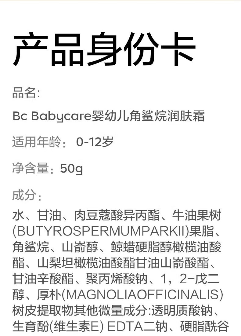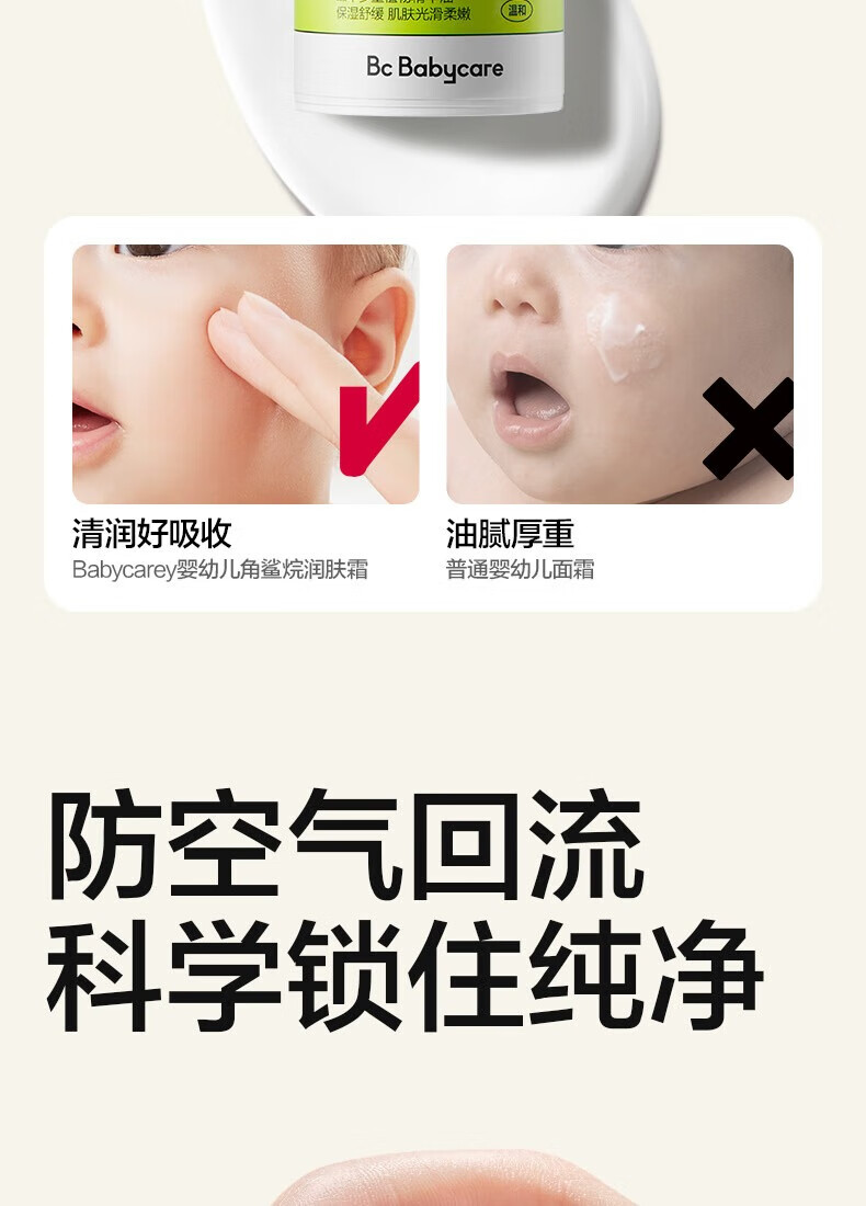 bc babycare幼朴山茶角鲨烷儿童面霜 宝宝滋润补水护肤身体乳 婴儿擦脸润肤霜 角鲨烷面霜 50ml 2瓶