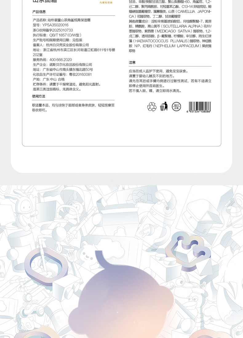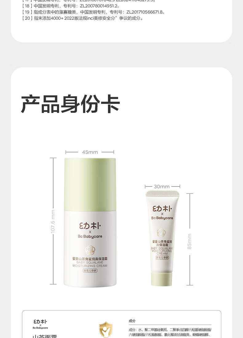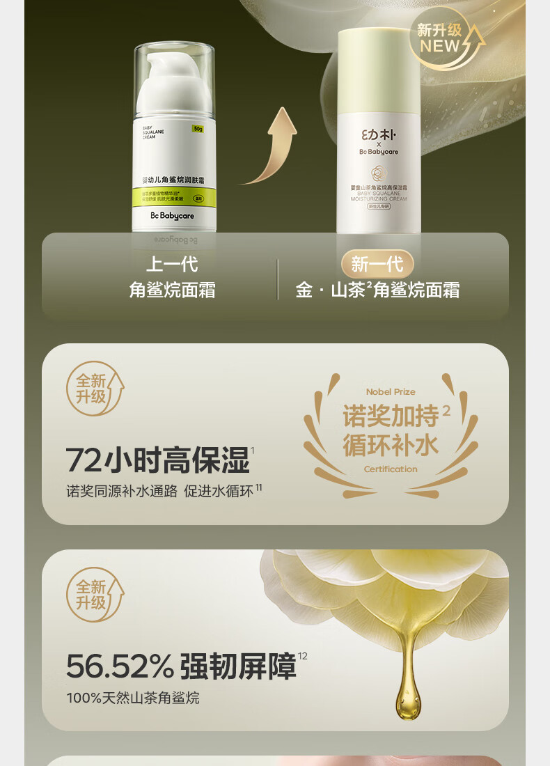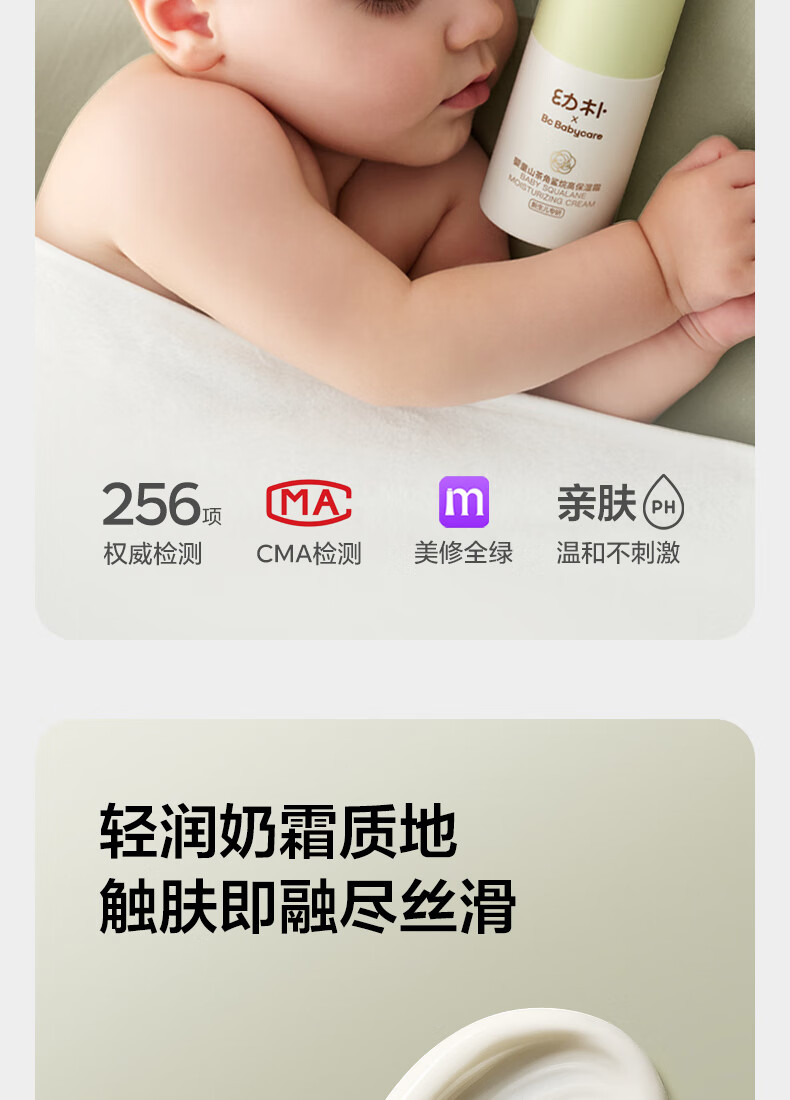 bc babycare幼朴山茶角鲨烷儿童面霜 宝宝滋润补水护肤身体乳 婴儿擦脸润肤霜 角鲨烷面霜 50ml 2瓶
