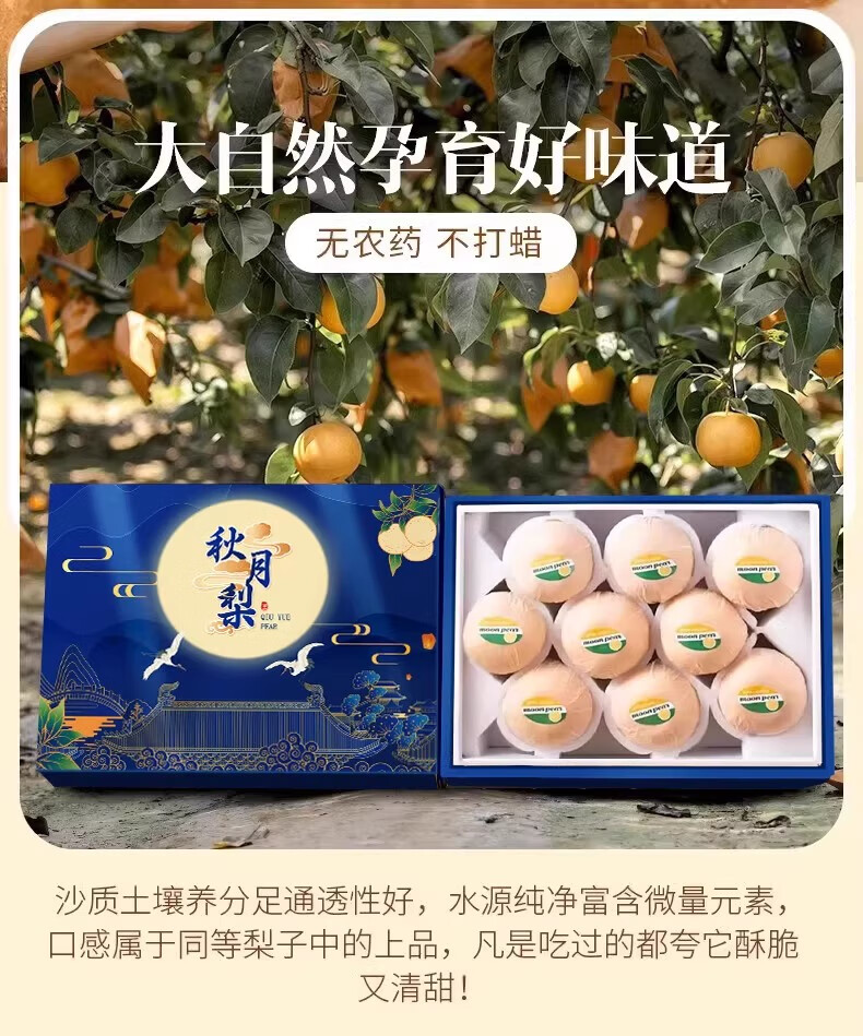 果跃霖山东莱阳秋月梨子冰糖丰水雪梨脆甜现摘新鲜水果中秋礼盒 5斤甄选装 【单果7-12枚】净重4.5斤 A+级30年老树果【清甜脆爽】