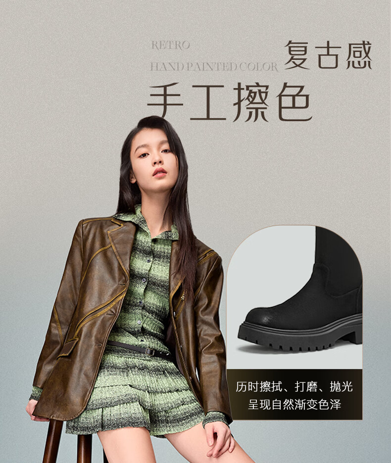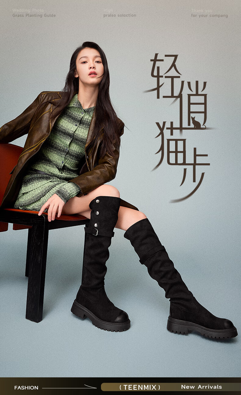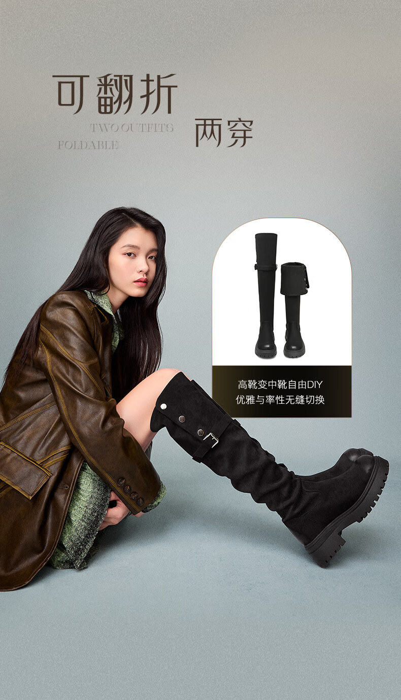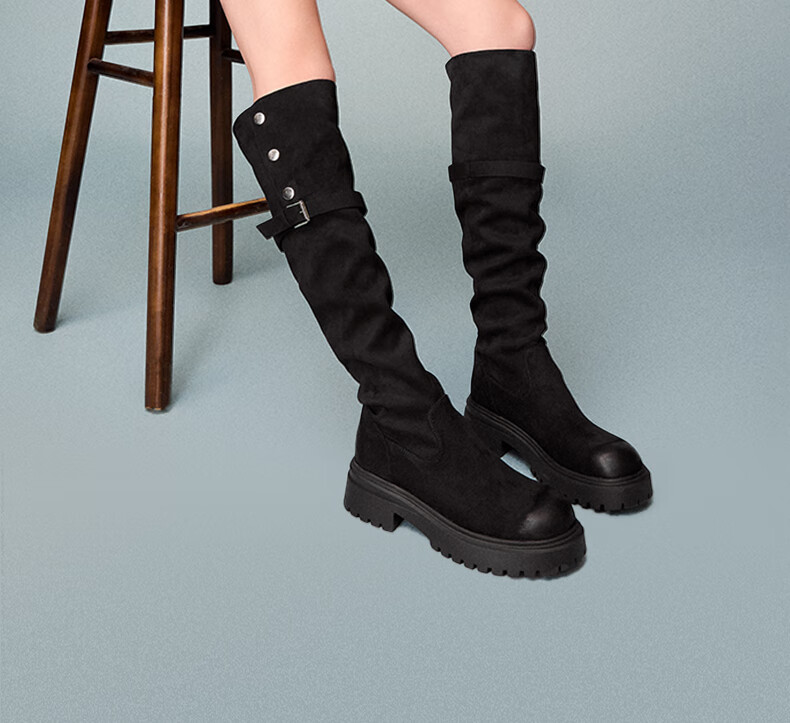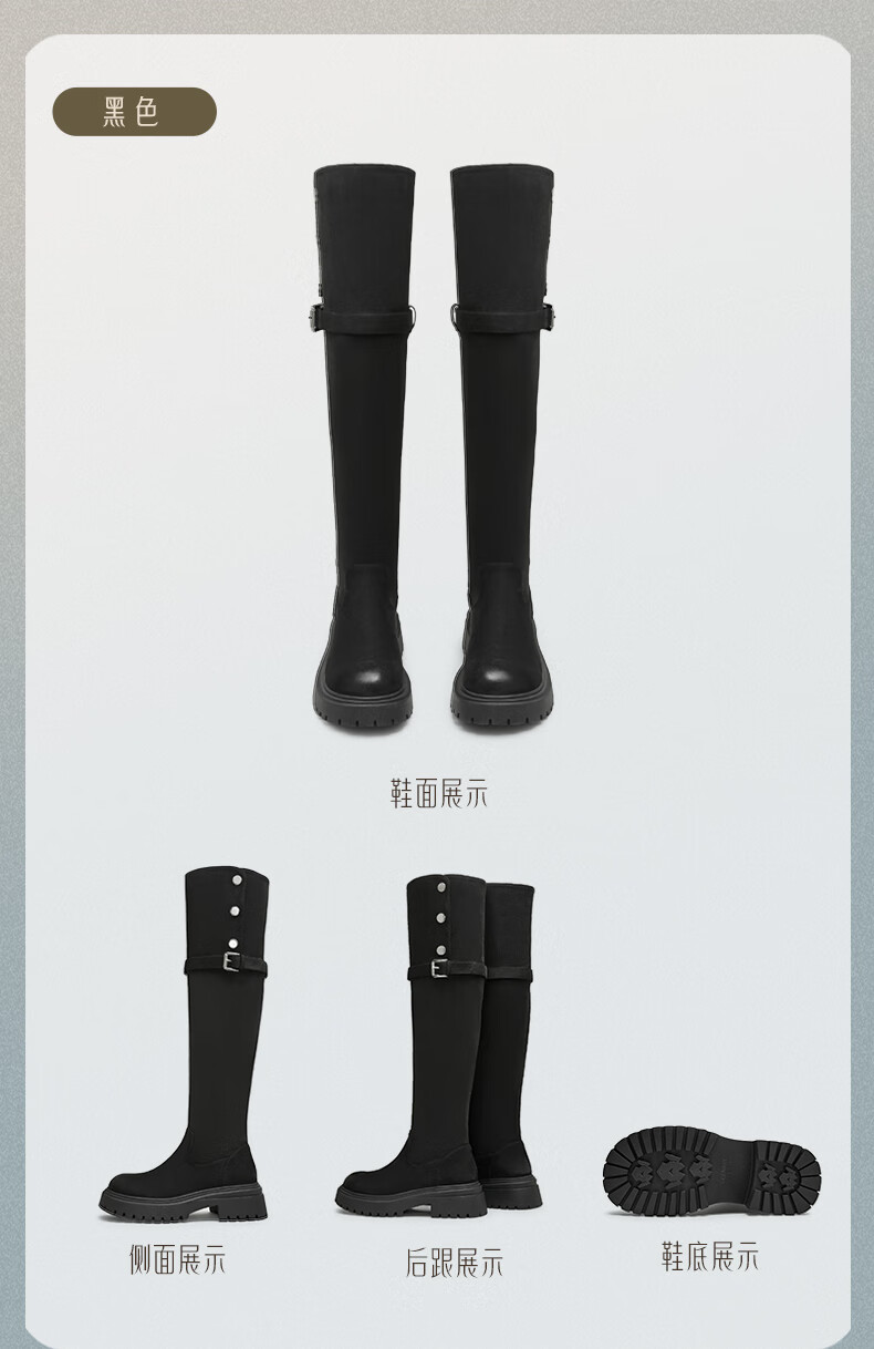 天美意长靴厚底显瘦过膝高靴女弹力靴时尚女鞋