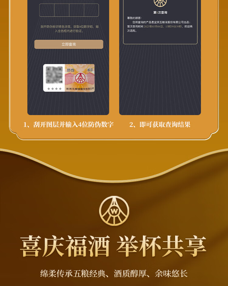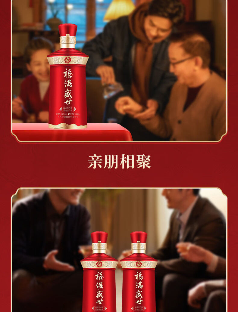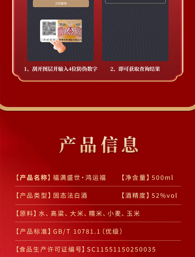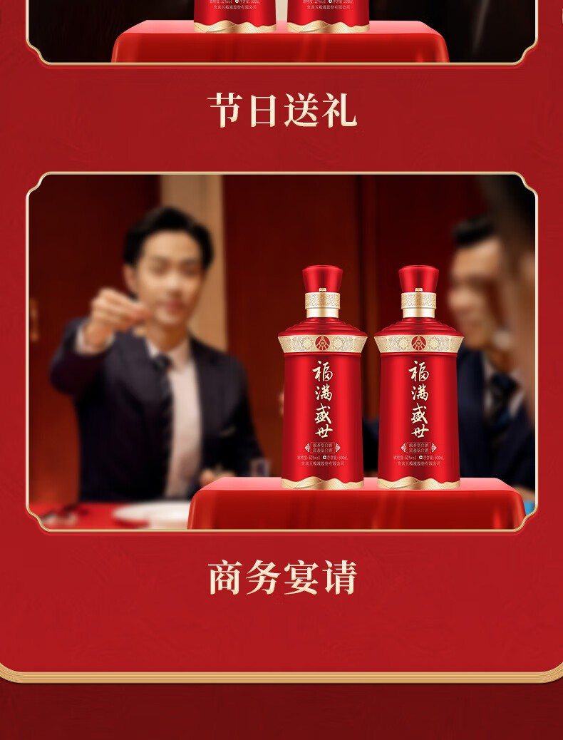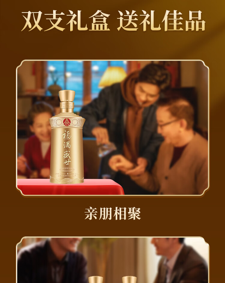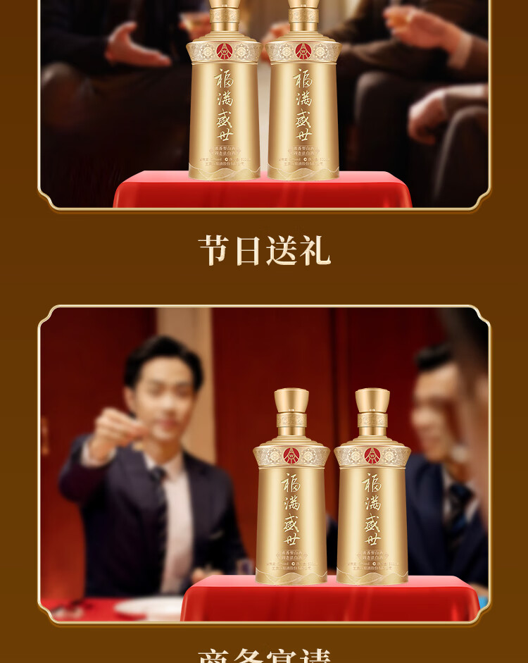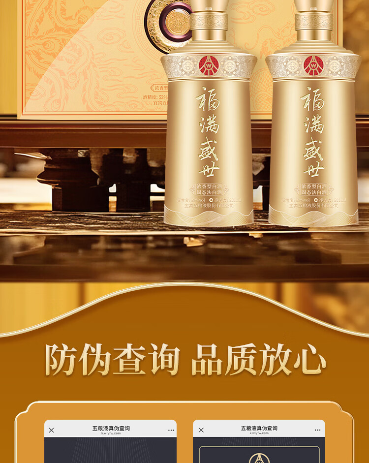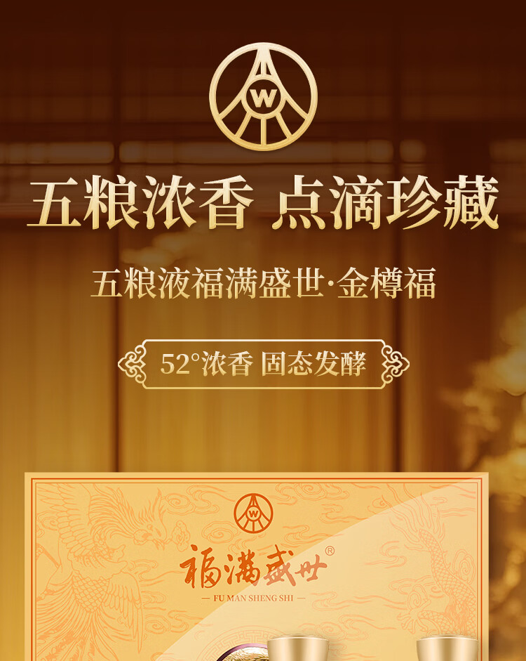 五粮液股份总厂生产 福满盛世酒 52度浓香型白酒 婚宴宴请 送礼礼品 52度 500mL 2瓶 礼盒装(鸿运福)