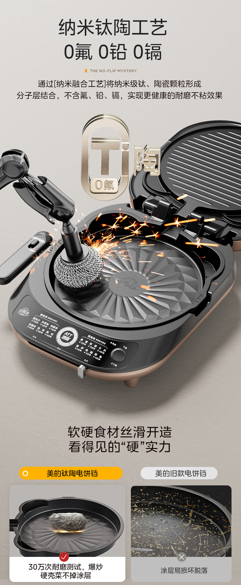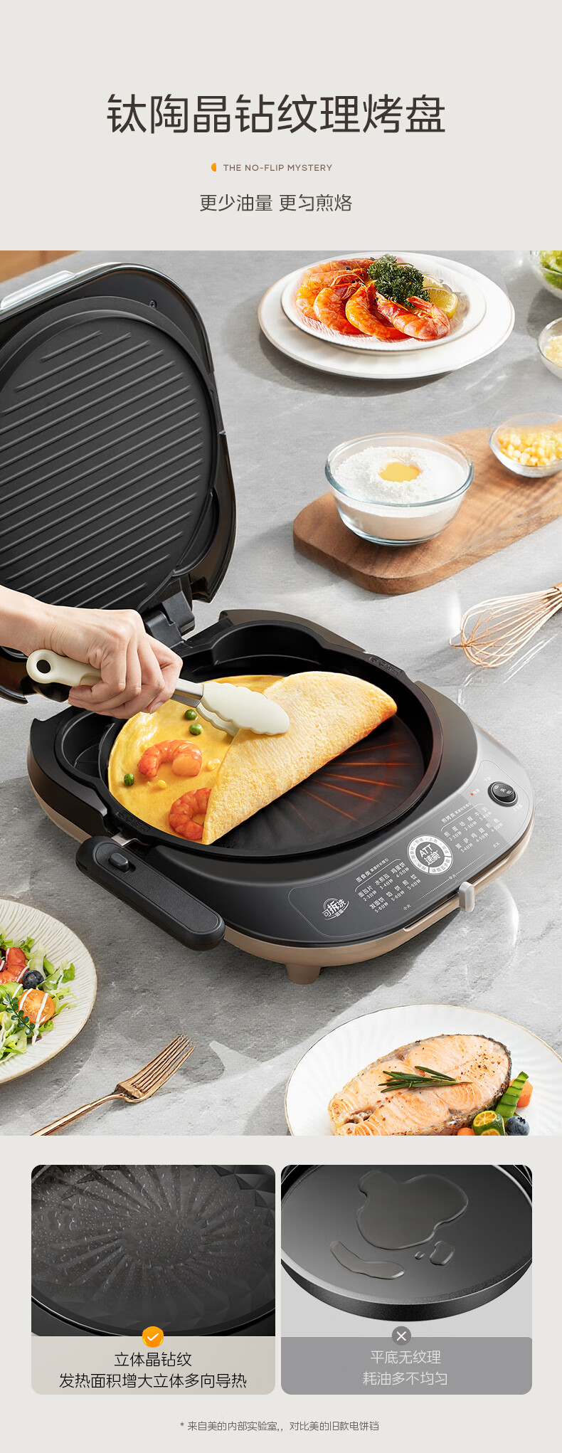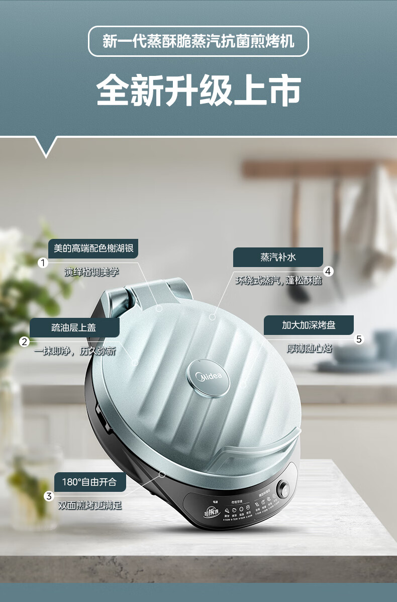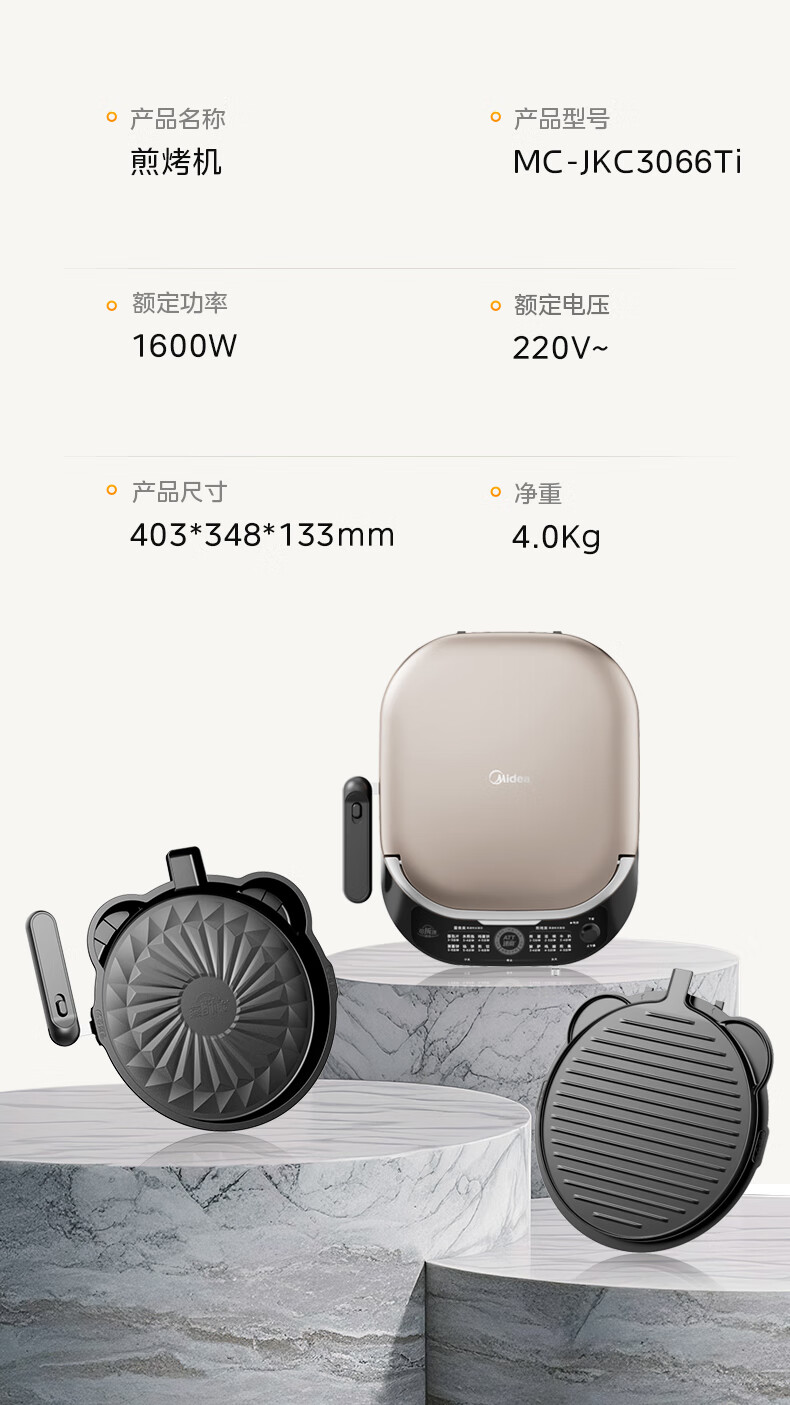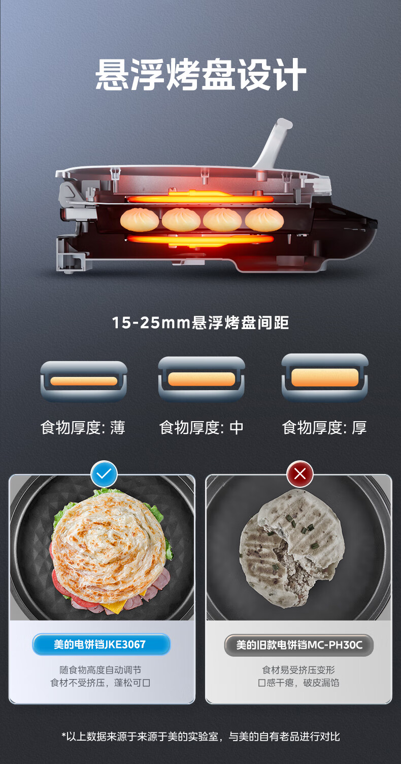 美的(Midea)电饼铛家用双面加热加深大火力上下双盘可拆洗抗菌不粘煎烙饼锅三明治早餐机蒸汽薄饼煎烤机 【31mm加深盘】上下盘可拆洗JKC3066Ti