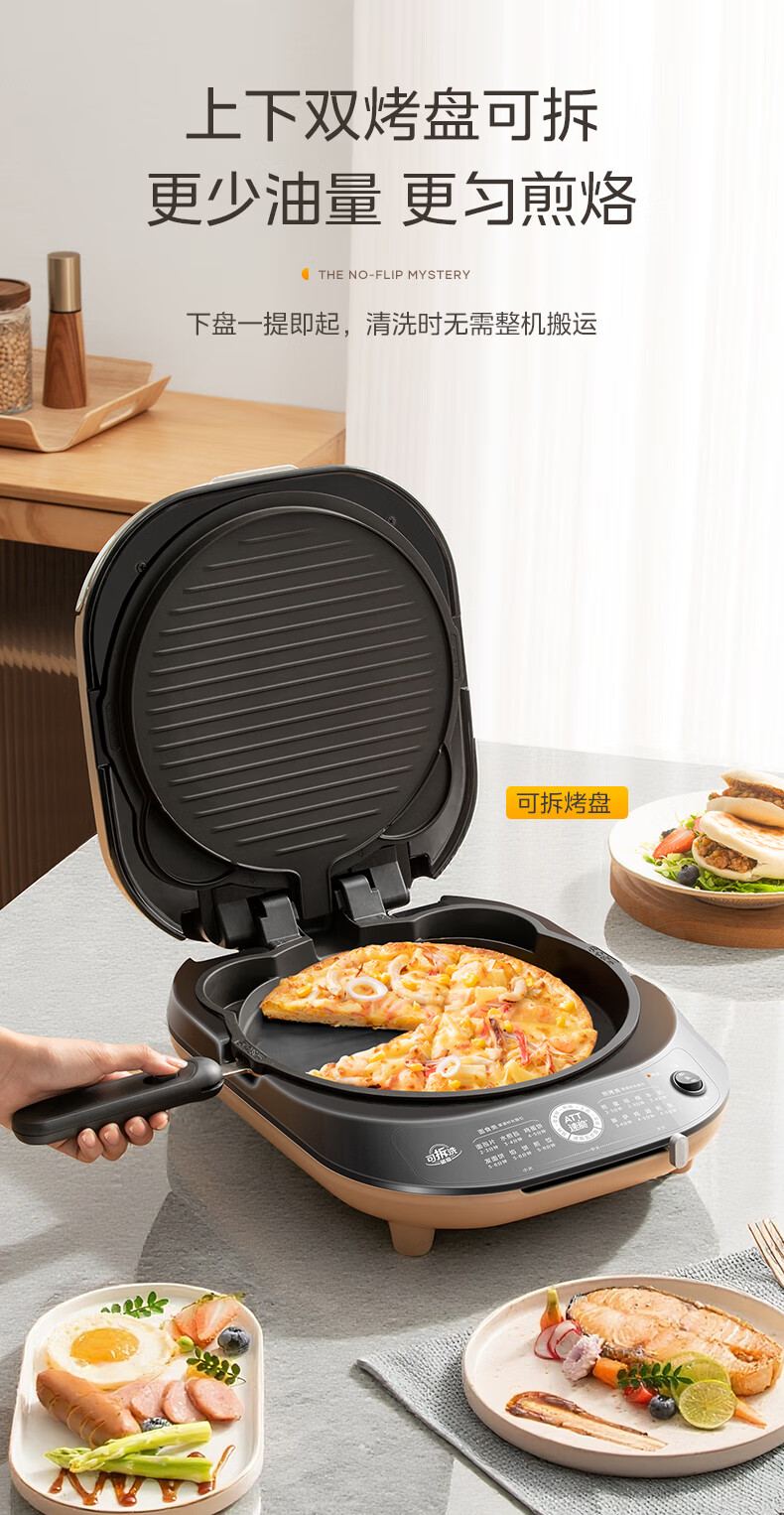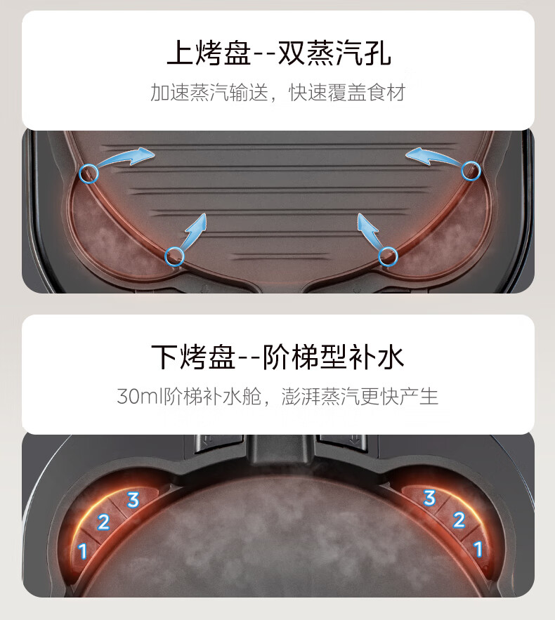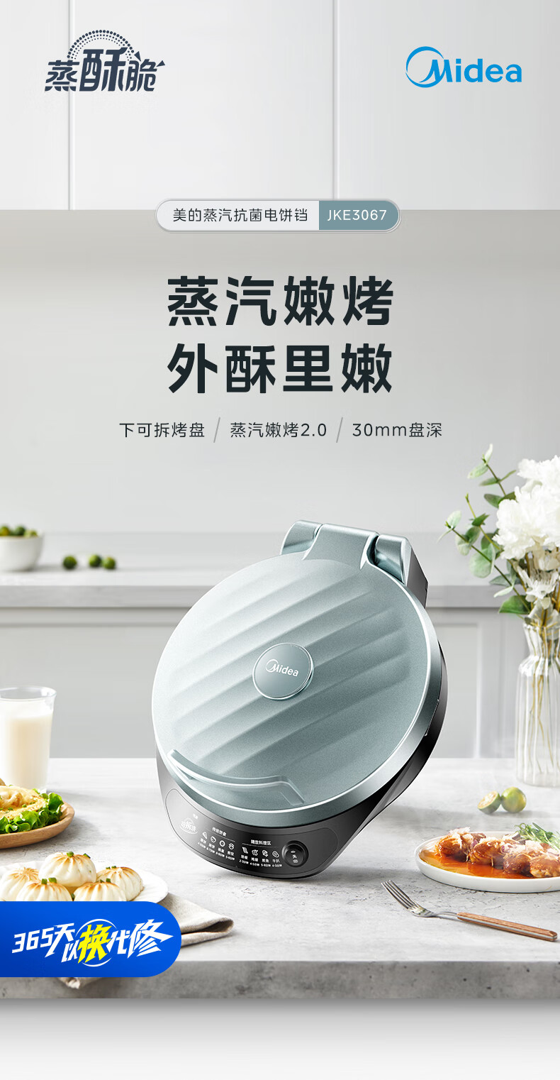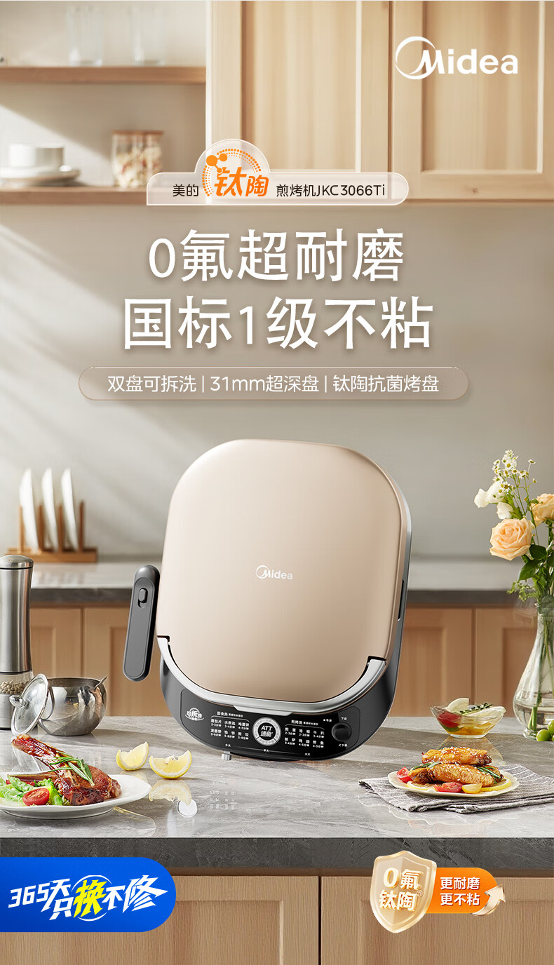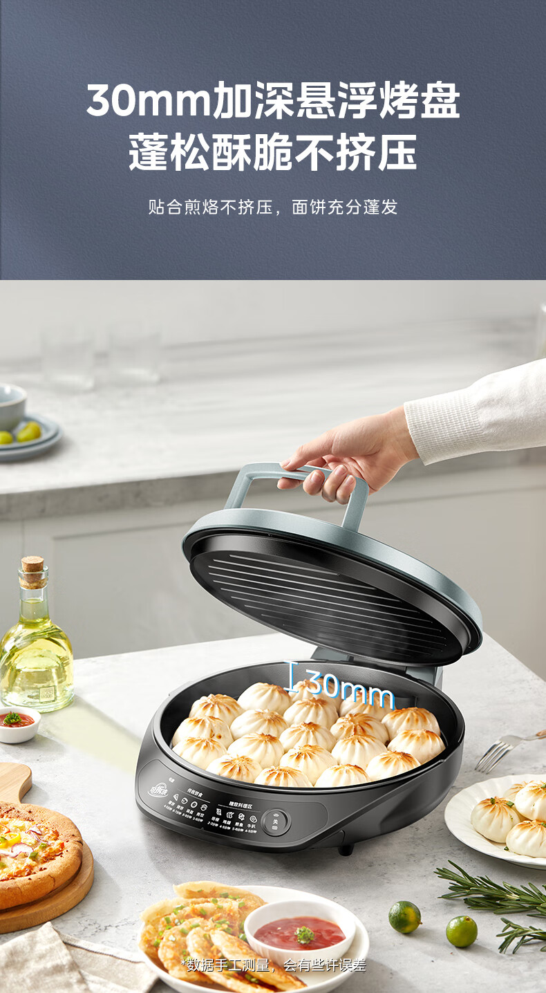 美的(Midea)电饼铛家用双面加热加深大火力上下双盘可拆洗抗菌不粘煎烙饼锅三明治早餐机蒸汽薄饼煎烤机 【31mm加深盘】上下盘可拆洗JKC3066Ti