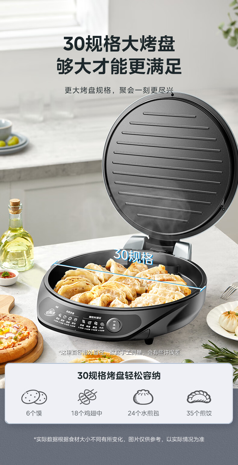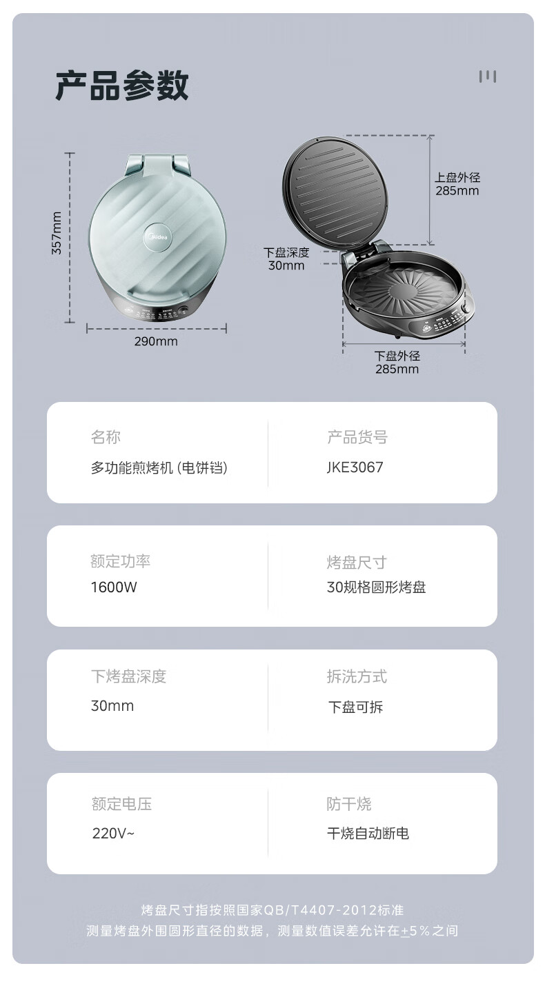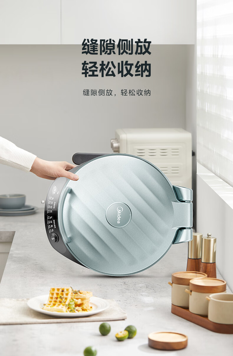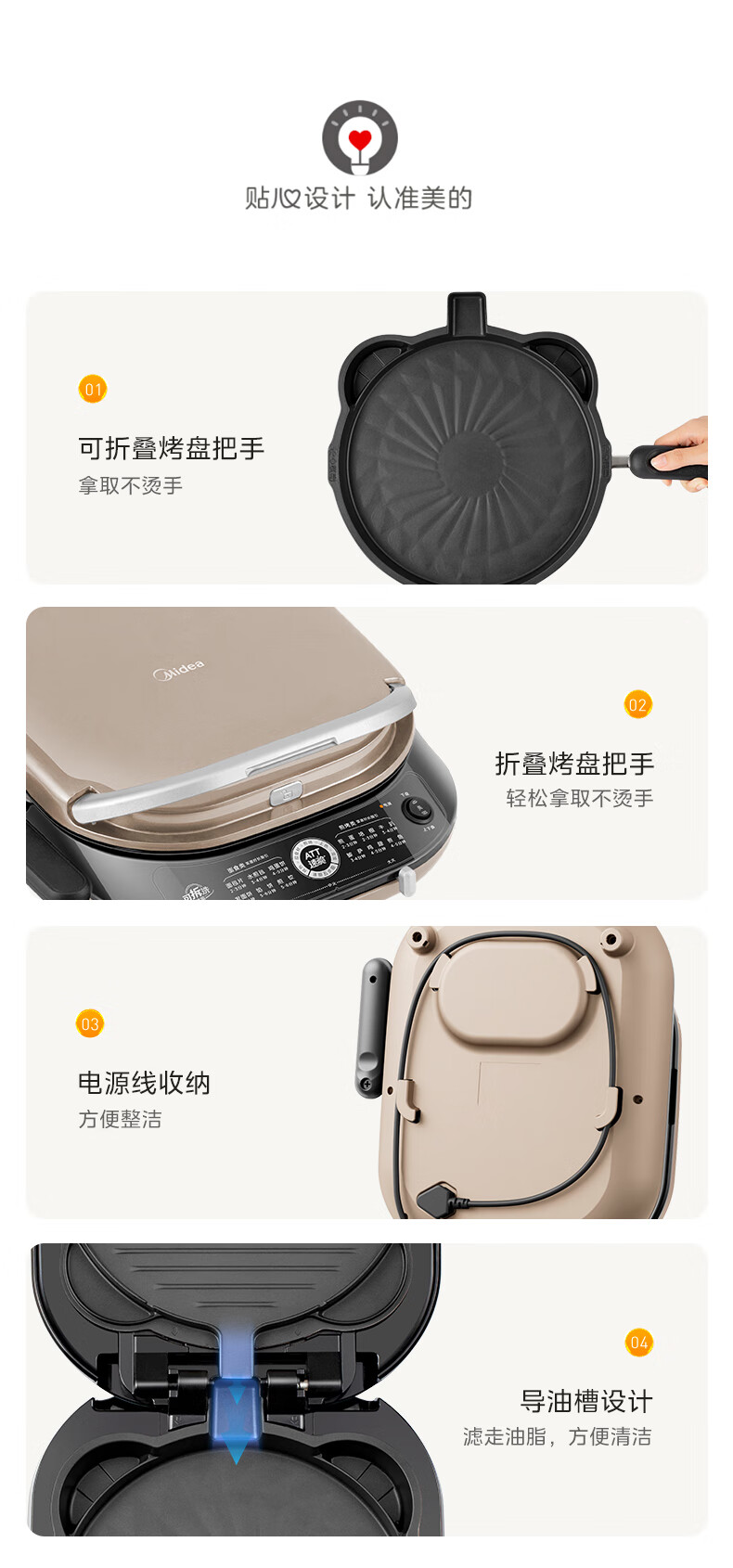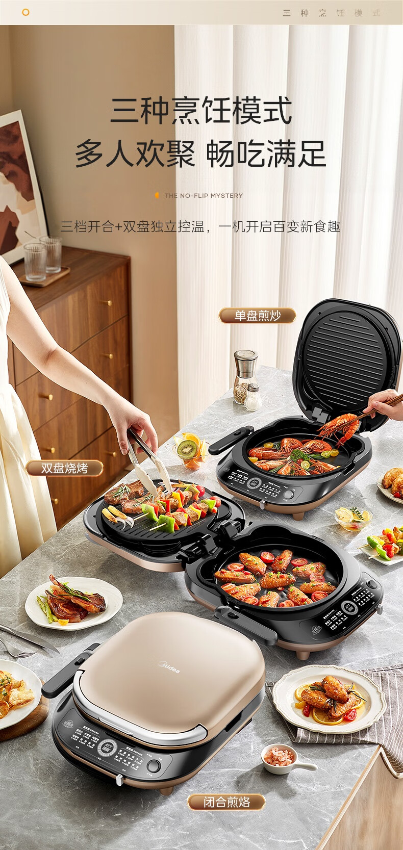 美的(Midea)电饼铛家用双面加热加深大火力上下双盘可拆洗抗菌不粘煎烙饼锅三明治早餐机蒸汽薄饼煎烤机 【31mm加深盘】上下盘可拆洗JKC3066Ti