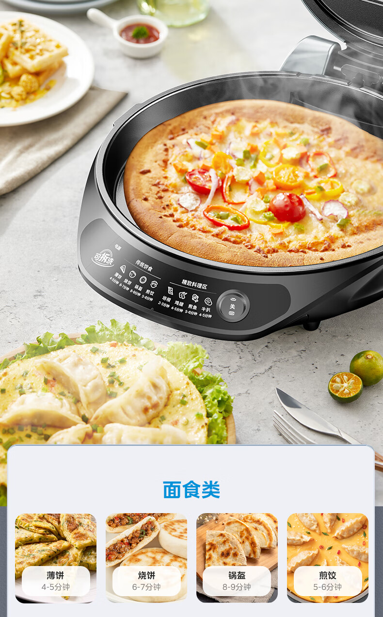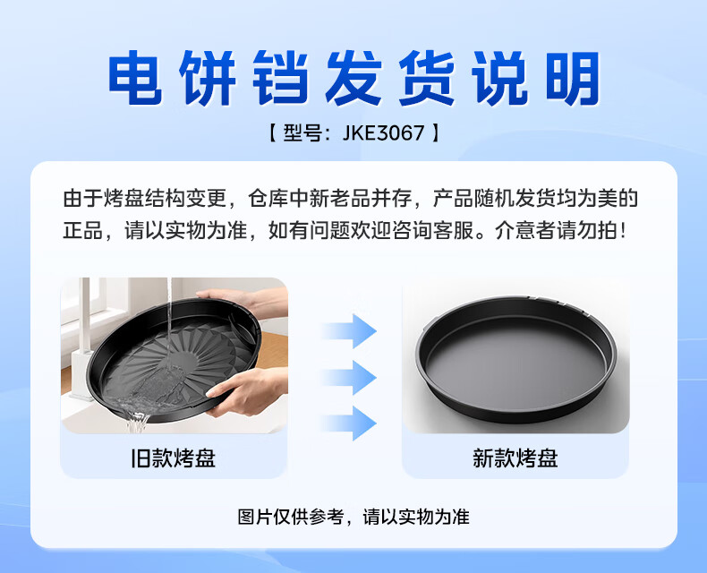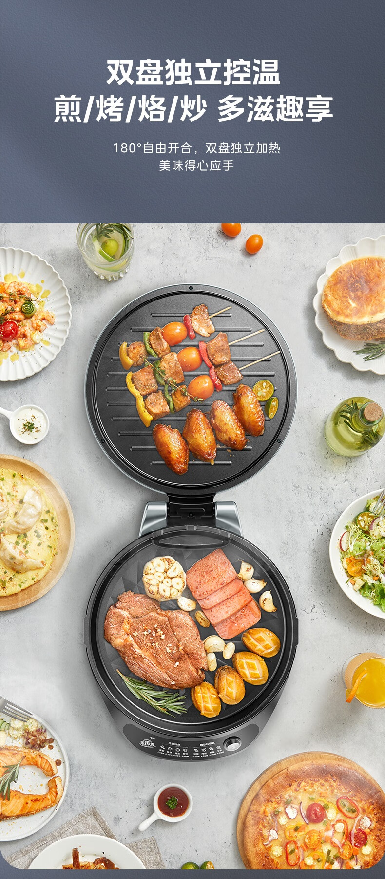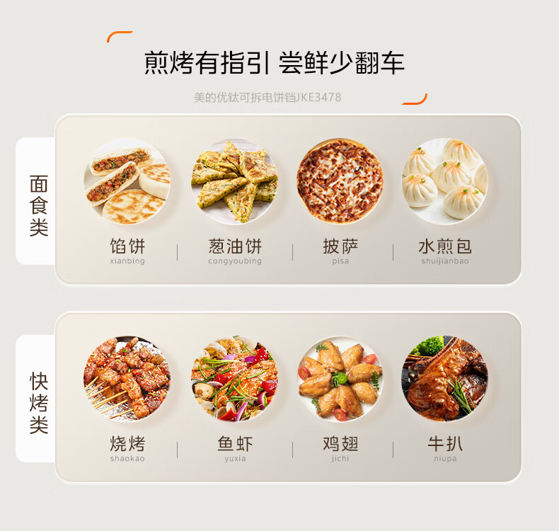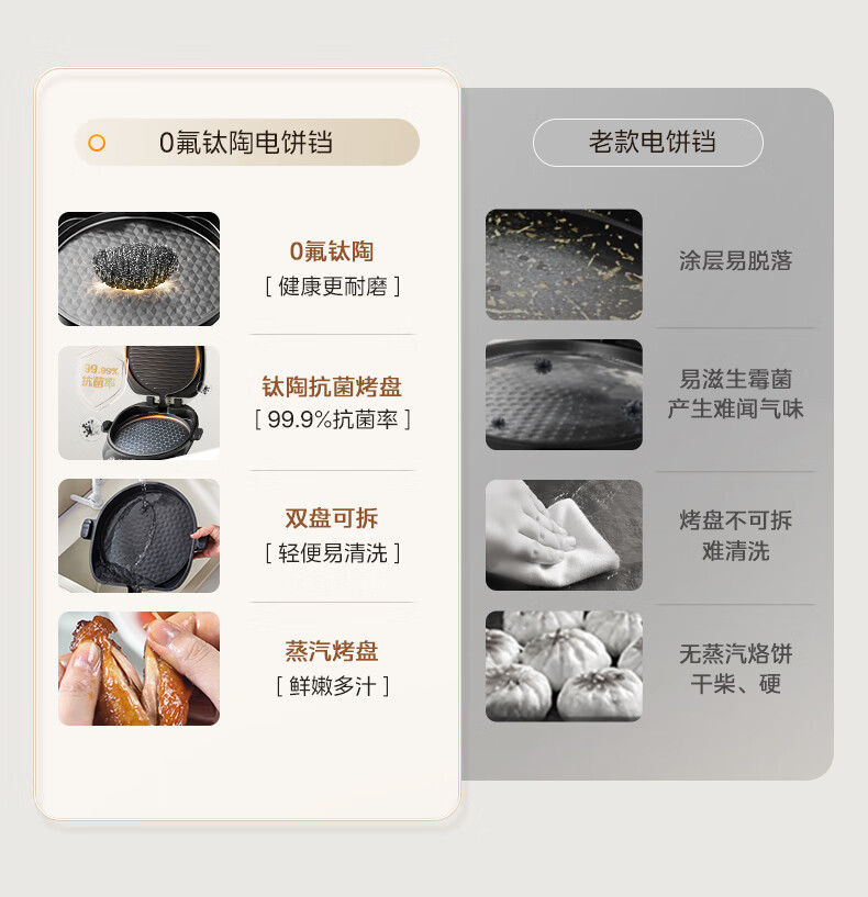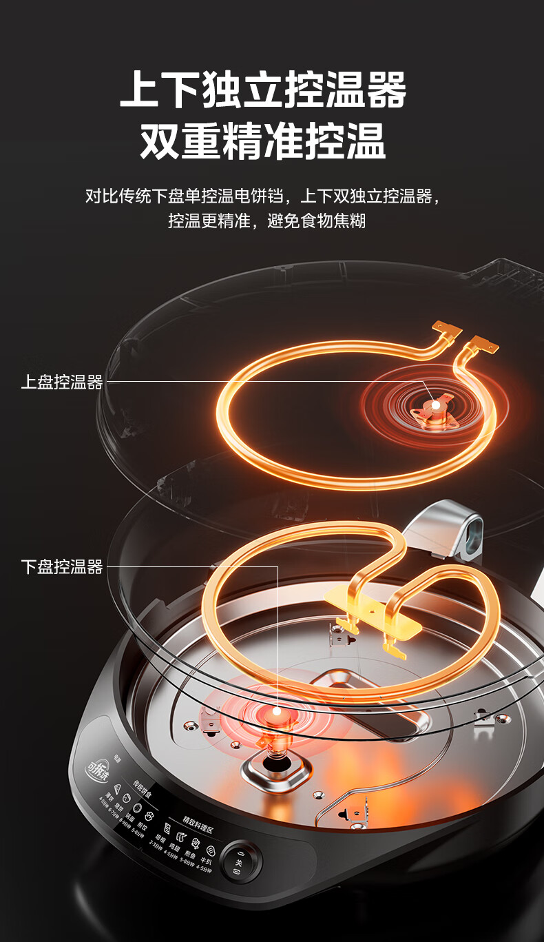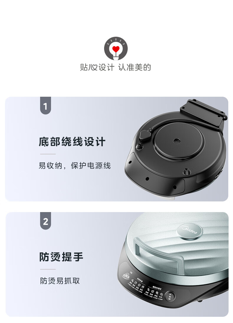 美的(Midea)电饼铛家用双面加热加深大火力上下双盘可拆洗抗菌不粘煎烙饼锅三明治早餐机蒸汽薄饼煎烤机 【31mm加深盘】上下盘可拆洗JKC3066Ti