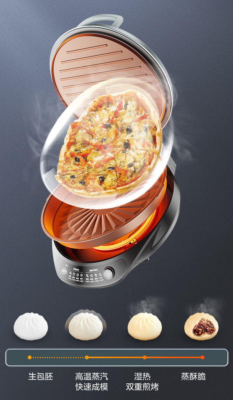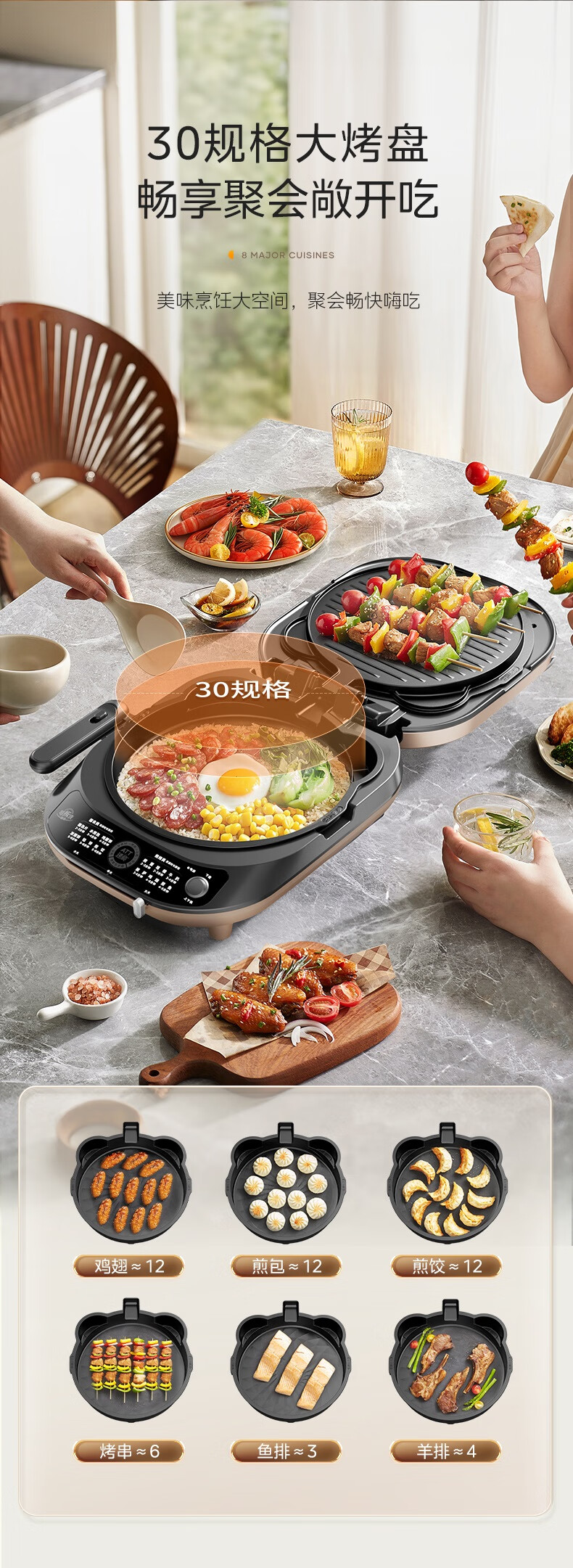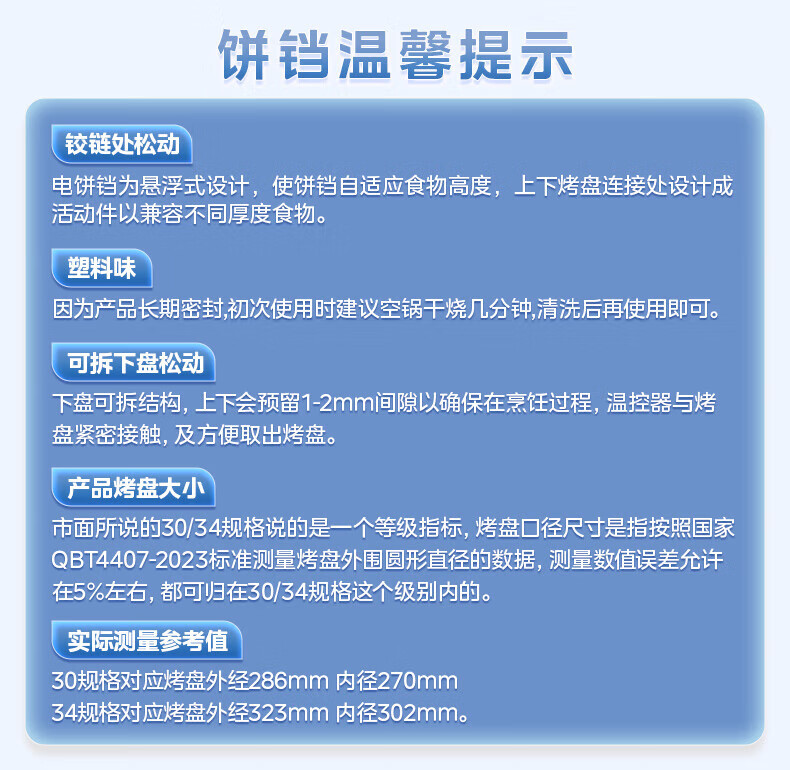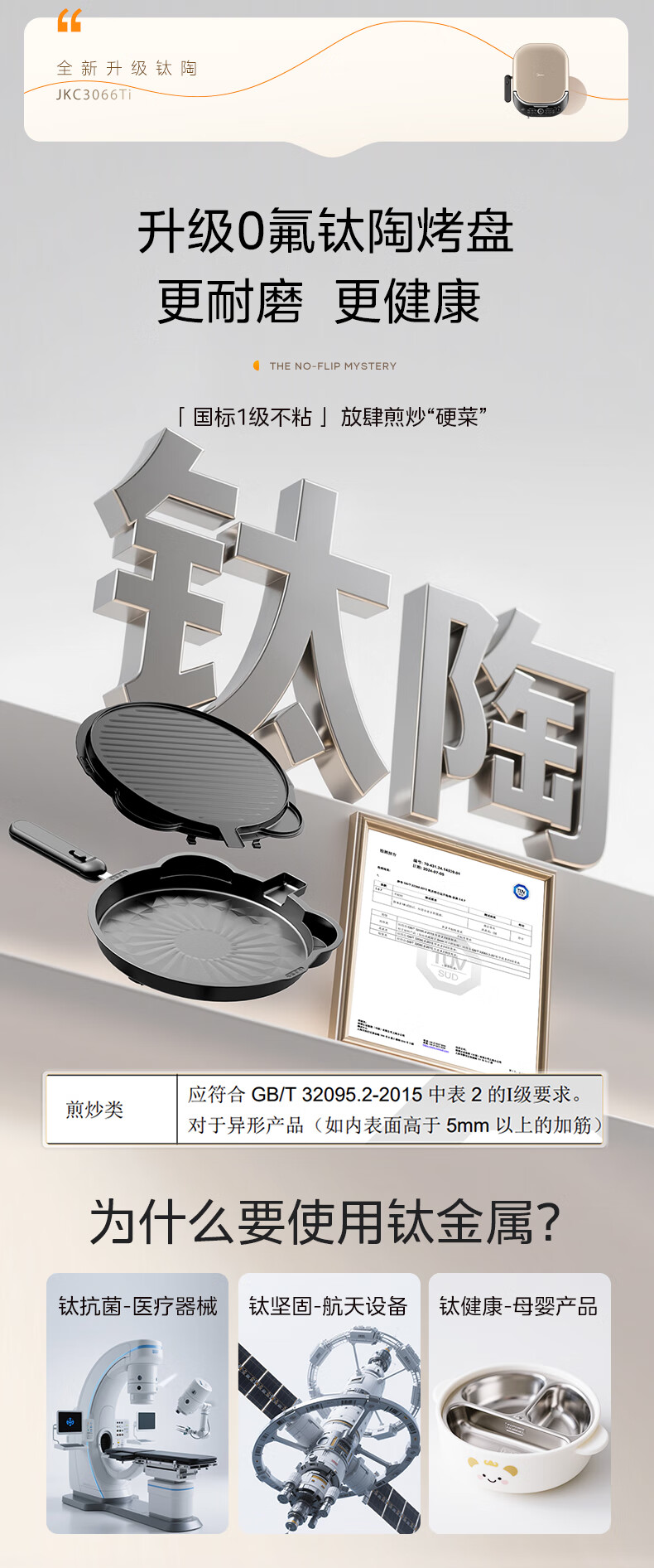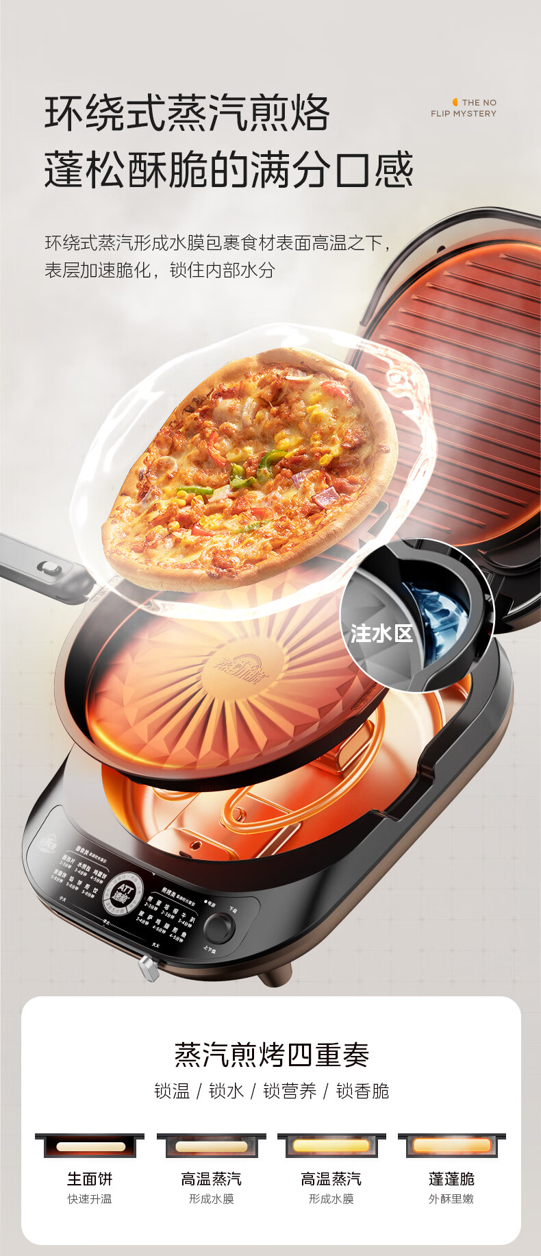 美的(Midea)电饼铛家用双面加热加深大火力上下双盘可拆洗抗菌不粘煎烙饼锅三明治早餐机蒸汽薄饼煎烤机 【31mm加深盘】上下盘可拆洗JKC3066Ti