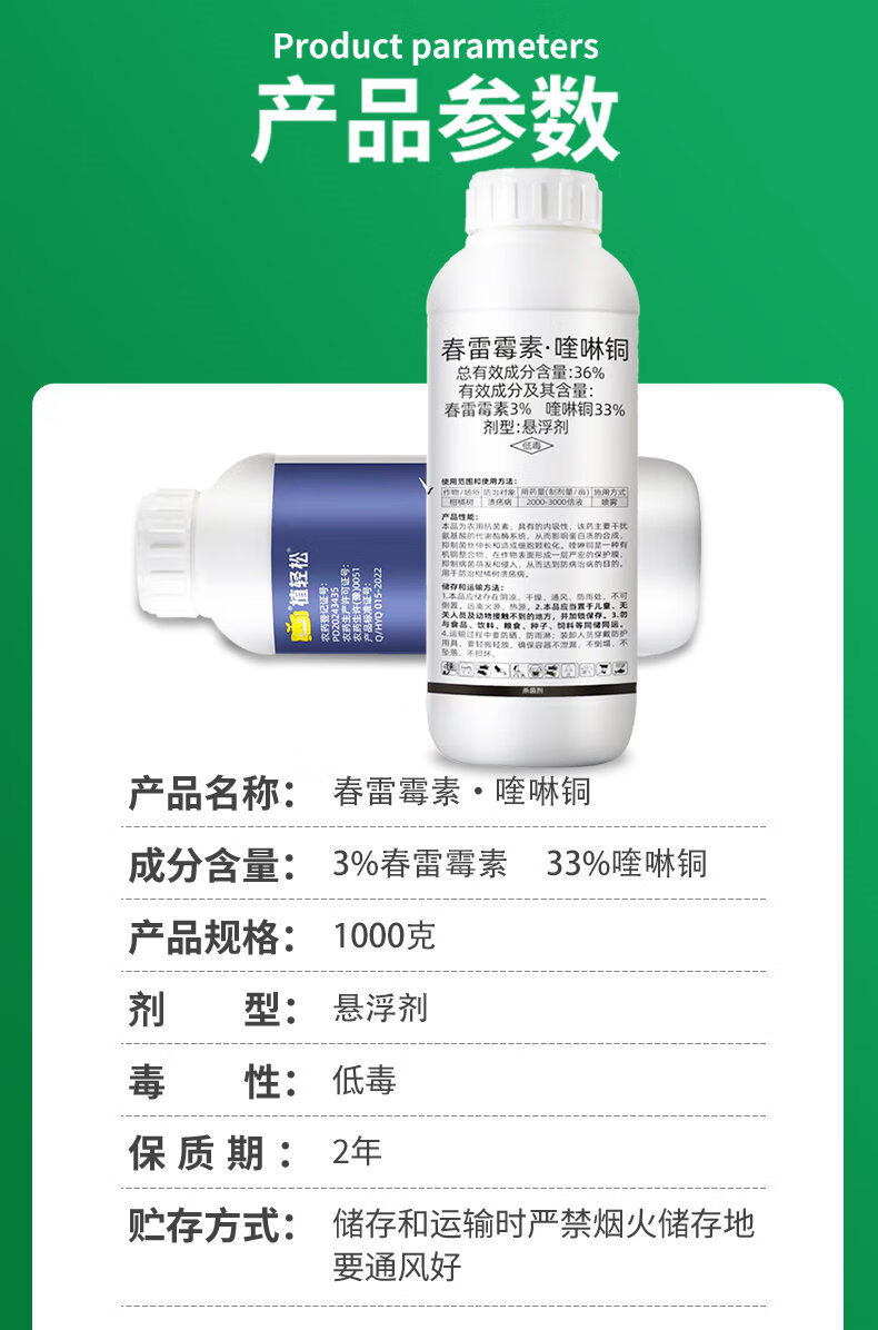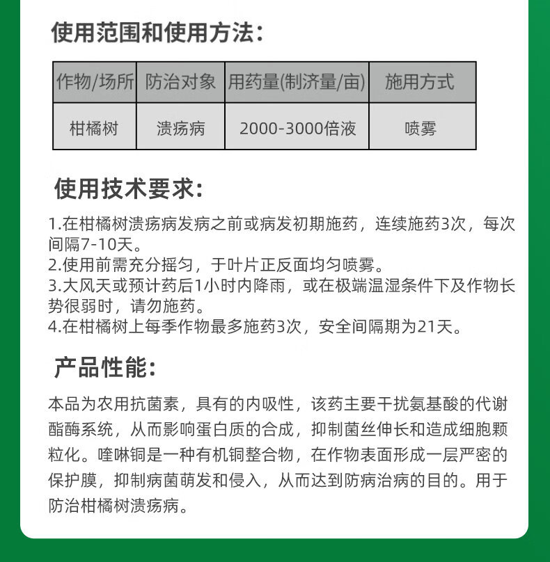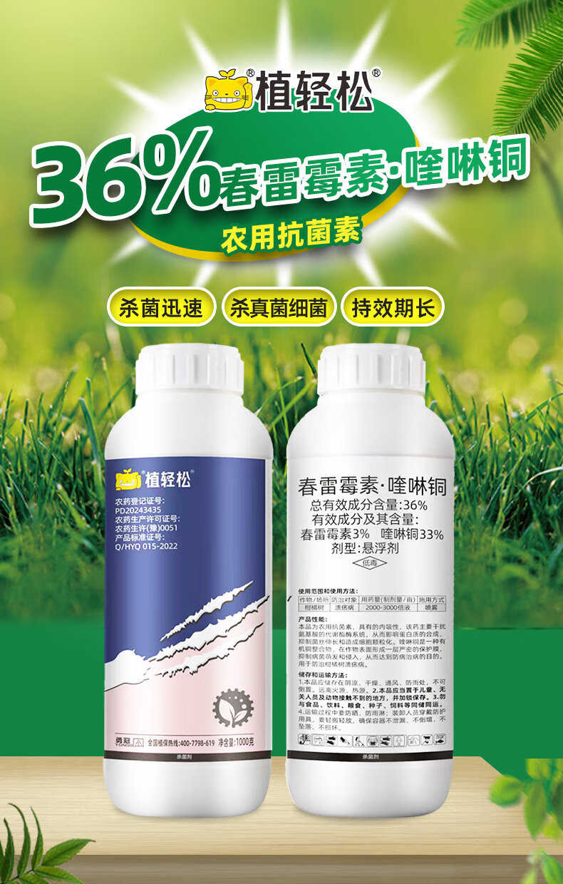 植轻松36%春雷喹啉铜柑橘果树蔬菜细菌性角斑溃疡病抗菌素类农药杀菌剂