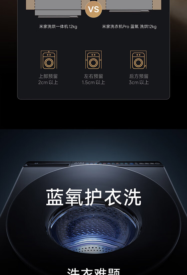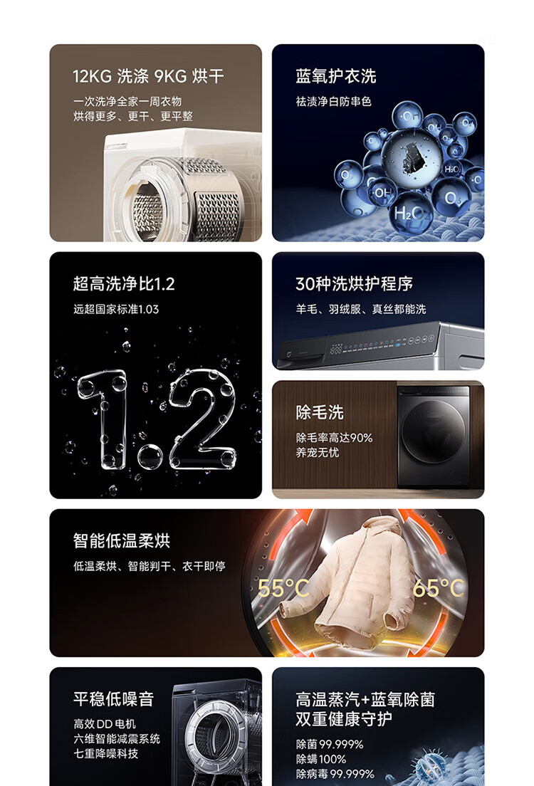 米家小米洗衣机滚筒洗衣机Pro 蓝氧护衣洗 洗烘12kg 精华速洗 智能低温柔烘洗衣机XHQG120MJ102 Pro蓝氧 洗烘12kg