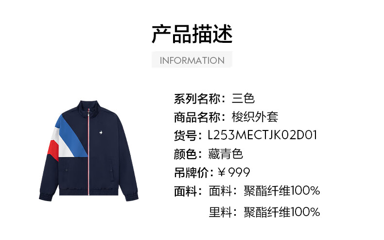 乐卡克Le coq sportif法国公鸡2025秋季新品男潮流立领运动休闲梭织夹克