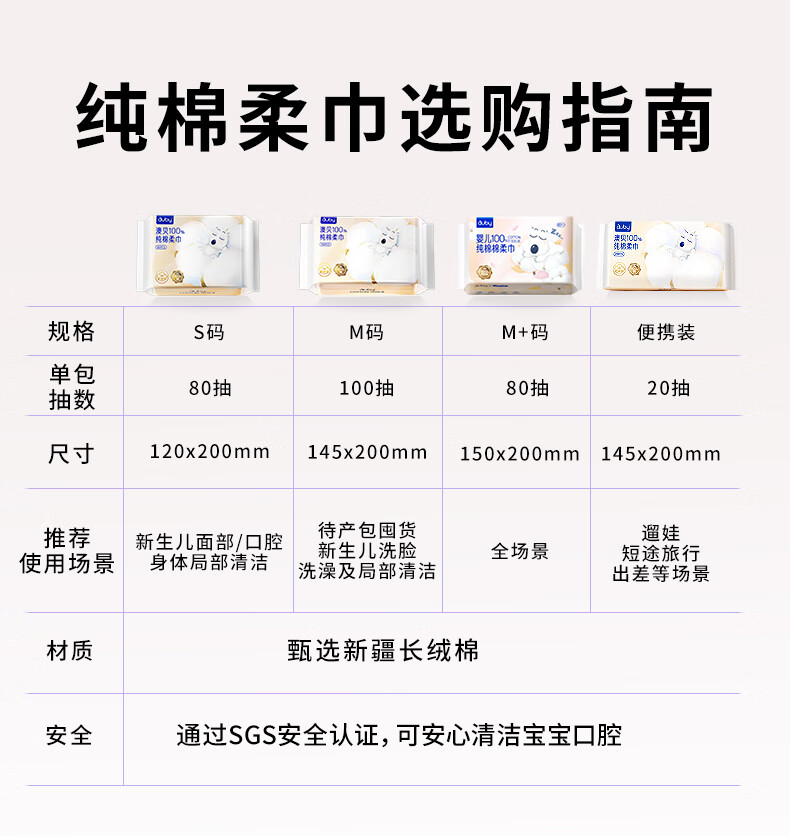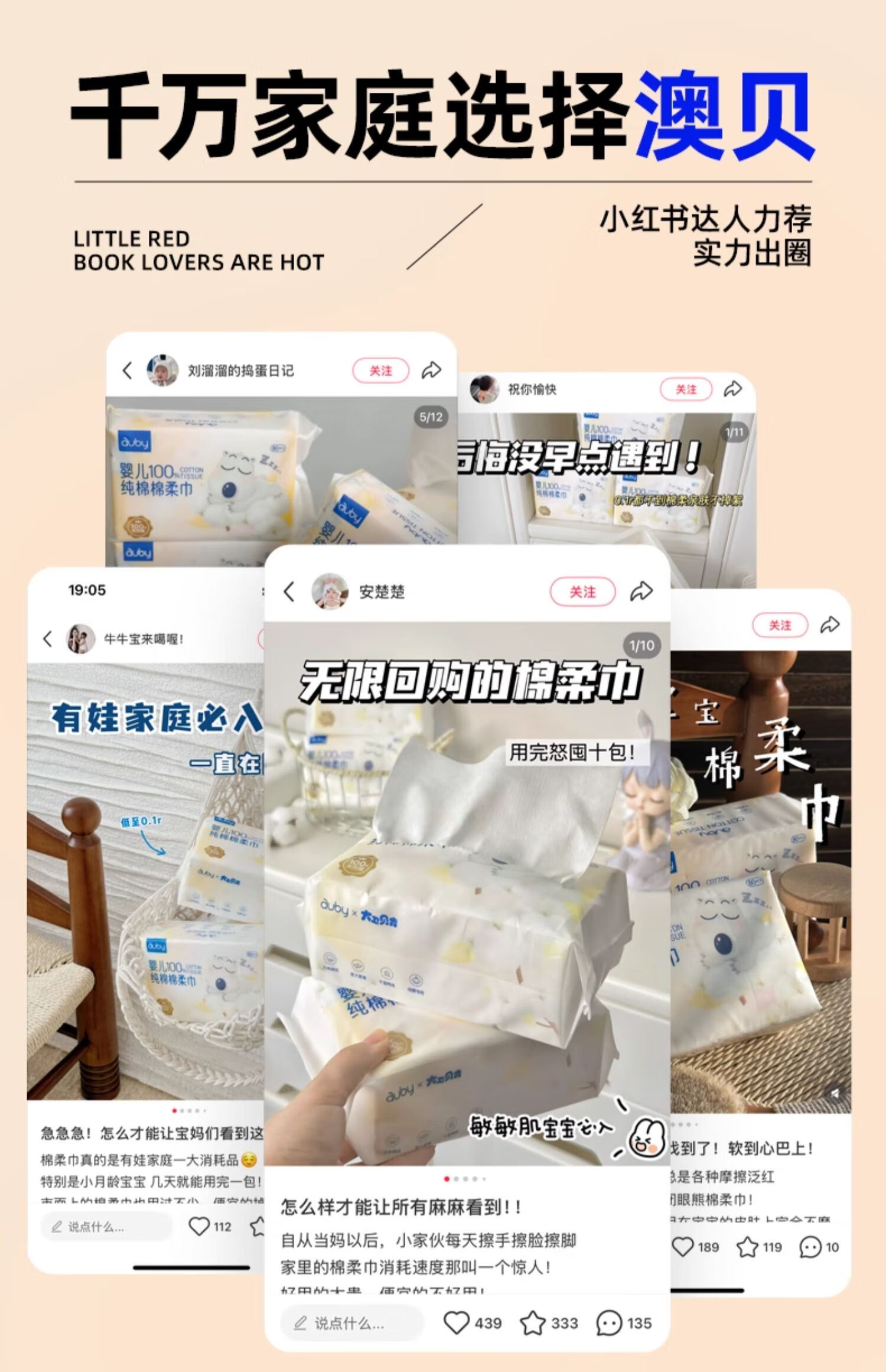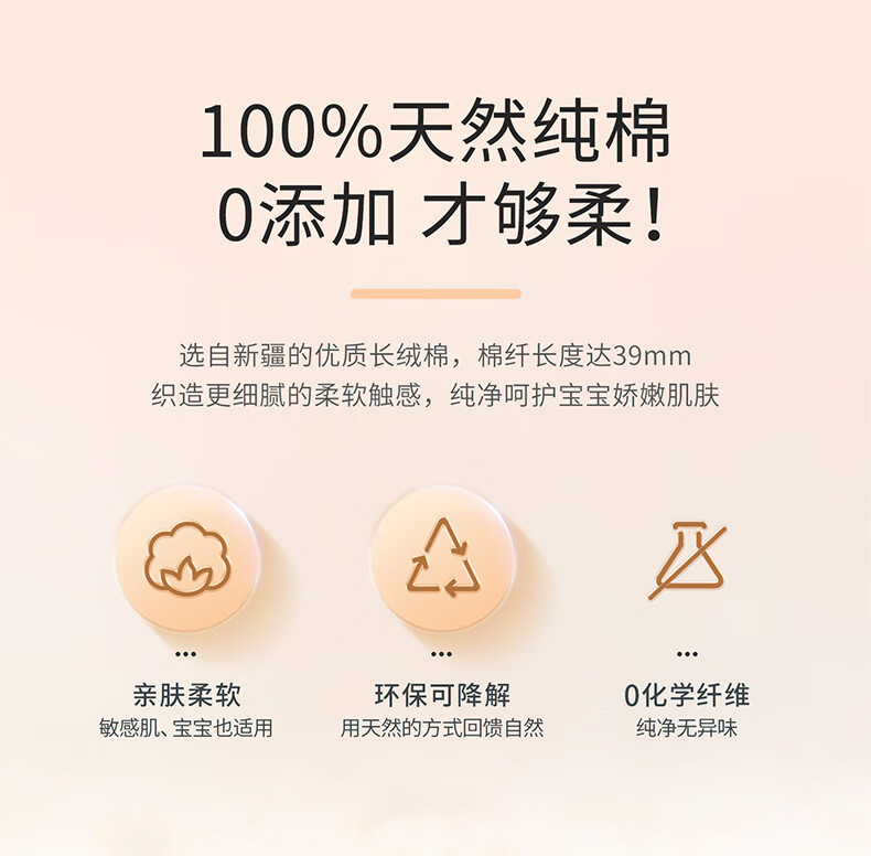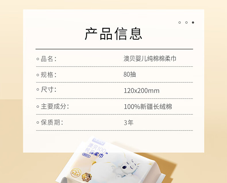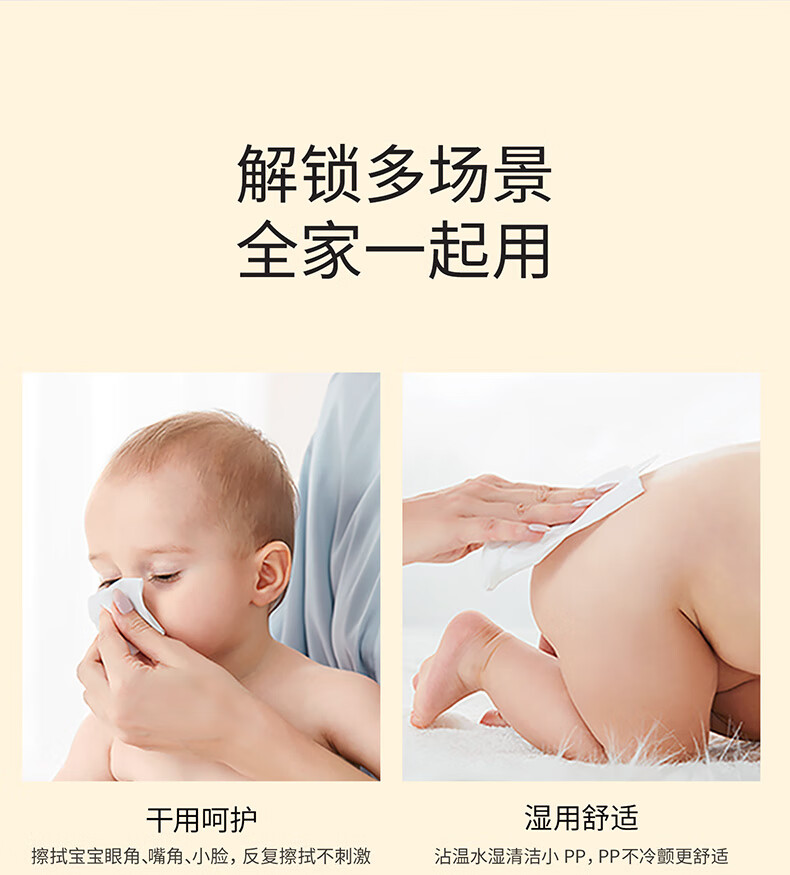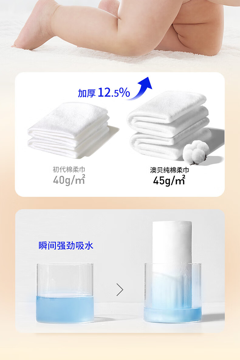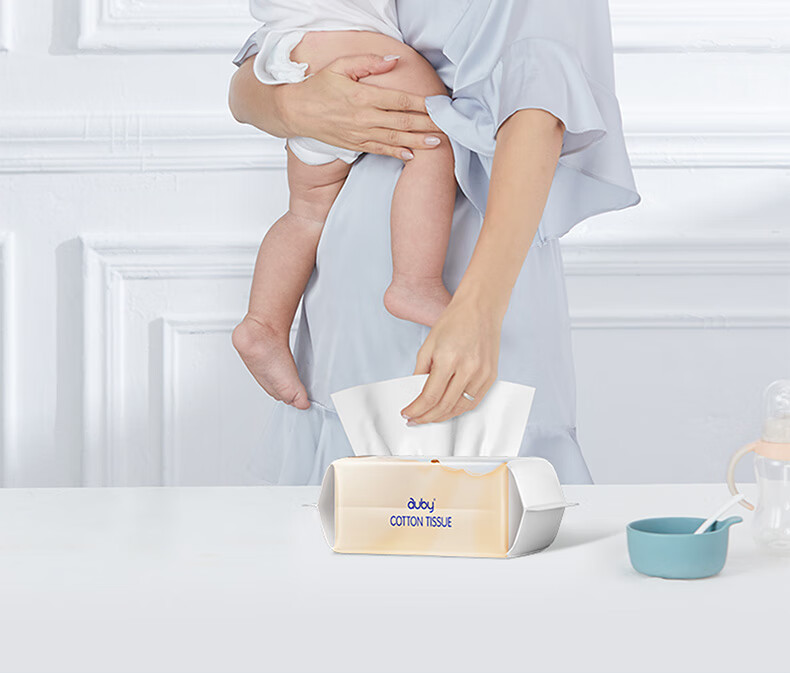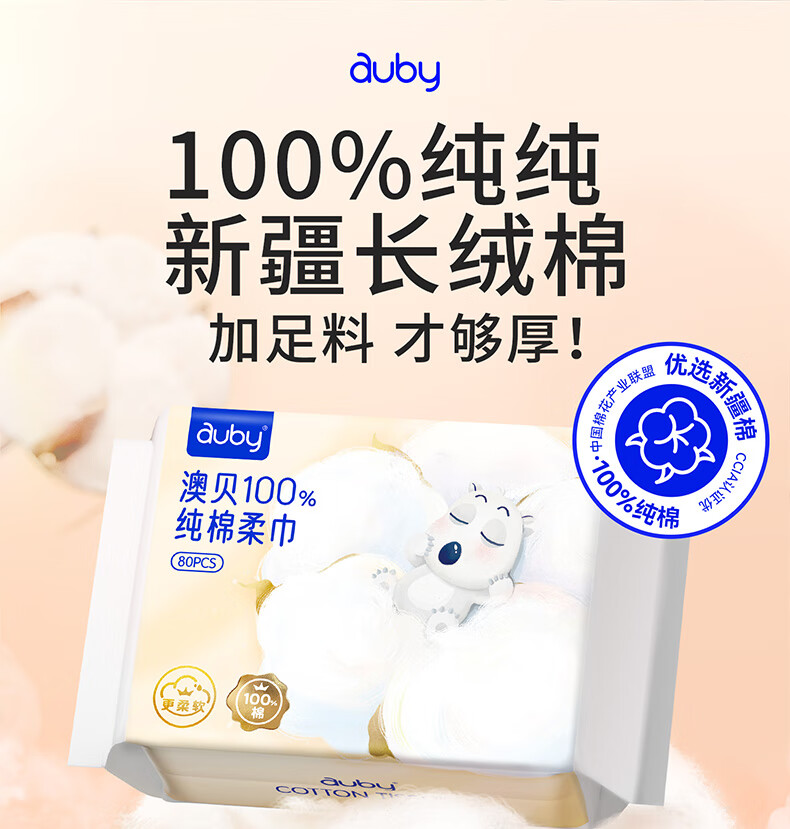 澳贝(auby)棉柔巾100%纯棉全棉婴儿专用洗脸擦脸巾一次性干湿两用80抽6包